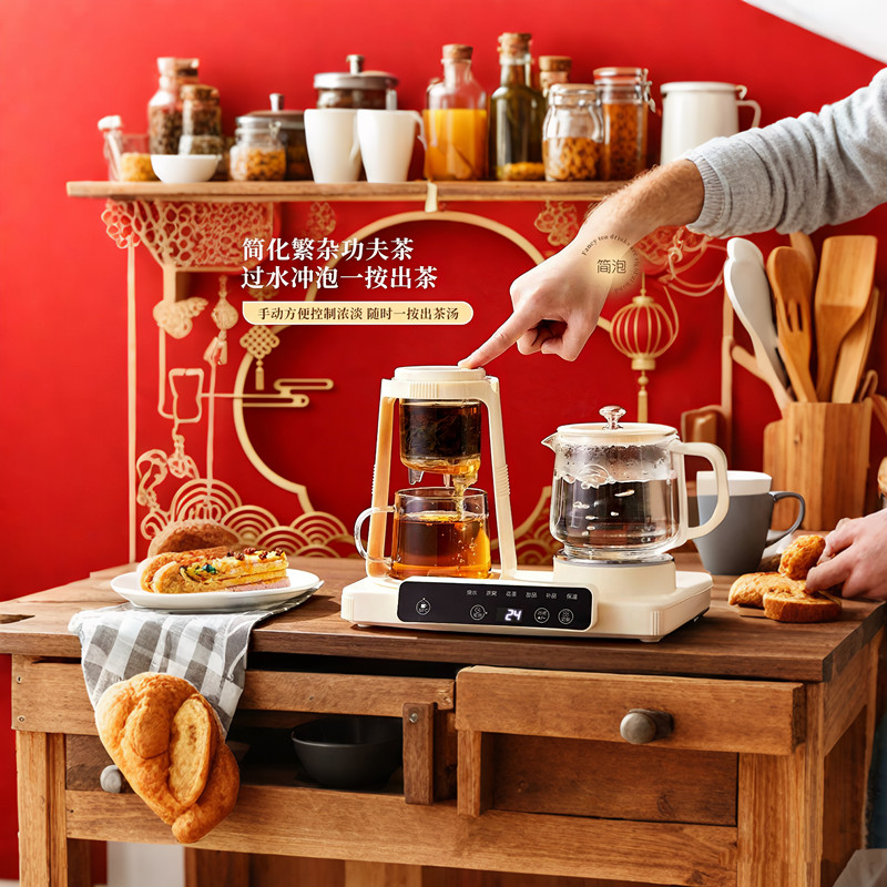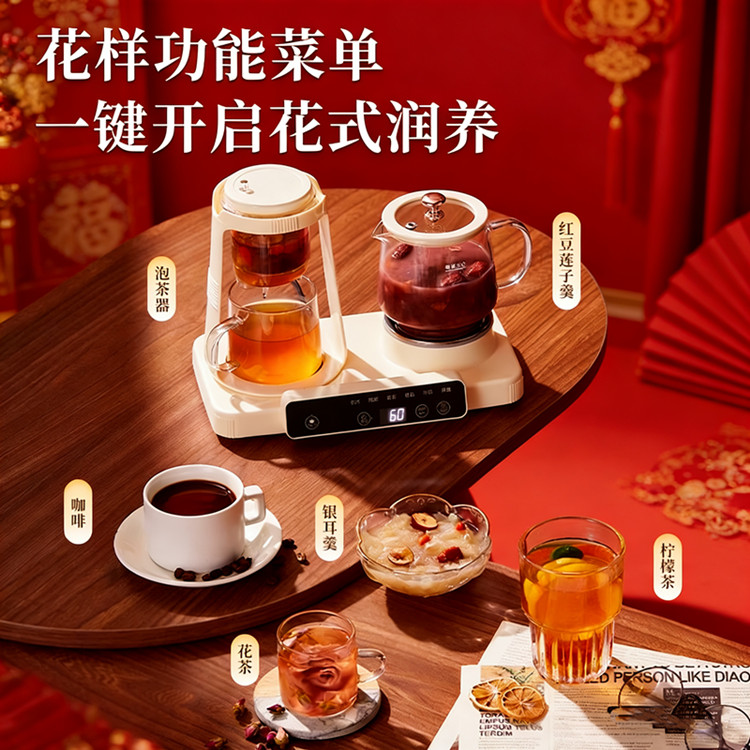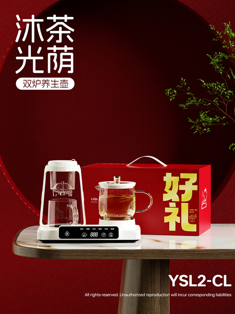 • 数显款-滤茶拾光盏养生壶套装茶漏款YSL2-CL大红包装