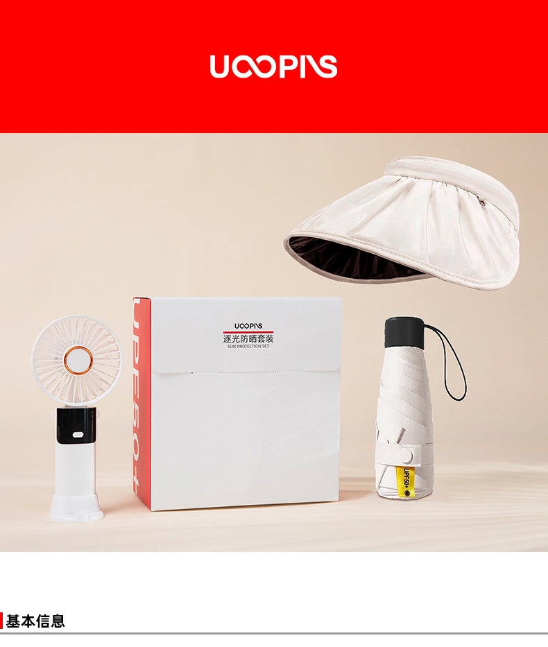 UOOPINS(优品序)防晒贝壳帽+小风扇+黑胶晴雨伞组合