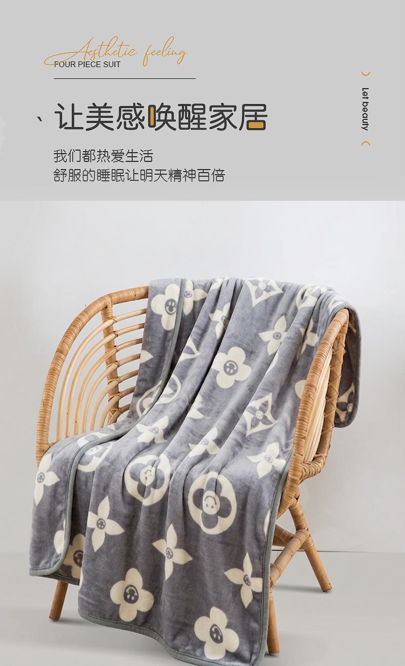 规格:100*140cm 面料:宝宝绒 克重:400g 产品包装:精美礼盒 产品特点: 1.宝宝绒面料手感佳,光滑柔软,易于清楚。 2.宝宝绒是一种独特的面料,非常适用在贴近皮肤。