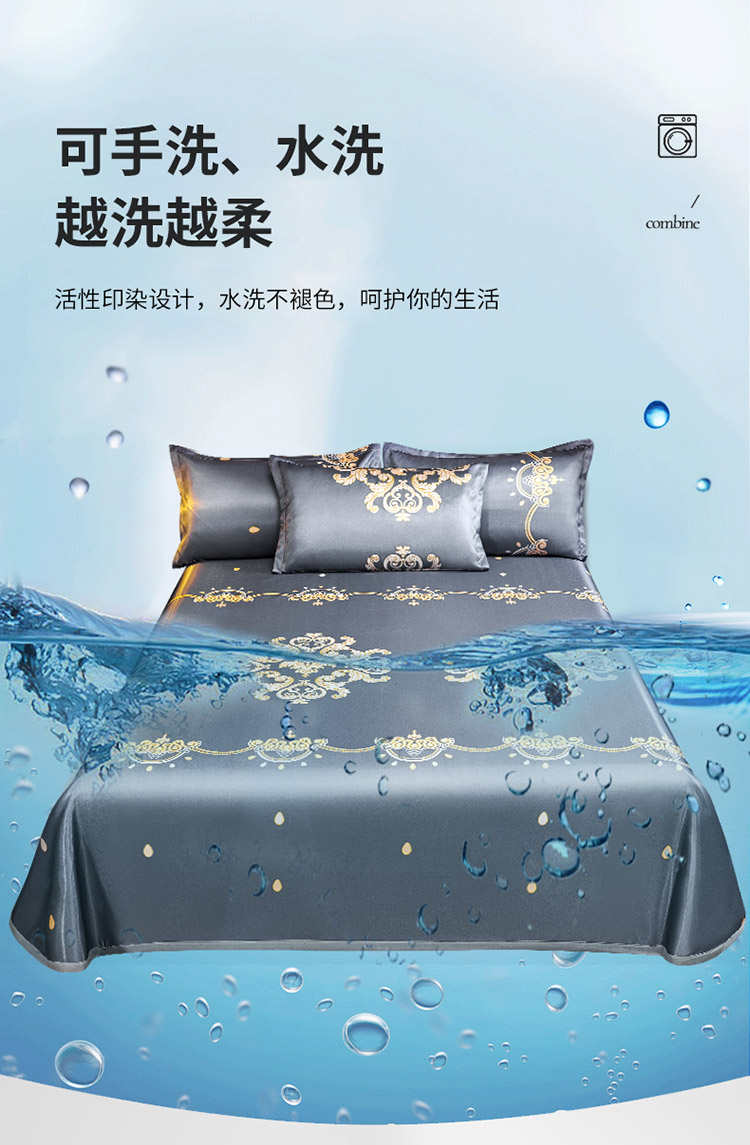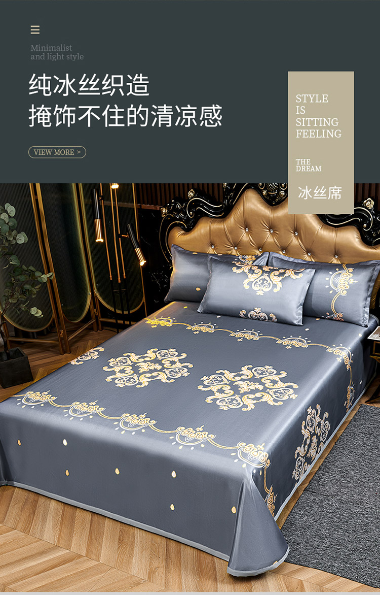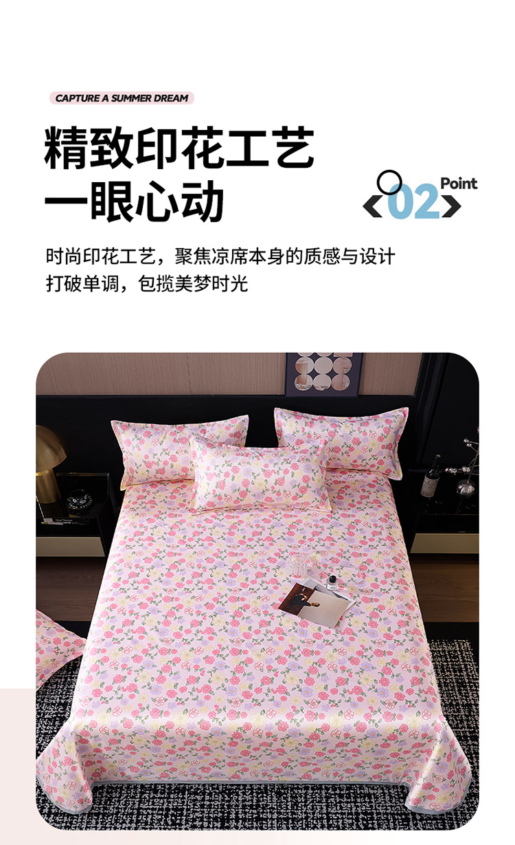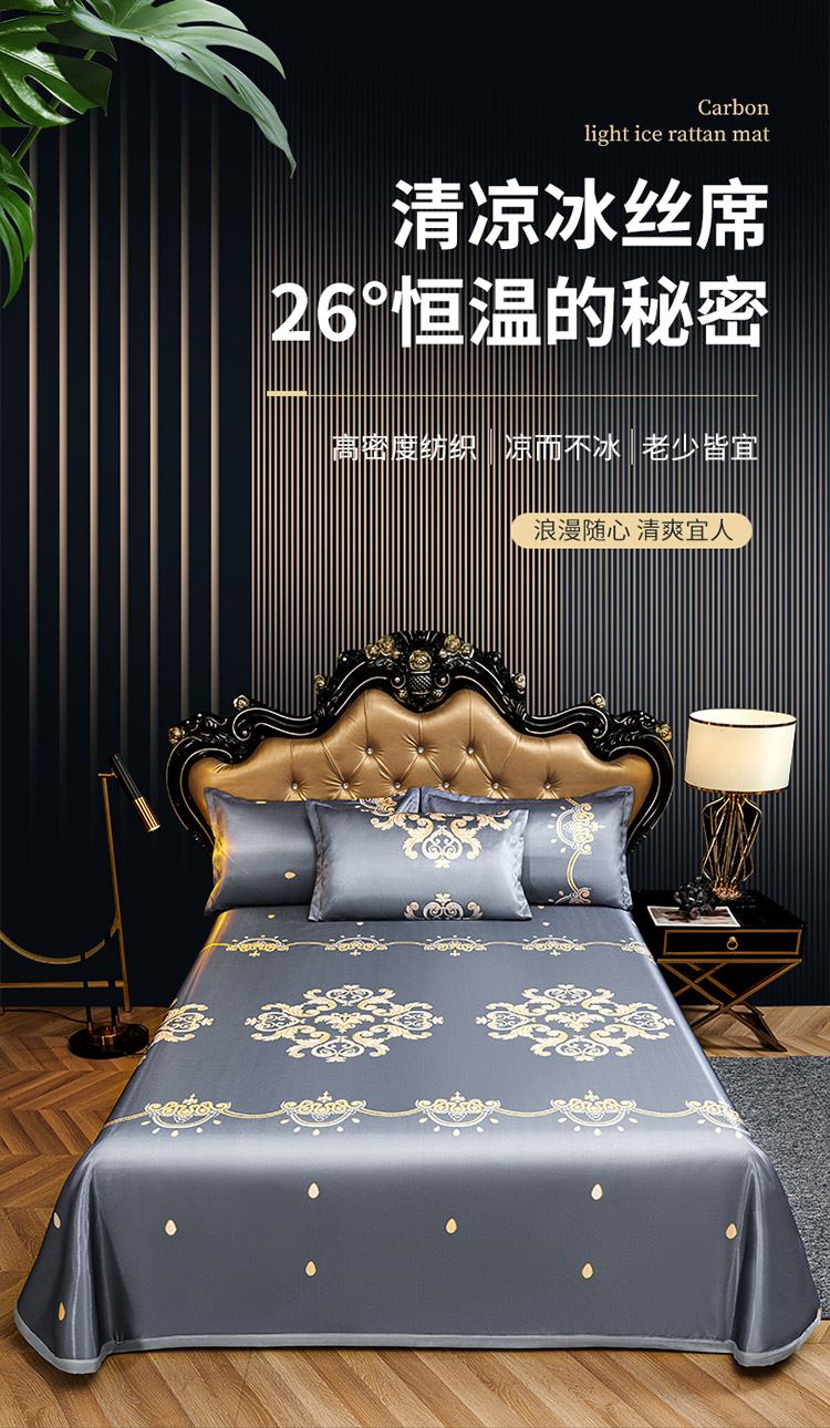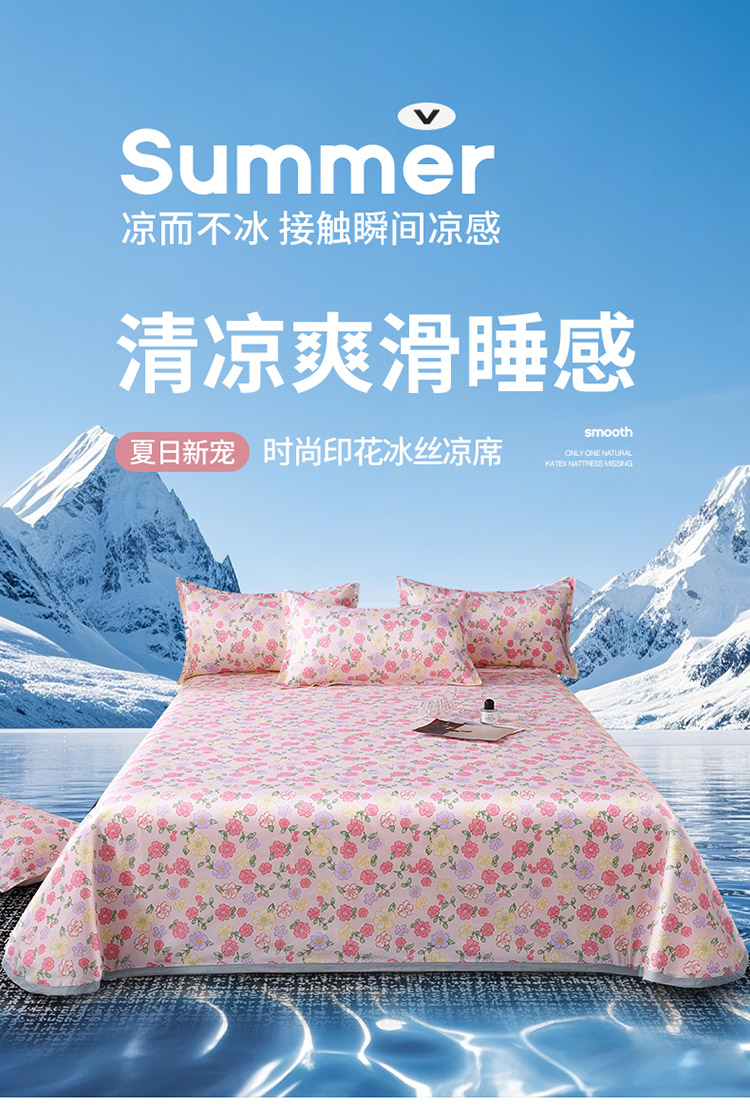 1:冰丝面料,可快速散热透气 有效排汗,干爽不黏腻,时刻保持清凉舒爽 2:不闷不燥不粘腻,宜人体感,清凉不沾身,适合全家使用:透气、排汗、干爽 3:精致印花工艺一眼心动、时尚印花工艺,聚焦凉席本身的质感与设计打破单调,包揽美梦时光 尺寸:230*250cm床单*1枕套:48*74cm*2 面料:凉感透气冰丝 包装:礼袋