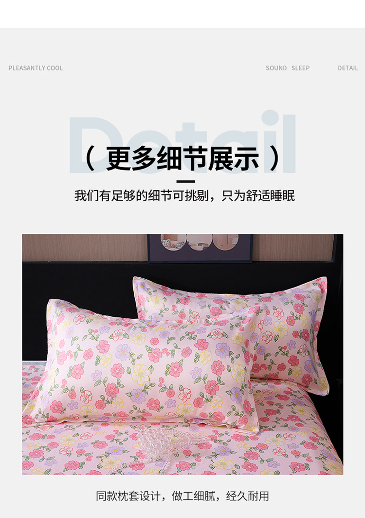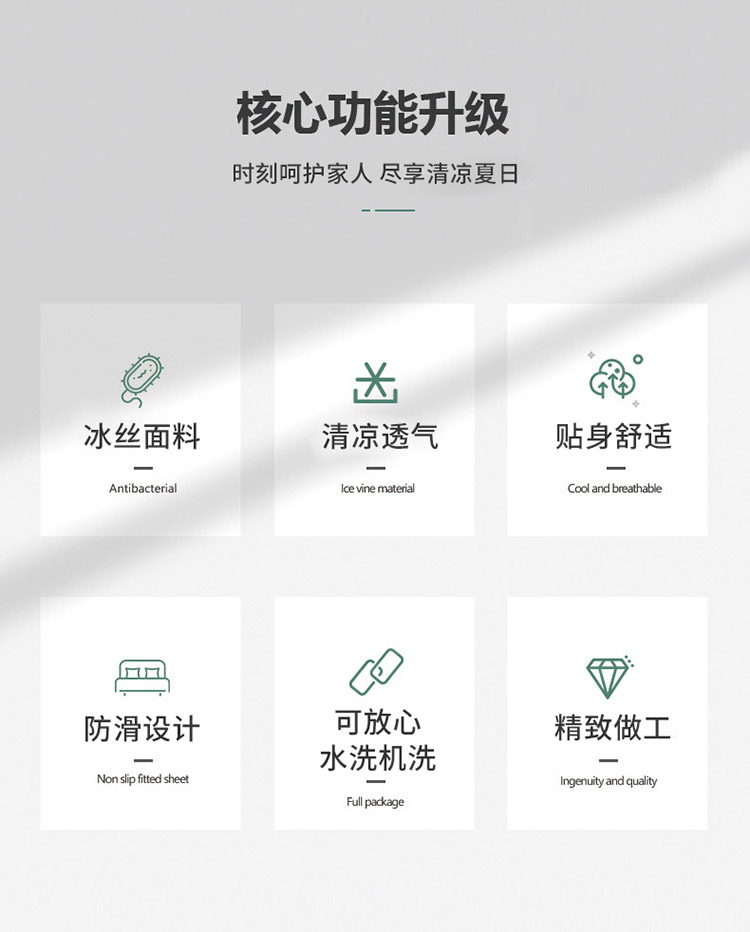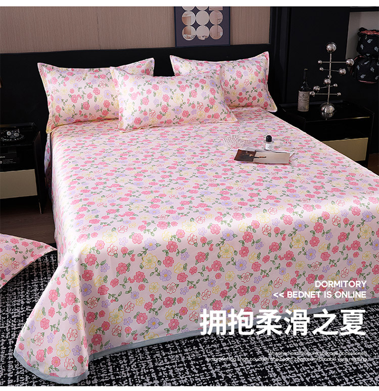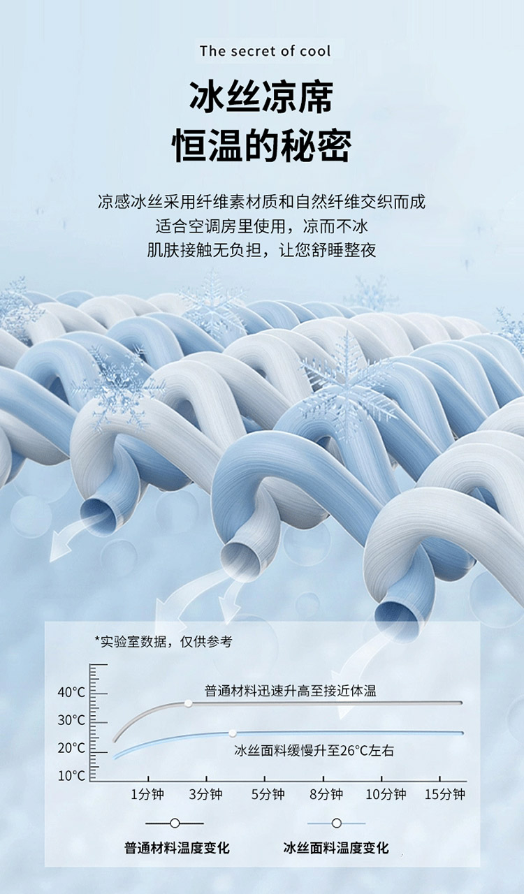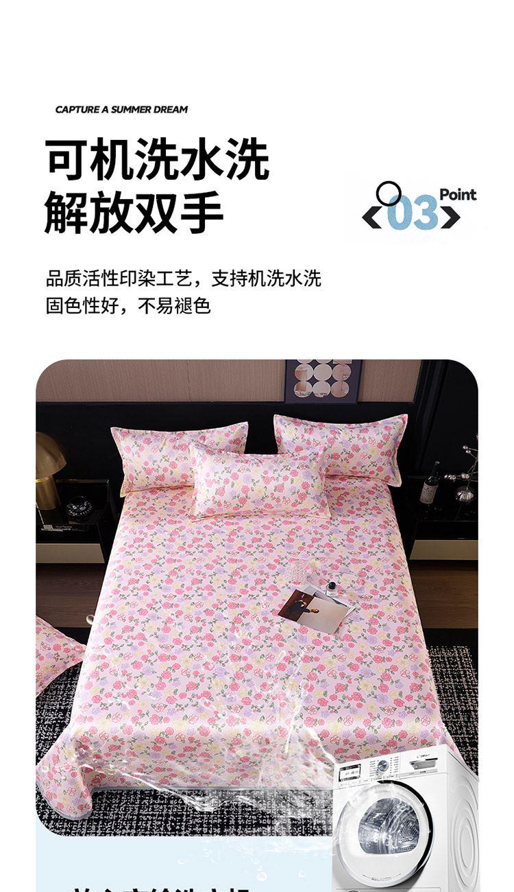 1:冰丝面料,可快速散热透气 有效排汗,干爽不黏腻,时刻保持清凉舒爽 2:不闷不燥不粘腻,宜人体感,清凉不沾身,适合全家使用:透气、排汗、干爽 3:精致印花工艺一眼心动、时尚印花工艺,聚焦凉席本身的质感与设计打破单调,包揽美梦时光 尺寸:230*250cm床单*1枕套:48*74cm*2 面料:凉感透气冰丝 包装:礼袋