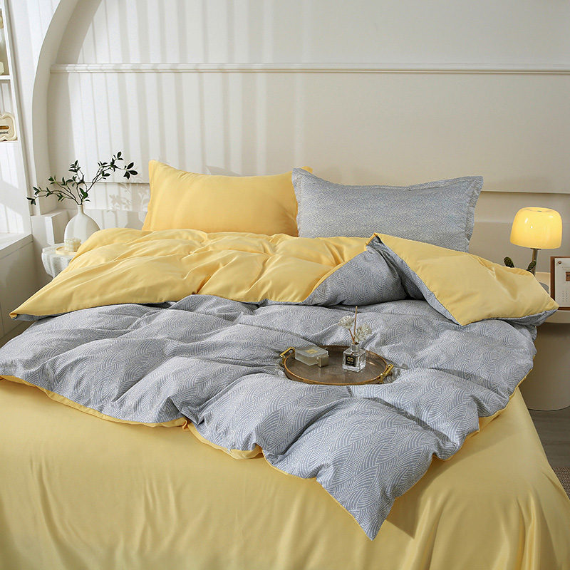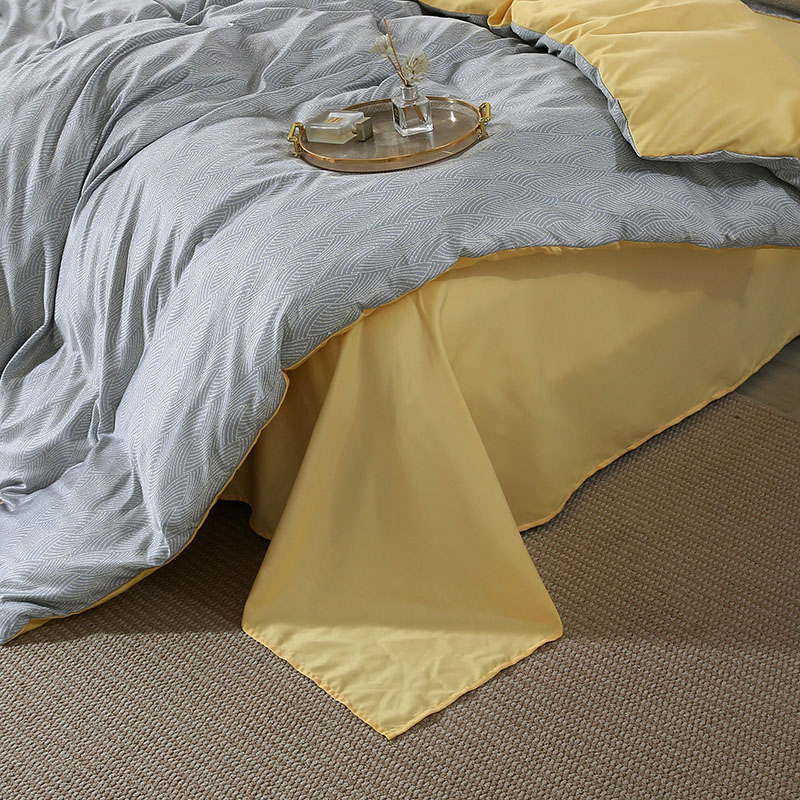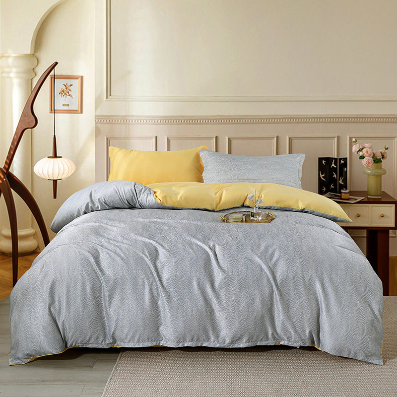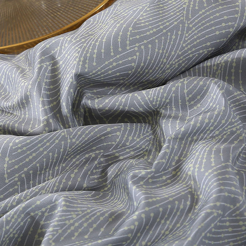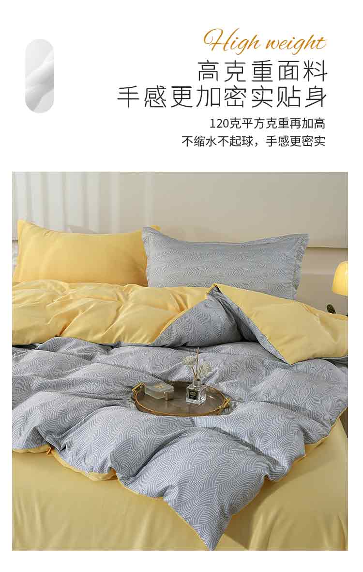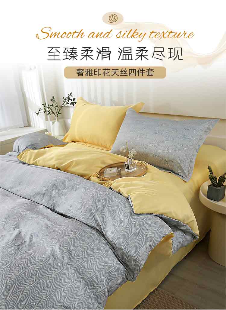 型 号:HS-J-XW23101 面 料:仿天丝 规 格:被套200*230cm*1 床单230*245cm*1 枕套48*74cm*2 产品说明: 1.宏石家纺主打爆款夏凉件套,仿天丝印花系列,全工艺面料升级制作,克重再加高,沁爽凉感,不缩水不起球,手感更密实,活性分散印染工艺不易褪色、使布面图案更自然,层次感更强。 2.宽边信封枕套与床单颜色相呼应,被套拉链隐藏式设计,开合更方便,是一款自用与礼赠皆适宜的实用产品。