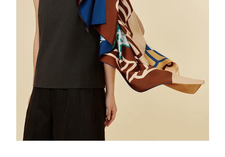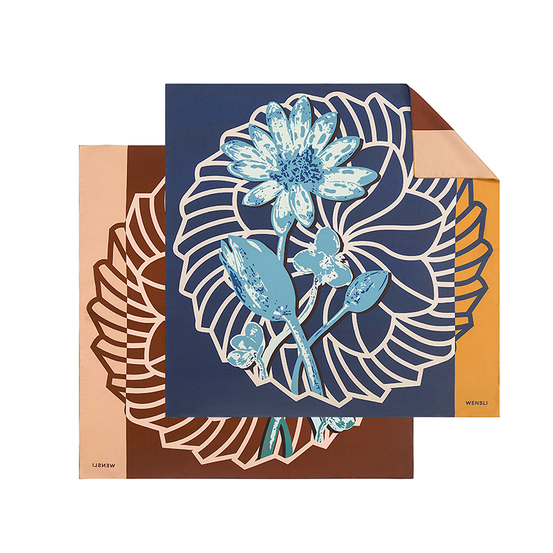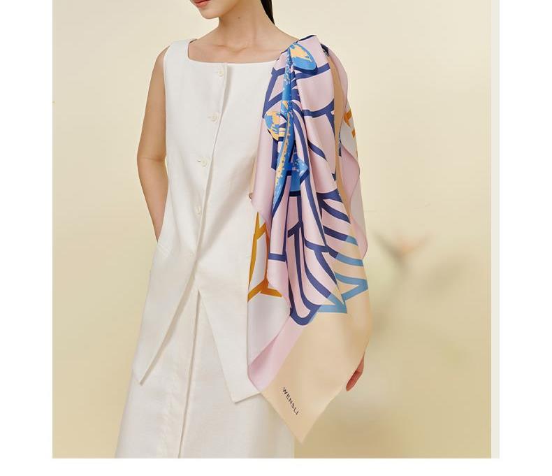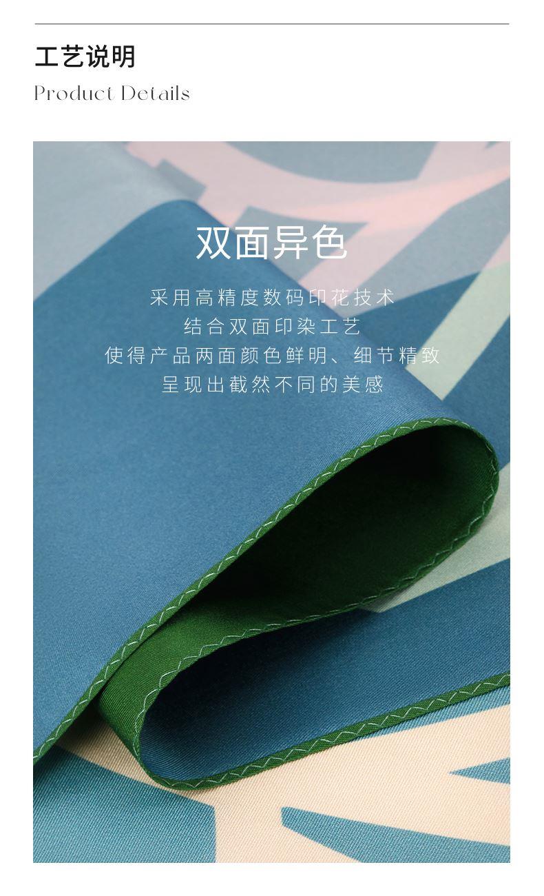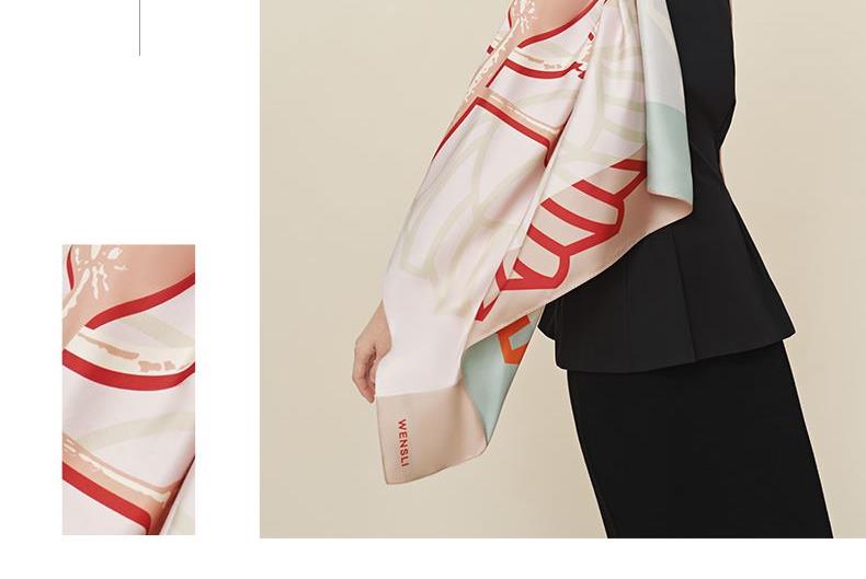 尺寸:88CM×88CM 材质:100桑蚕丝 面料:斜纹绸 卷边:机卷 颜色:红金/粉灰/蓝绿/粉绿/蓝橙 工艺:双面异色