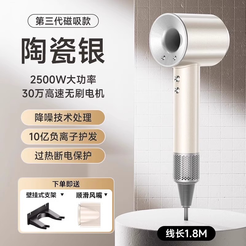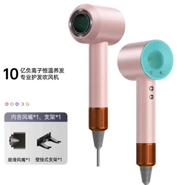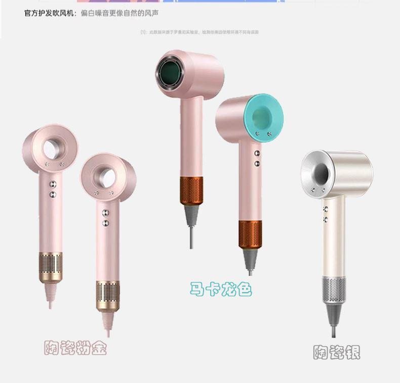 货号:YT-CF001 规格:吹风机X1+支架X1+风嘴X1 材质: 喷涂(UV漆,橡胶漆) 颜色: 陶瓷粉金、陶瓷银、马卡龙 额定电压:220V 产品描述: 1.采用德国技术 2.1500W大功率 3.30万高速无刷电机 4.降噪技术处理,10亿负离子护发 5.过热断电保护