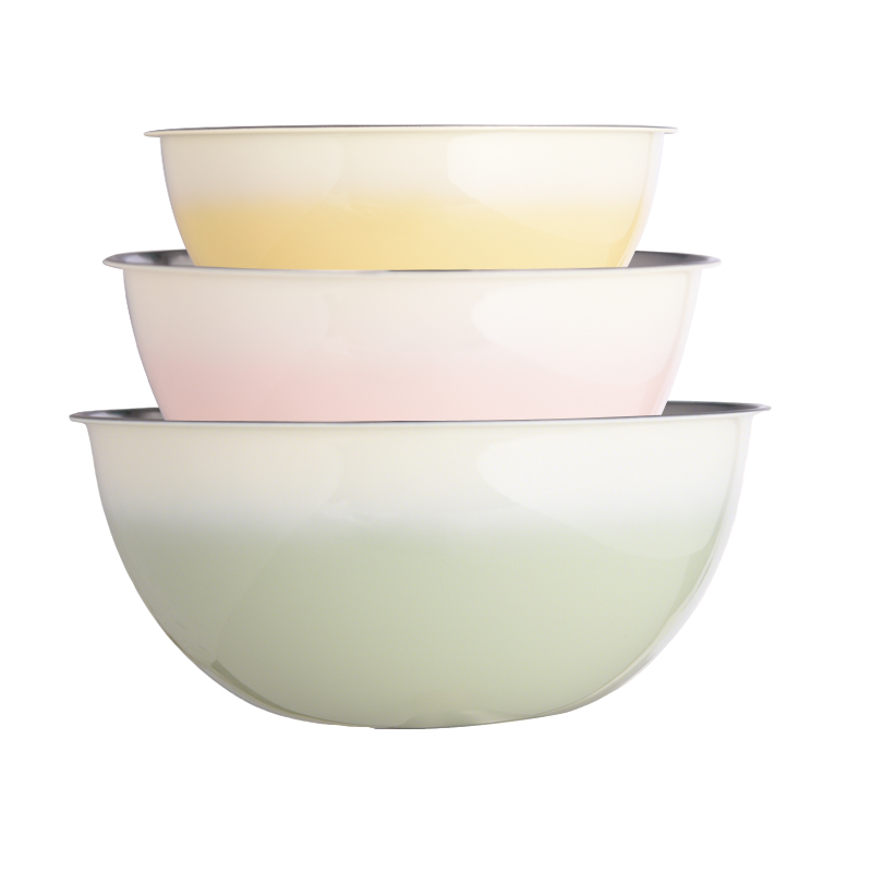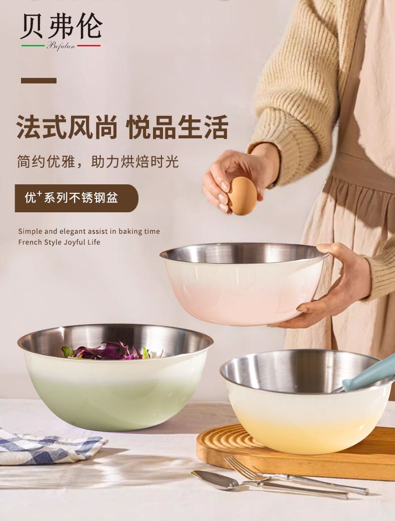 容量:1.5L+2L+3L 材质:奥氏体不锈钢(201) 包装尺寸:25.1*11*25.1cm 包装重量:0.75KG 拉丝抛光,易清洁,污渍不残留 加深设计,打蛋和面不飞溅 刻度标识,容量易掌握,控量更科学 一盆在手,厨房无忧