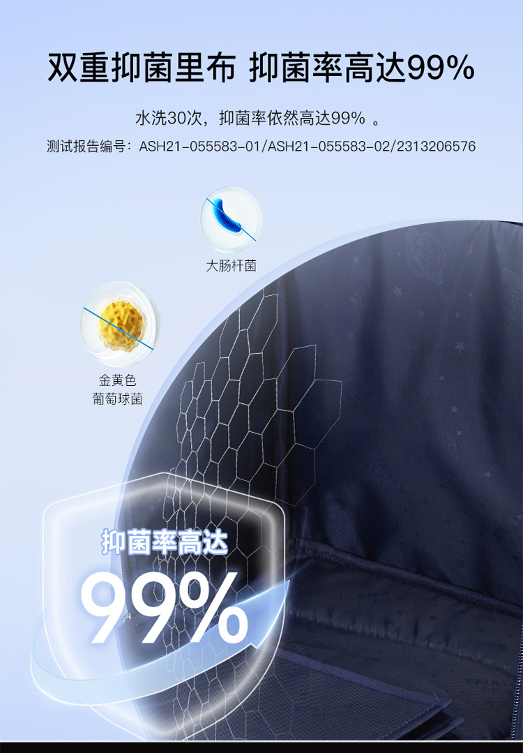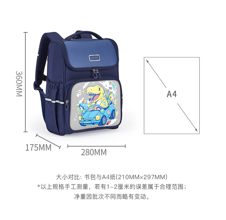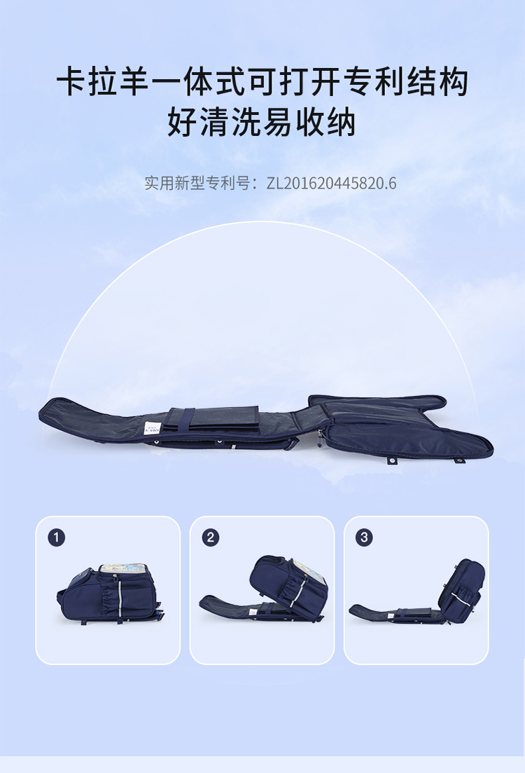 货号:TX2201 主体面料:织物+合成革;里料:织物 颜色: 薰衣草紫 定位: 1-4年级/110-160cm 净重:0.74kg/18L