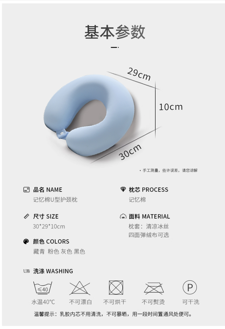 花花公子凉感丝U型枕 规格 :30*29*10cm 面料:凉感丝 重量:800克 填充物:记忆棉 包装:收纳袋/收纳盒 随意搭配
