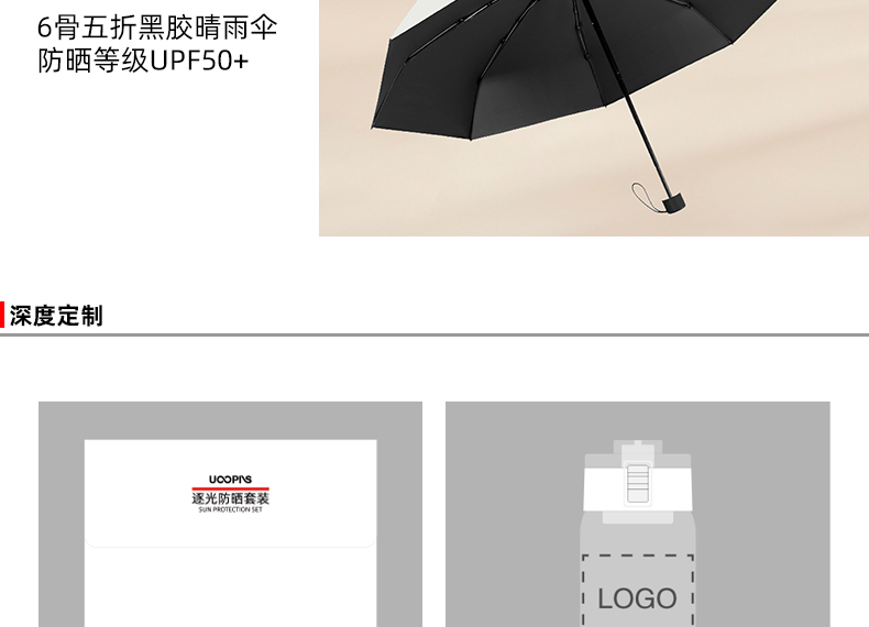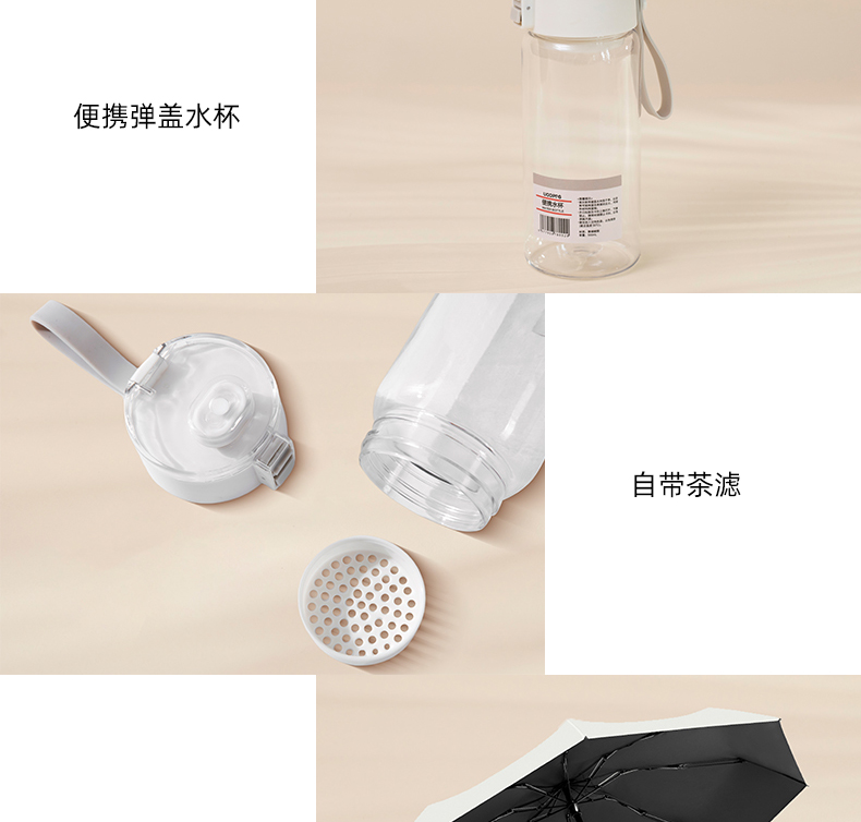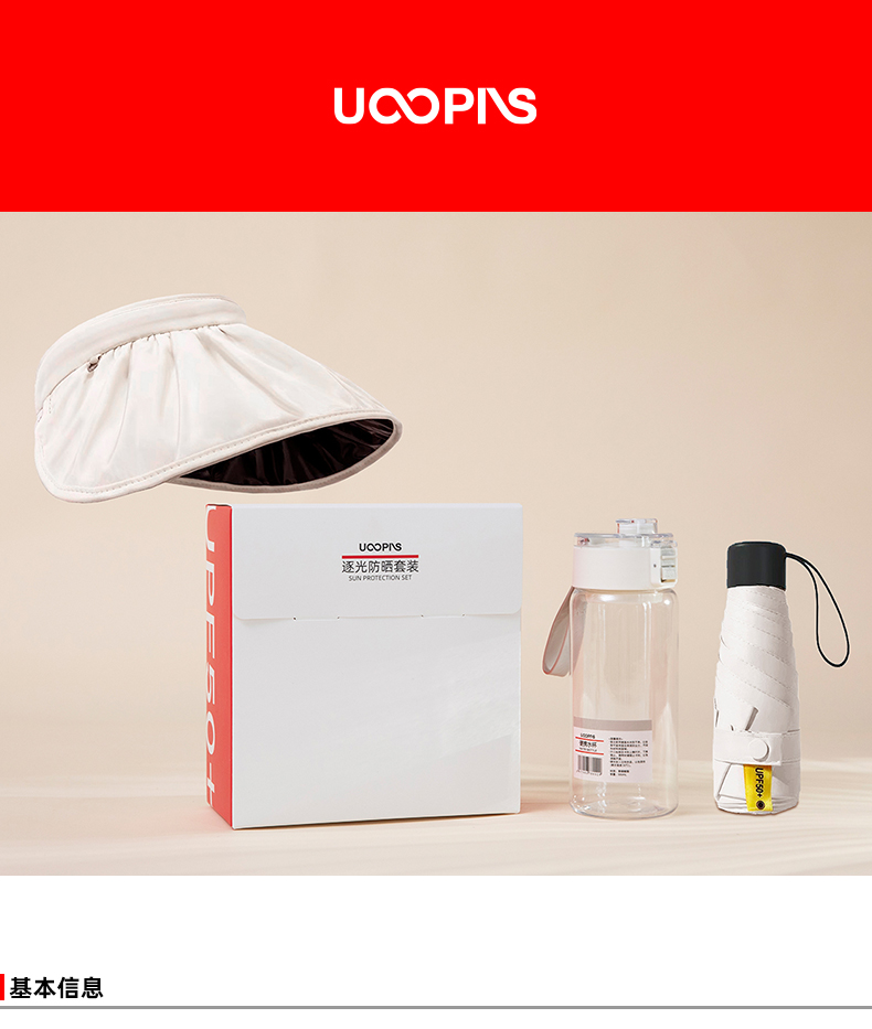 UOOPINS(优品序)防晒贝壳帽+水杯+黑胶晴雨伞组合