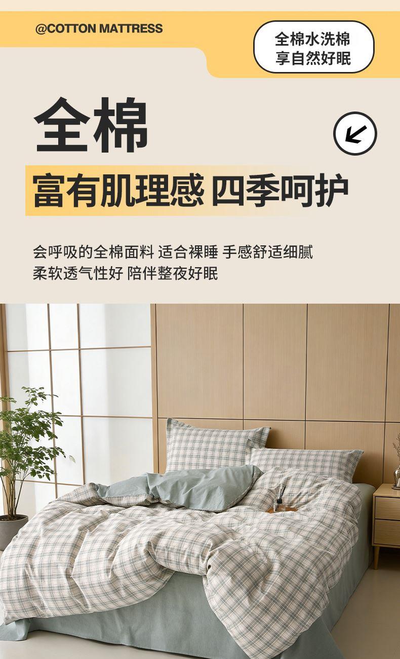 被套:200*230cm 床单:230*235cm 枕套:48*74cm*2 面料:全棉 执行标准:GB/T22796-2021 安全类别:GB18401-2010 B类 1.臻选纯棉面料,印染工艺采用活性印染工艺,不起球,不褪色,极具柔软性,在纺纱过程中,增加了精致梳理的程序,疏去软短的纤维,剔除棉花种的杂质,以制造出平滑的纱线,让棉花更有韧性,使人干到柔软。 2.纯棉纤维具有良好的保湿型,透气性能好,使用感觉温暖。