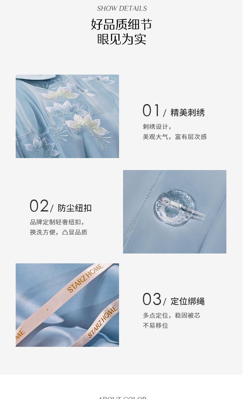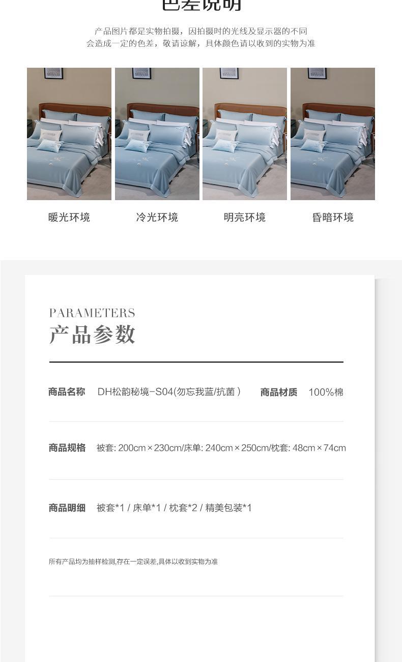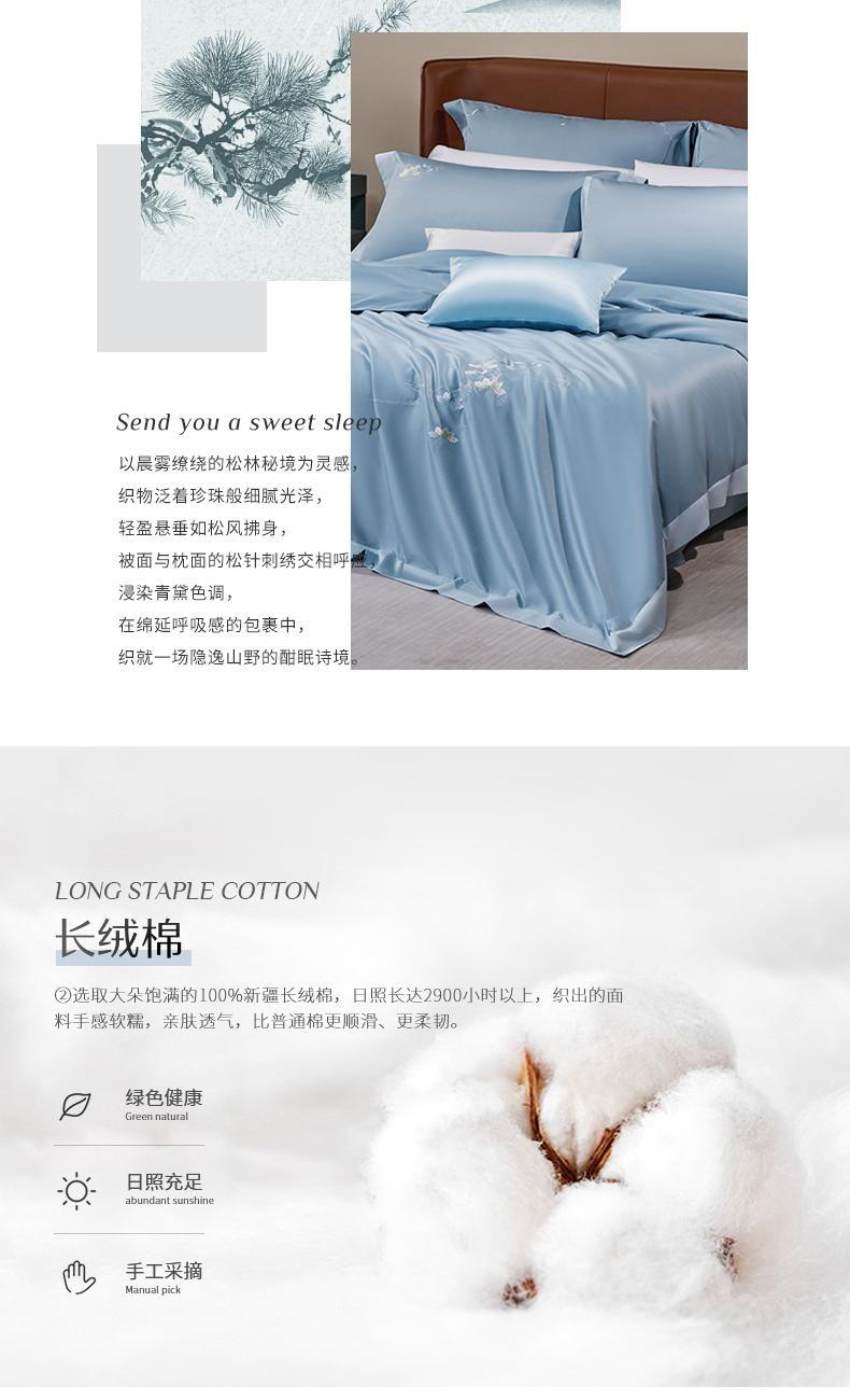 水星家纺100s刺绣全棉四件套松韵秘境200*230cm