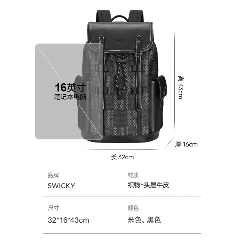 SWICKY轻奢潮流双肩背包88174黑色