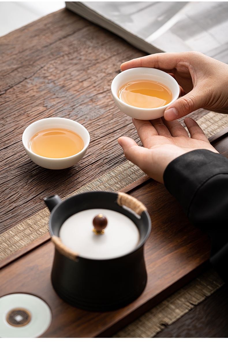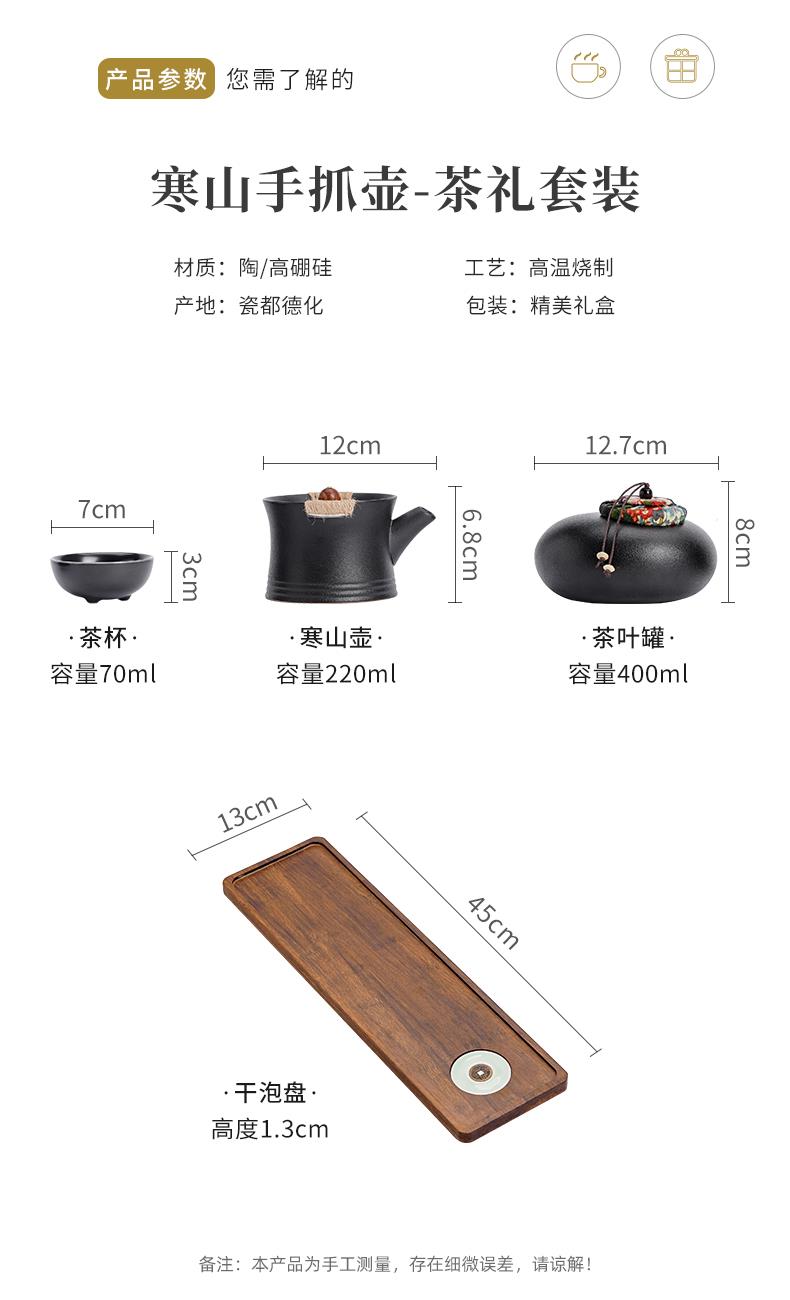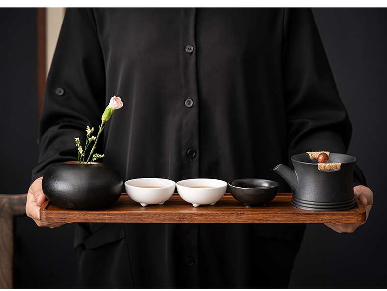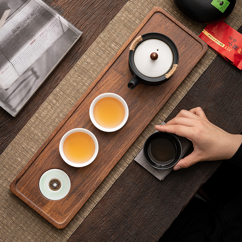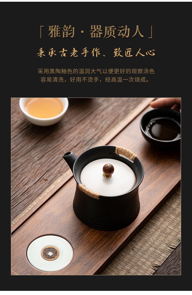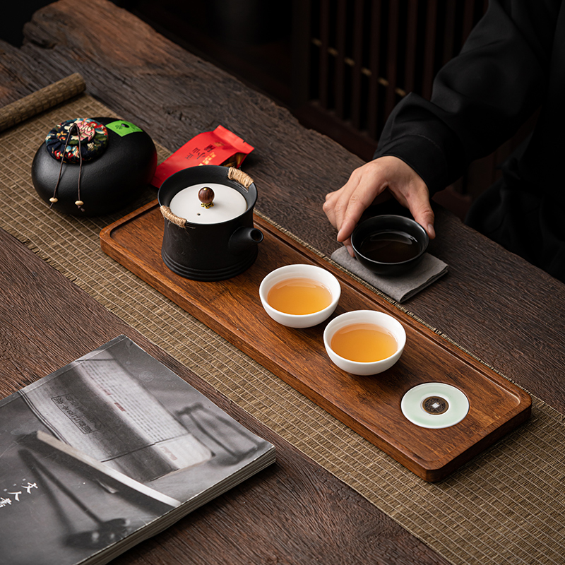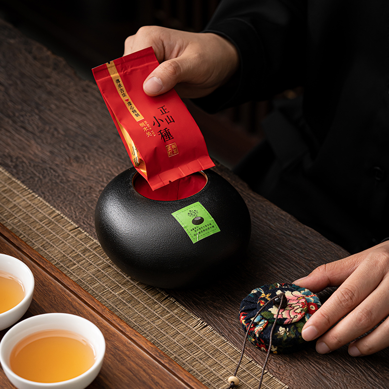 《金镶玉茶叶罐款》 茶盘采用重竹材质,铜钱镶嵌工艺,具有镇宅,招财美观,同时为包装盖,经济又环保。同时茶叶罐也可做为花插使用。 配置:茶壶*1+茶杯*3+茶盘*1+正山小种*5泡+茶叶罐*1+礼盒+手提袋 材质/工艺:茶杯:定窑陶瓷,茶壶/茶叶罐黑陶 茶盘:重竹 茶盘尺寸:45*14*1.5cm