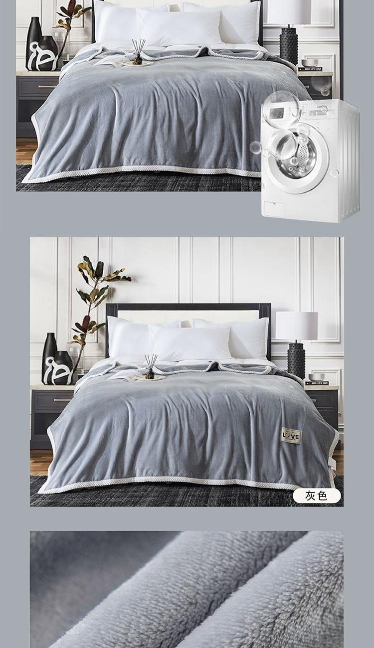 150×200cm 毯重:840g 【面 料】牛奶绒(聚酯纤维) 1.超柔牛奶绒面料,细腻丝滑,如云朵般轻柔,带给您暖心亲肤呵护; 2.纯色毯配白色贝贝绒包边,简约中透出精致,搭配家居更出彩; 3.实用性强,沙发毯、床单毯、盖毯,毯护一身。