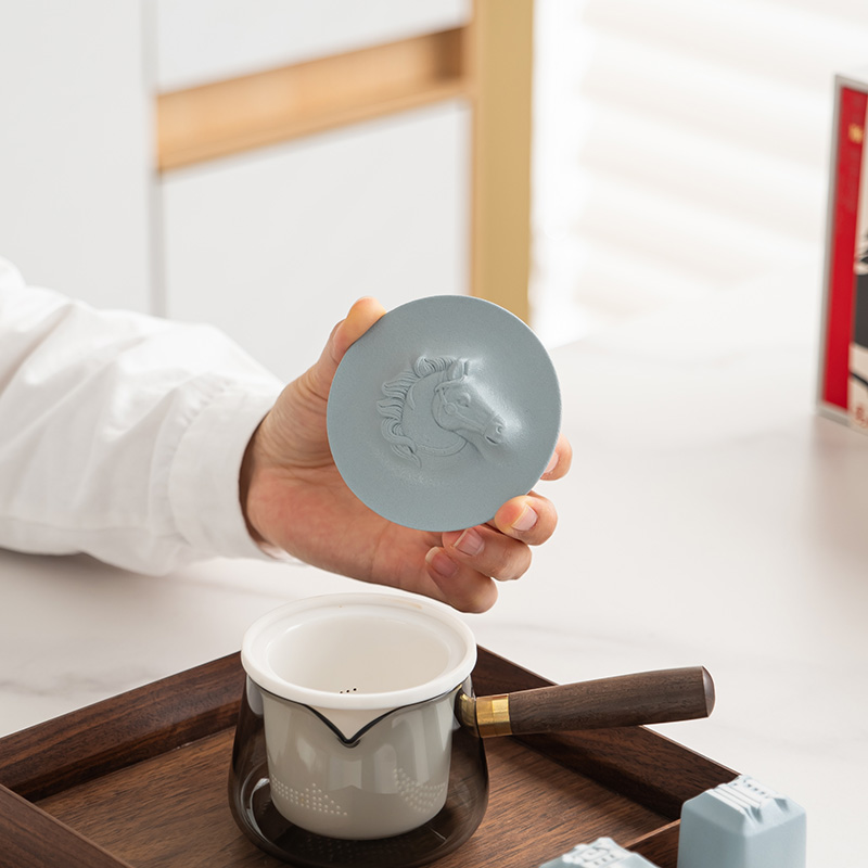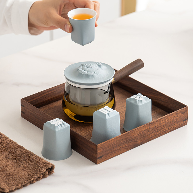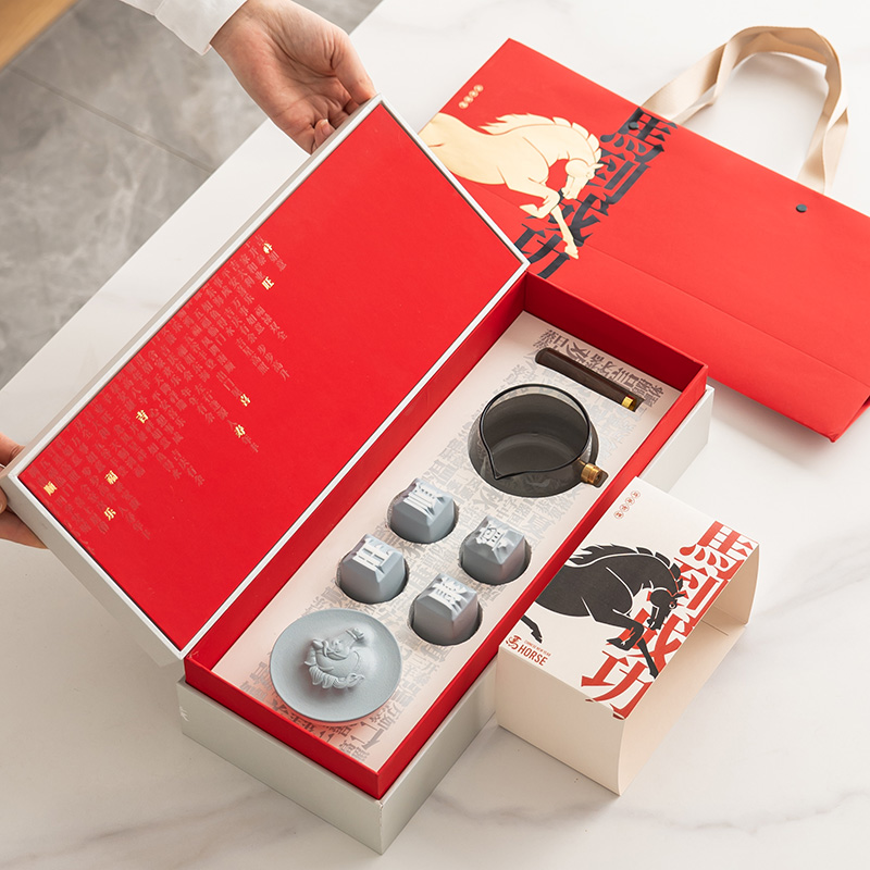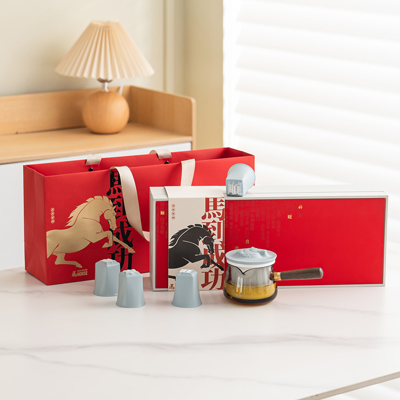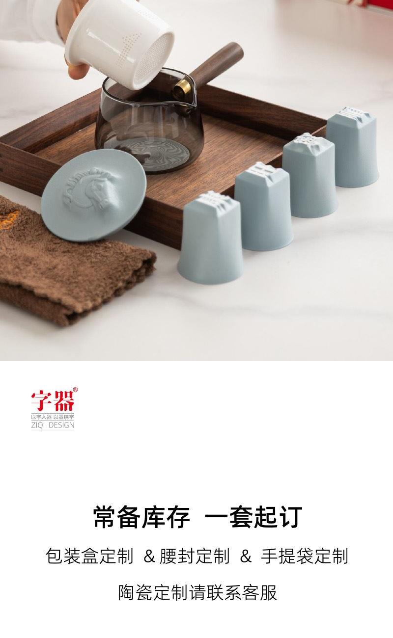 1:汉字杯历经1300度以上高温烧制,不含铅和镉等重金属。 2:杯底为方,杯口为圆,结合中国传统祝福文字,一字一模,手工塑形。 3:黑玻璃+实木手柄,实用美观,简洁易用。 4:中式包装,LOGO定制精美。 配置:活字杯*4(旺顺康宁各1) 黑玻侧把壶*1(立体马头纹) 材质:白玉瓷胎 颜色:玉石灰 尺寸:包装400*160*90mm 容量:壶150ml 杯40ml