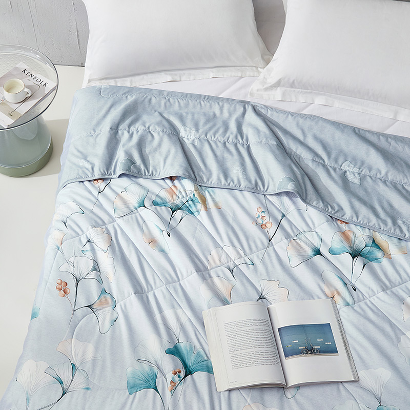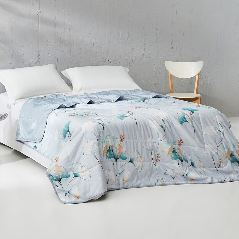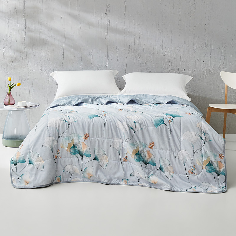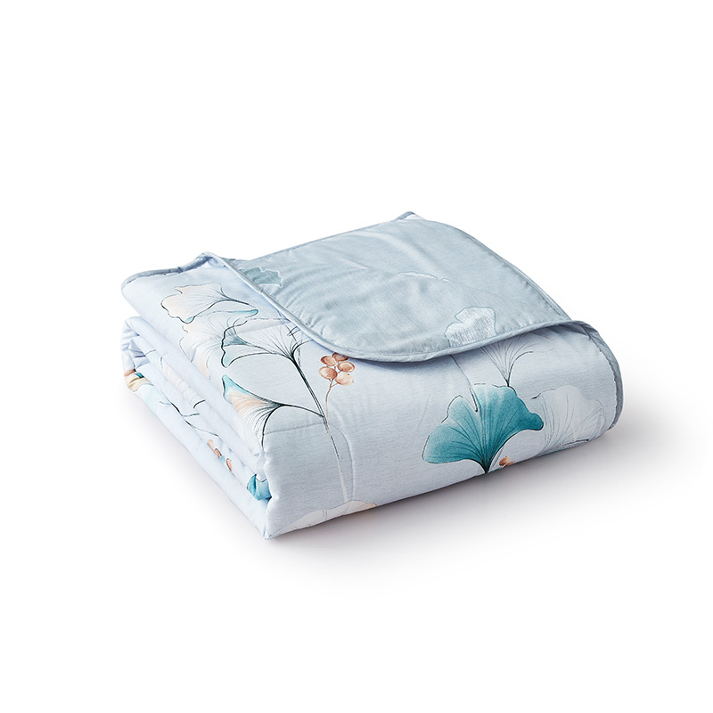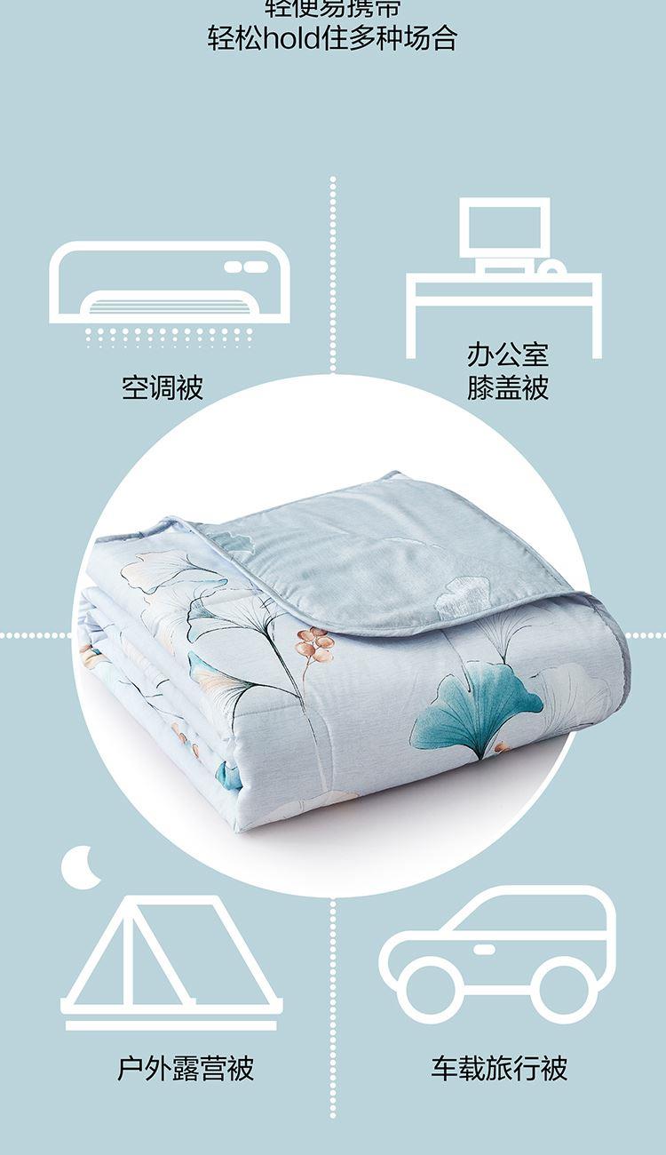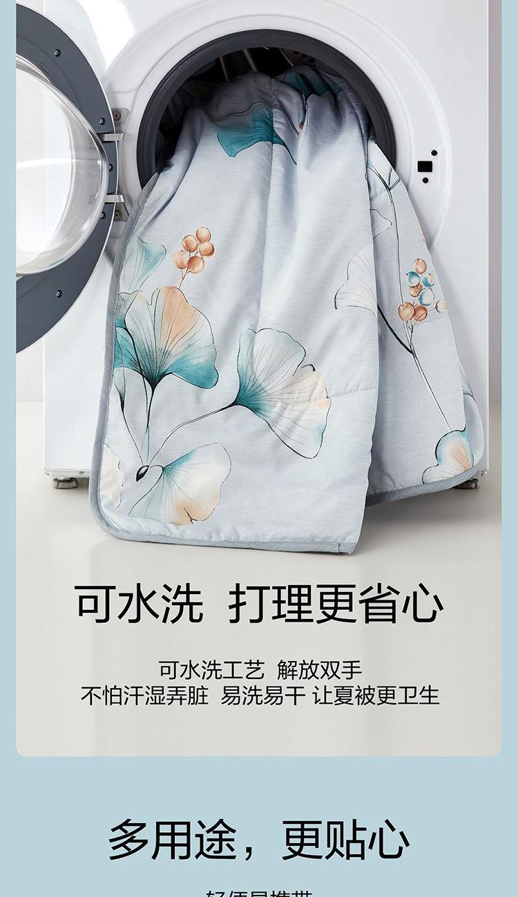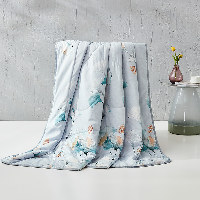 面料材质: 聚酯纤维 填充材质: 聚酯纤维 规格尺寸:150*200cm 填充重量:228g 采用桃皮绒面料,表面附有细密的绒毛,手感绵密,亲肤舒适; 填充中空纤维,经过精细配棉、开松、铺棉等多道工序加工而成,采用层层叠加的形式手感更加的柔软舒适,后道烫光工艺使得被芯更加不容易跑毛,更加经久耐用;