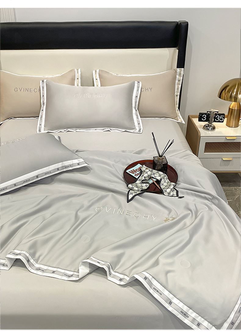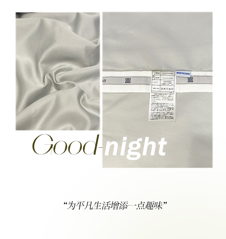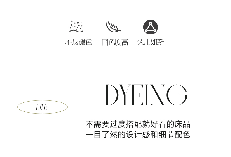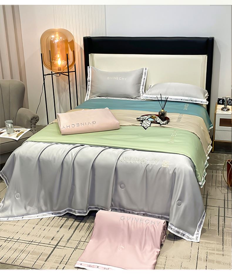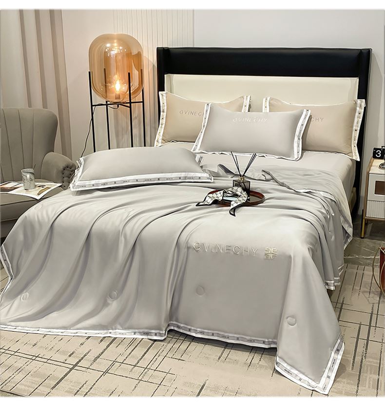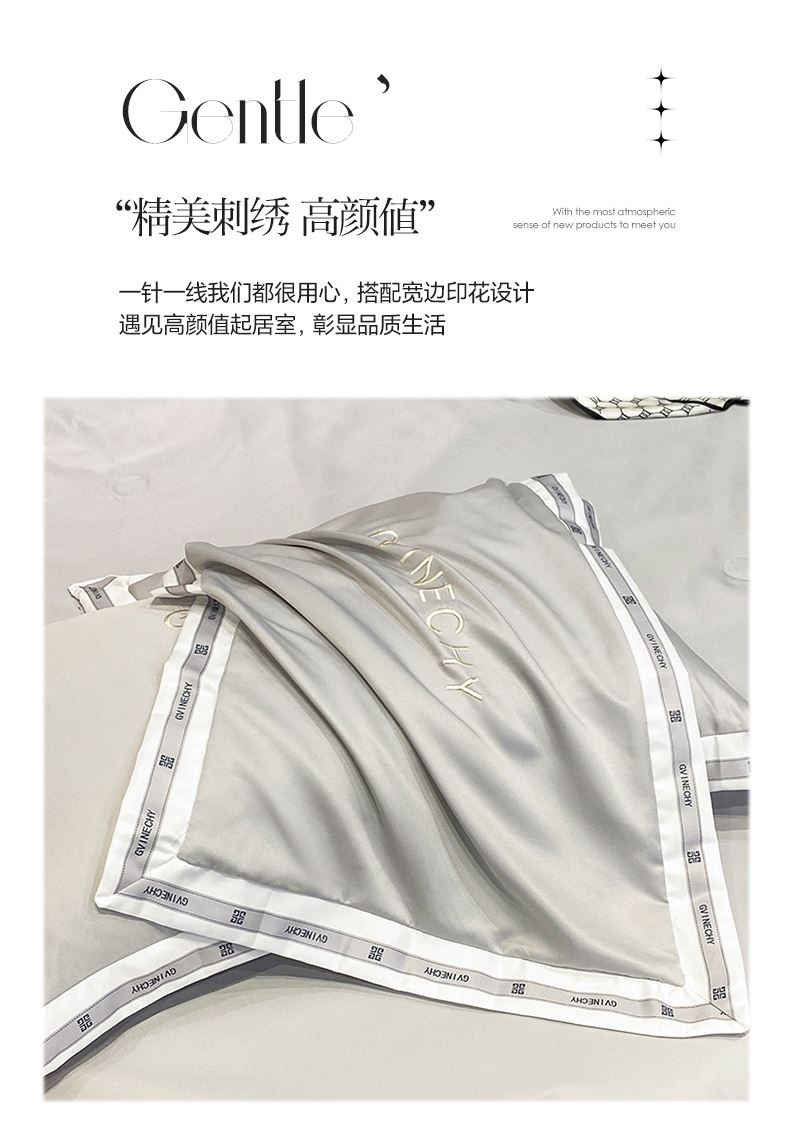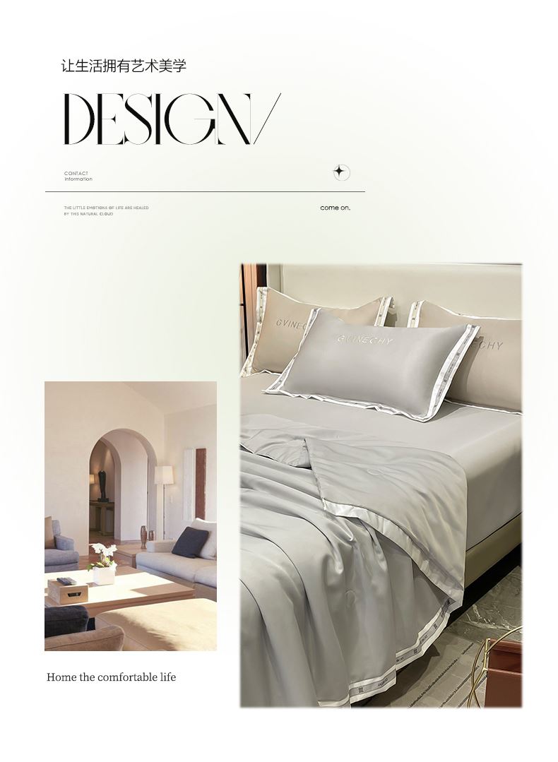 规格:夏被200*230cm 床单245*250cm 枕套48*74cm 面料:冰丝棉/聚酯纤维 花色:极光灰 / 优雅玉 / 香槟金 / 香草绿 / 樱花粉 / 松石绿 选用水洗冰丝面料,手感舒适光泽感强,爽滑舒适,整张羽丝棉填充,不结板蓬松透气,采用定位绗缝,防止跑棉,填充物更加均匀,精美刺绣,搭配宽边印花设计,可水洗机洗,活性印染,色彩靓丽,久用如新。