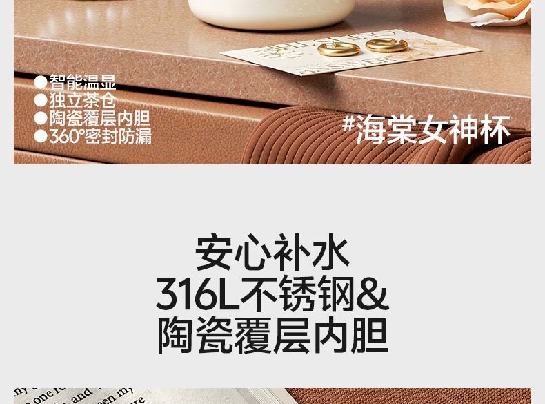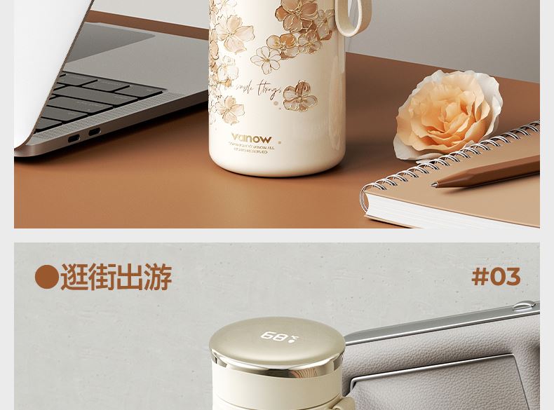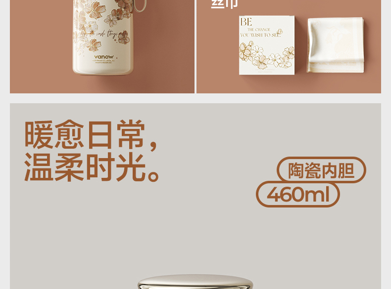 型号:VO-HT46FSX 颜色:海棠粉 容量:460ml 材质:316不锈钢,pp,硅橡胶 尺寸:190mm*72mm 1.层层保温,锁温黑科技 2.独立茶仓,优雅喝不吐渣 3.密封防漏,装包,没在怕的 4.柔软舒适,高颜值携提绳,出行新美学 5.东方雅韵,精致海棠丝巾