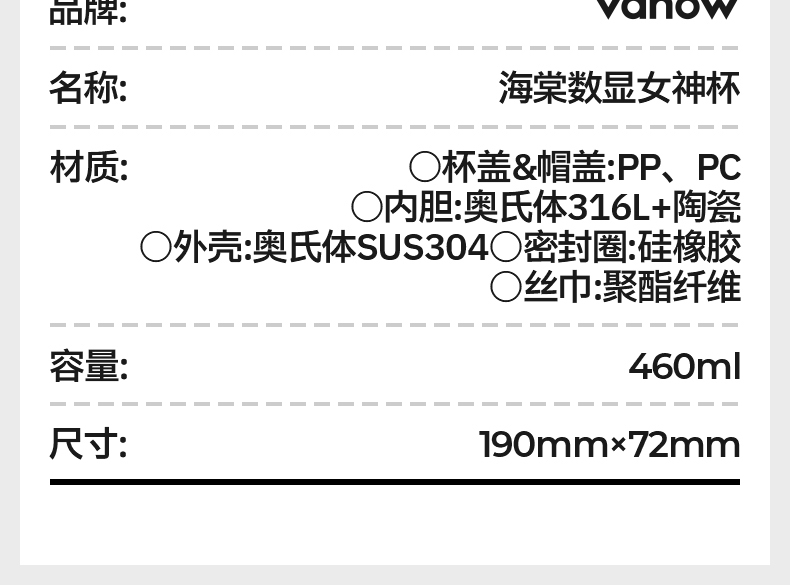 Vanow海棠显数女神杯460mlVO-HT46FSX