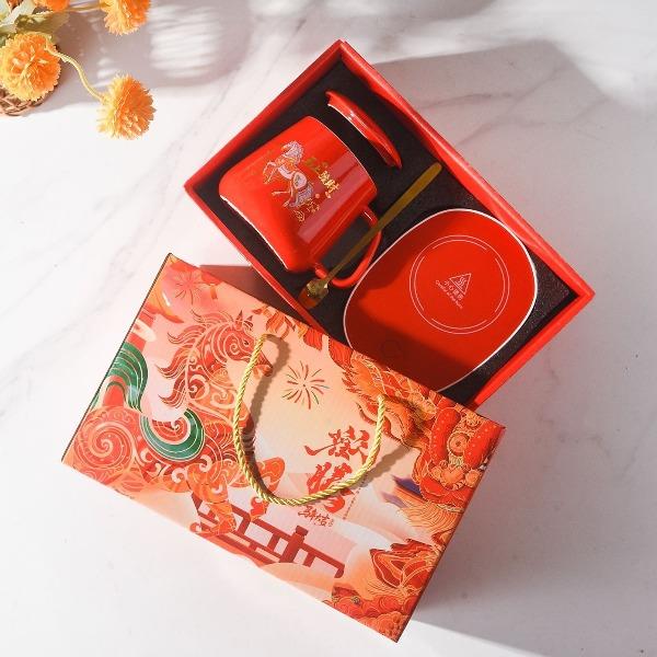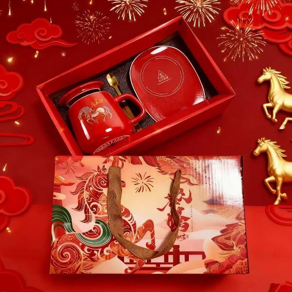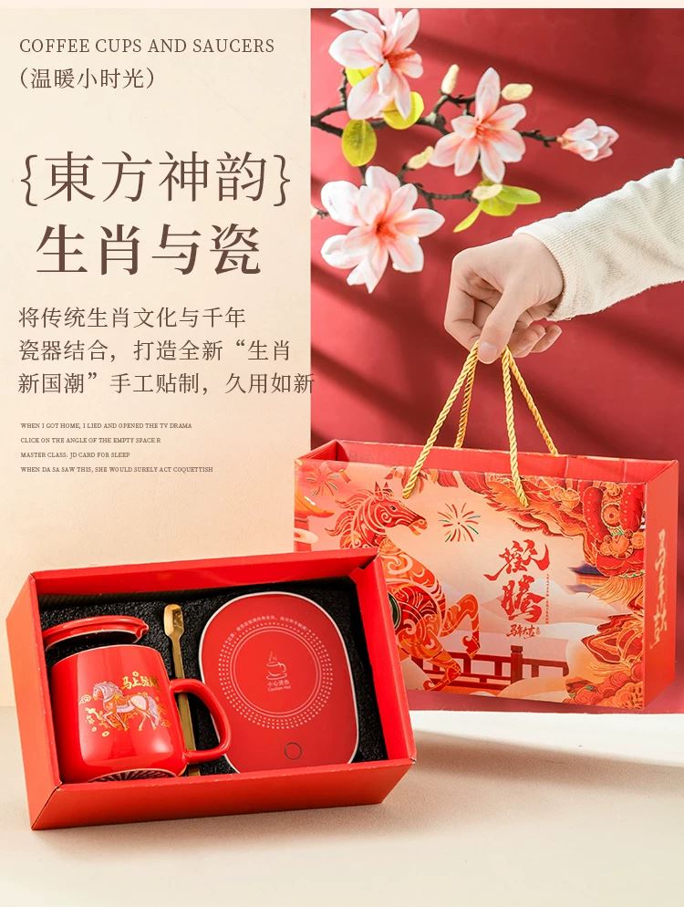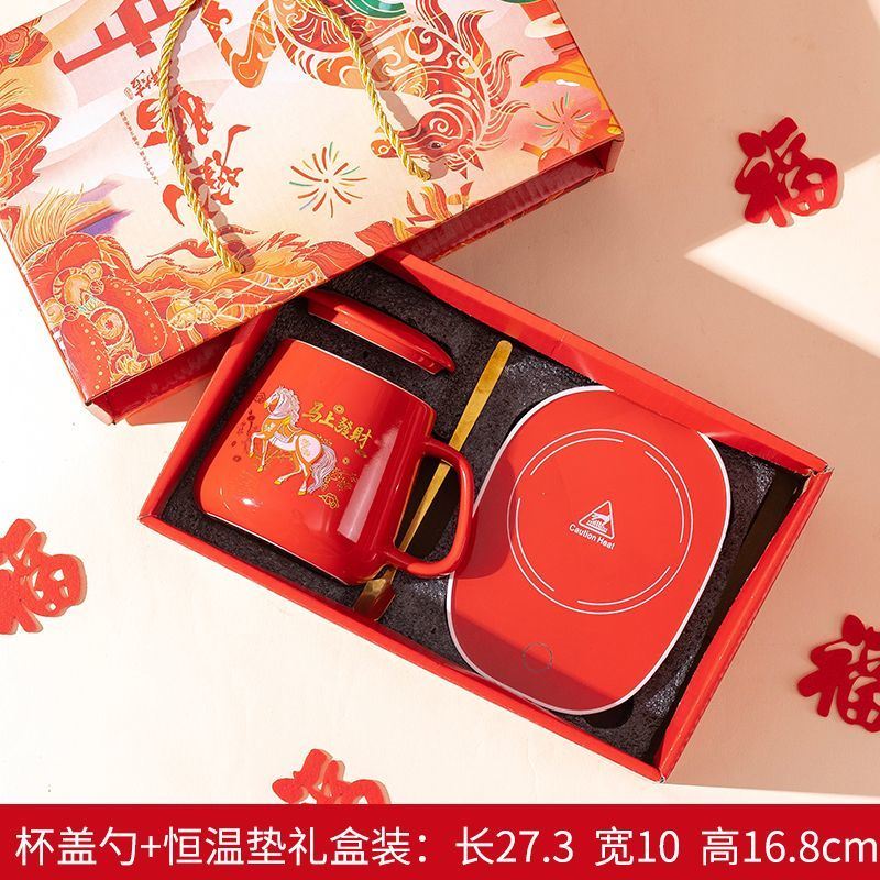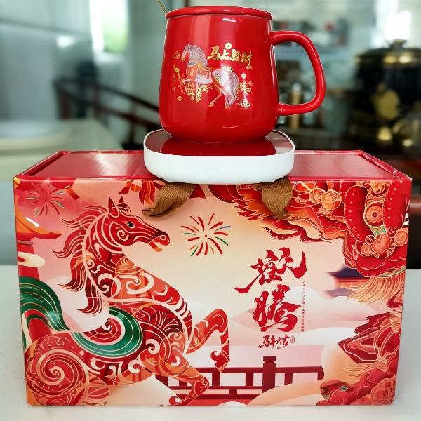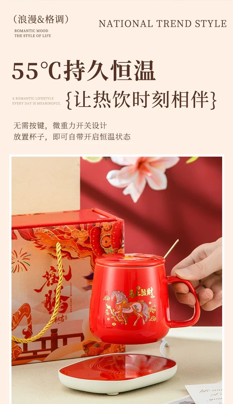 杯身那匹驮满金锭的萌马,将“马上发财”的祈愿具象化,红得热烈又讨喜;搭配同色系恒温底座,让每一口饮品都保持恰好的温度,恰似新年里对生活的热忱始终炽热。从杯、盖、勺到恒温底座,整套礼盒包装红火大气,不管是自留讨个新年彩头,还是送亲友传递“马到成功、富贵绵长”的祝福,都能在举手投足间,把国潮的韵味与马年的祥瑞,一并送到心坎里。