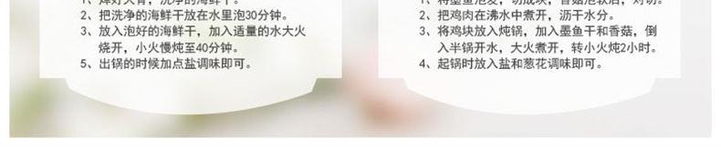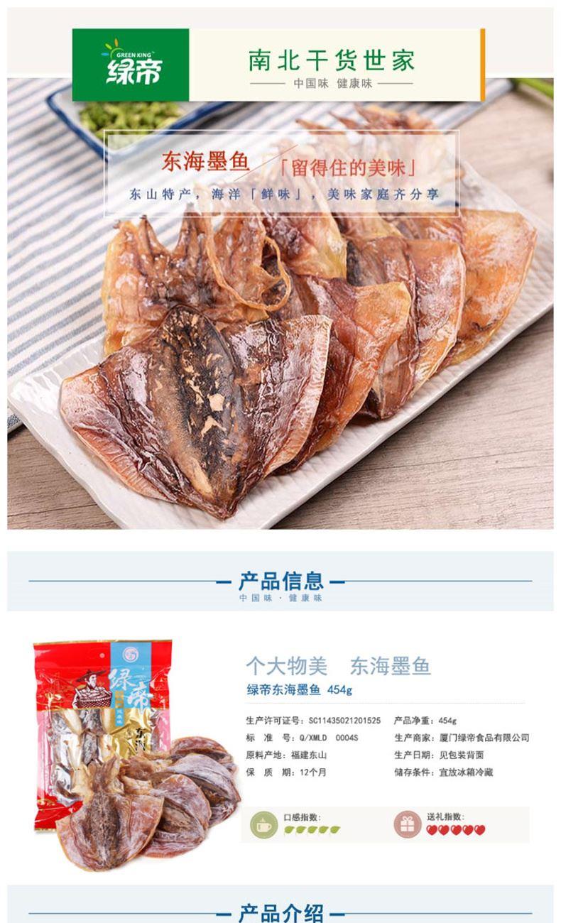 配料:墨鱼干 原料产地:福建省漳州市东山县 净含量:454克 保质期:12个月 生产日期:见包装物打印处 食用方法:将墨鱼干品放入清水中浸泡回软、洗净,根据烹调所需切丝或切块,可与肉类、蔬菜类一起炖制煲汤,也可与笋片、青椒等一起翻炒,则味道更鲜美。 墨鱼又称乌贼,肉质嫩、味鲜美,经去脏、清洗、干燥、整形加工而成;原料纯正、工艺精良、风味独特,为广受大众欢迎的海产品。