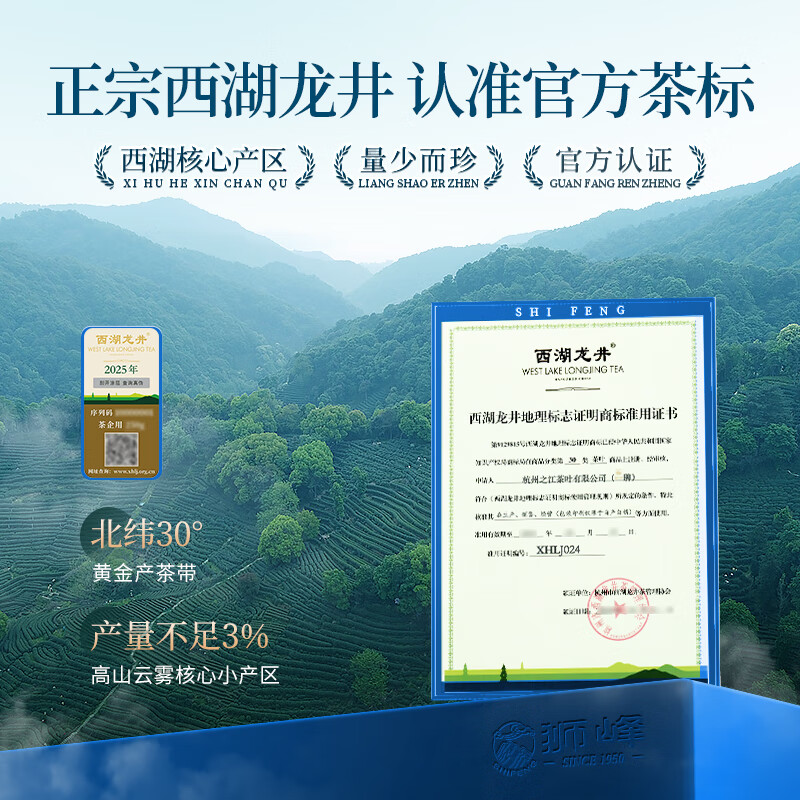 狮峰牌精品西湖龙井狮峰珍品1星礼盒250g