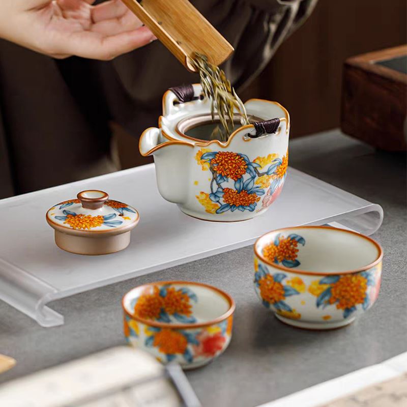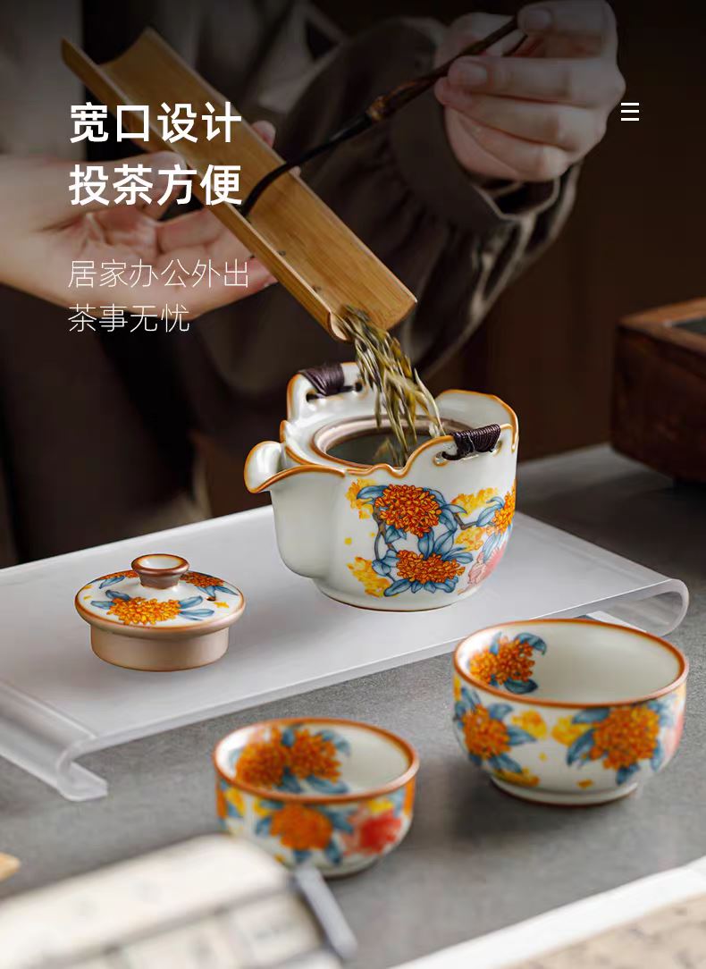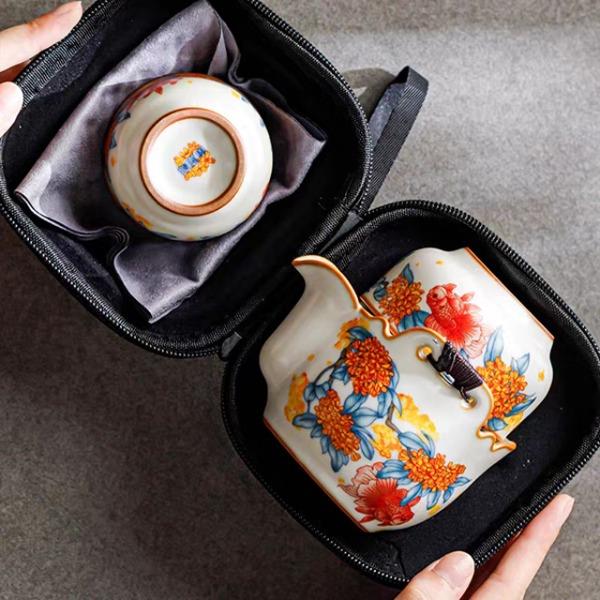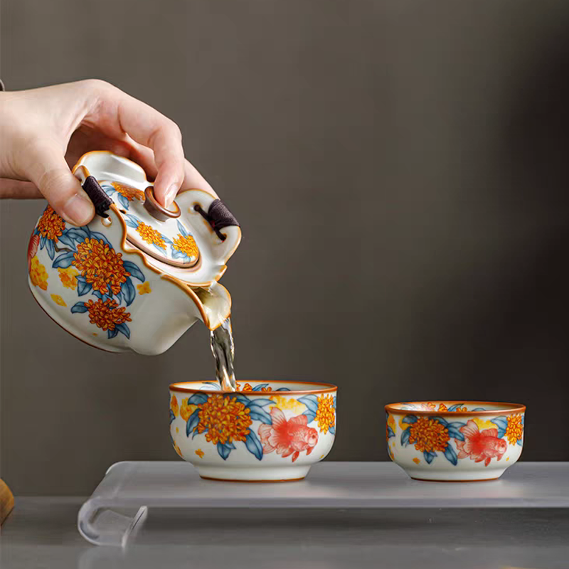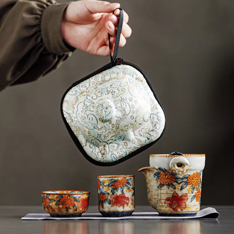 鹏翼母亲节金桂献鲤旅行茶具快客杯
