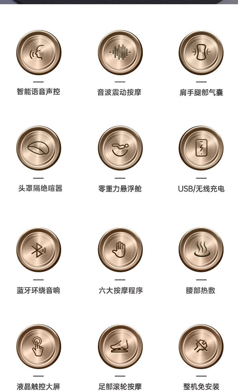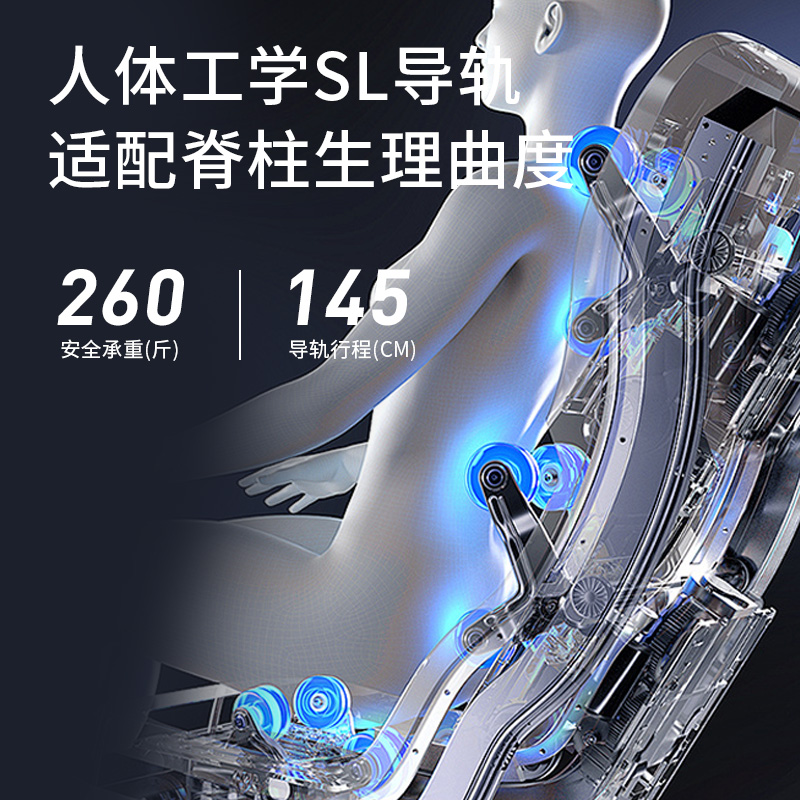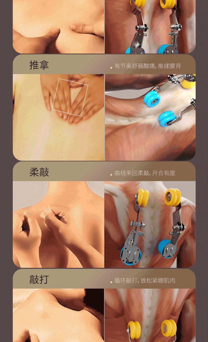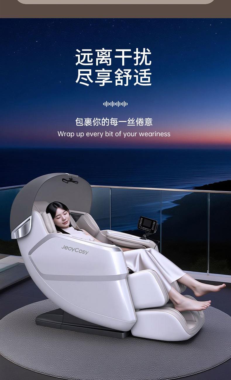 1、4D音波机芯,灵动屈伸,刚柔交织,音波筋膜级按揉 2、人体工学SL导轨,适配脊柱生理曲度,95%覆盖按摩 3、一体式头罩,降噪睡眠,头等舱体验沉浸式按摩 4、揉捏、指压、推拿、柔敲、敲打、气囊、热敷,卸下奔波的疲惫