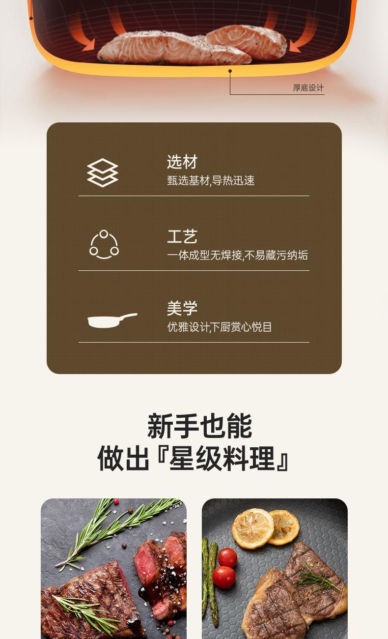 规格:32cm 材质:铝合金 单个尺寸:568*390*160 1、95万次超耐磨不粘 2、五芯一体仿压铸工艺 3、一款含钻的不粘锅 4、军工硬氧强化、耐磨、耐腐蚀、抗酸碱。