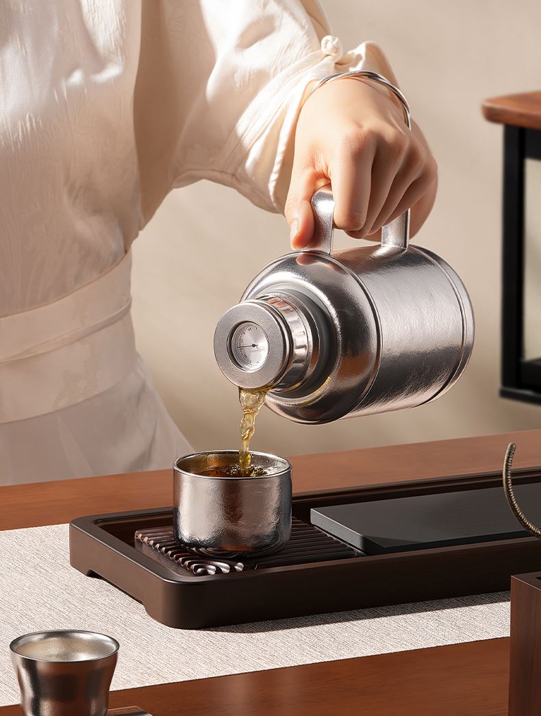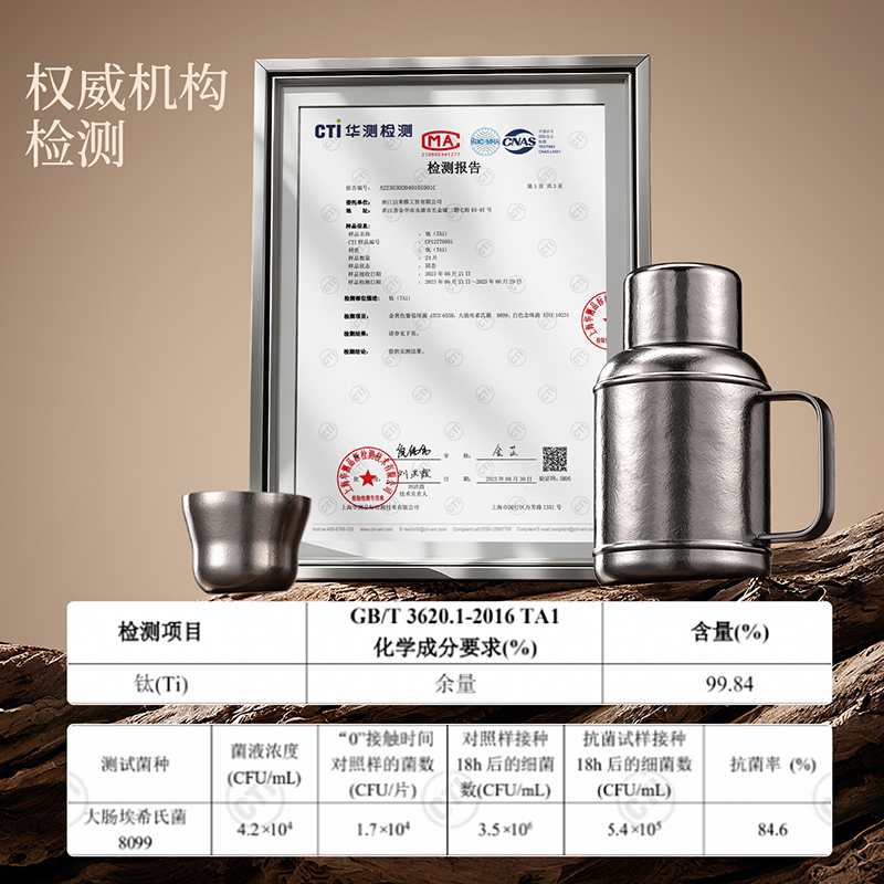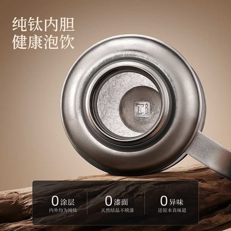0涂层0漆面0异味 钛含量99.8% 健康泡茶 保温时间12-24H高于普通保温杯 600ml黄金大容量附赠三只35ml小茶杯,独享分享皆适宜 防滑静音杯底、体积小、重量轻在哪用都合适 内外全钛 一壶三杯 礼盒包装 高温锤炼成色 按盖出水 磁吸杯盖 机械温显 航天级材质 焖茶保鲜 权威检测 长效保温