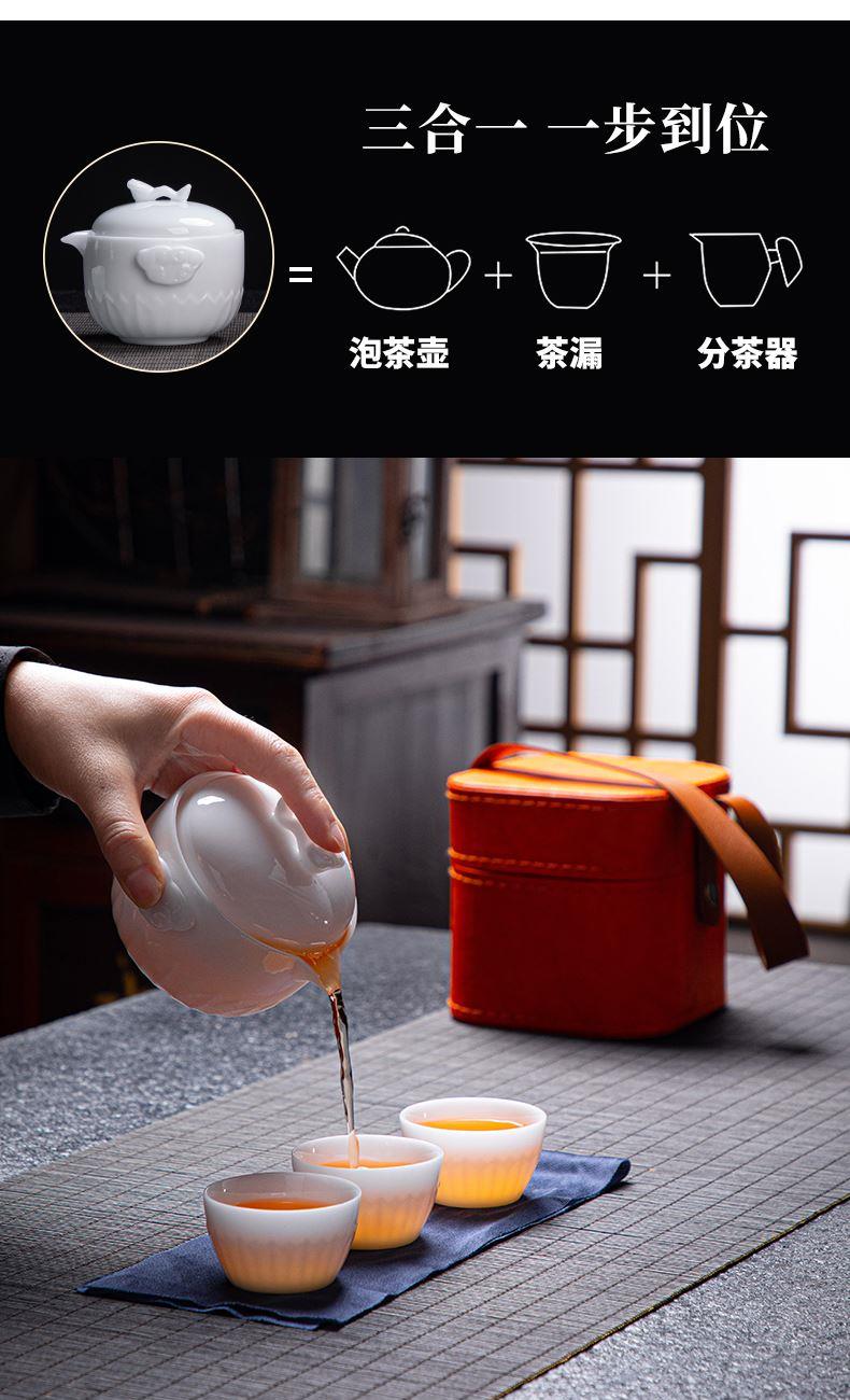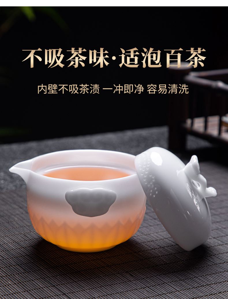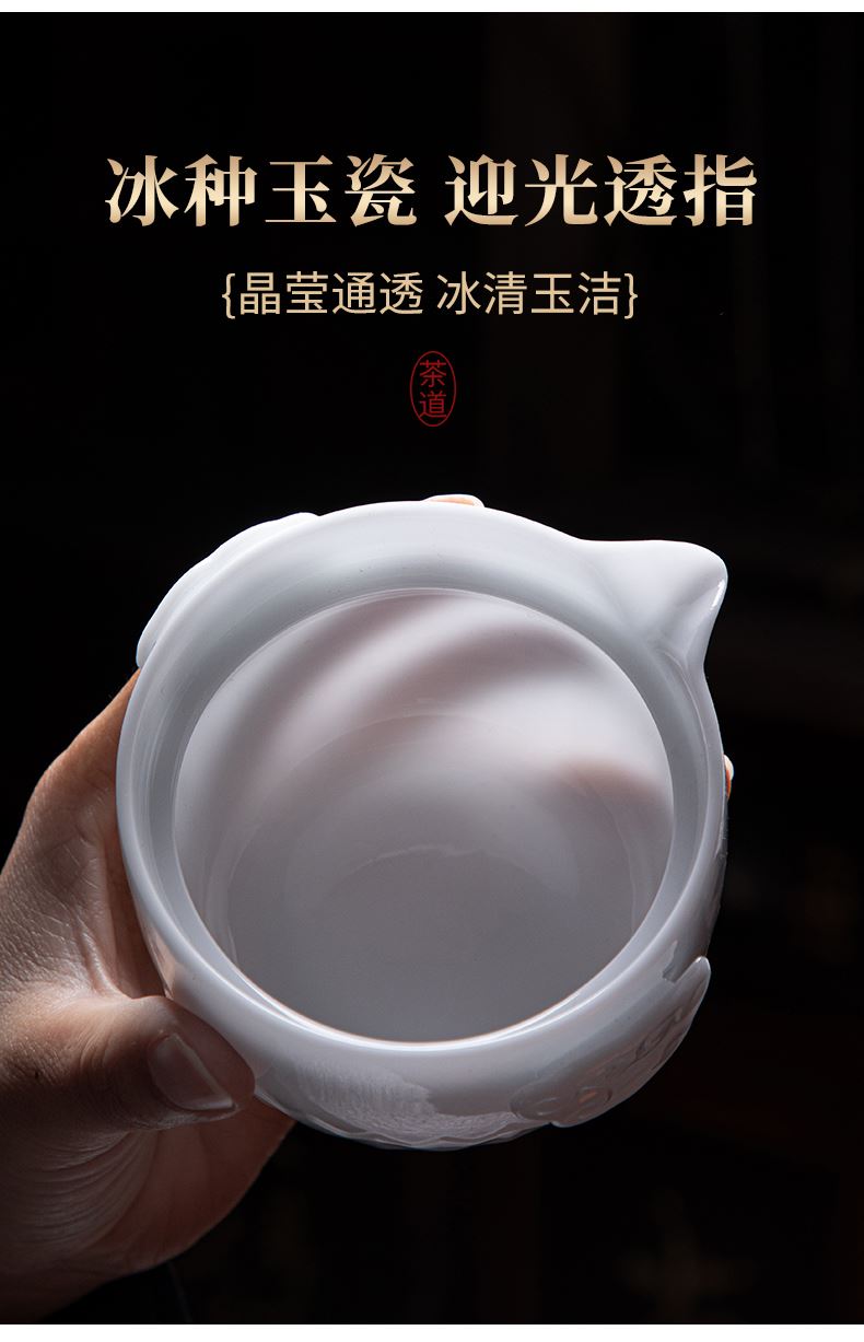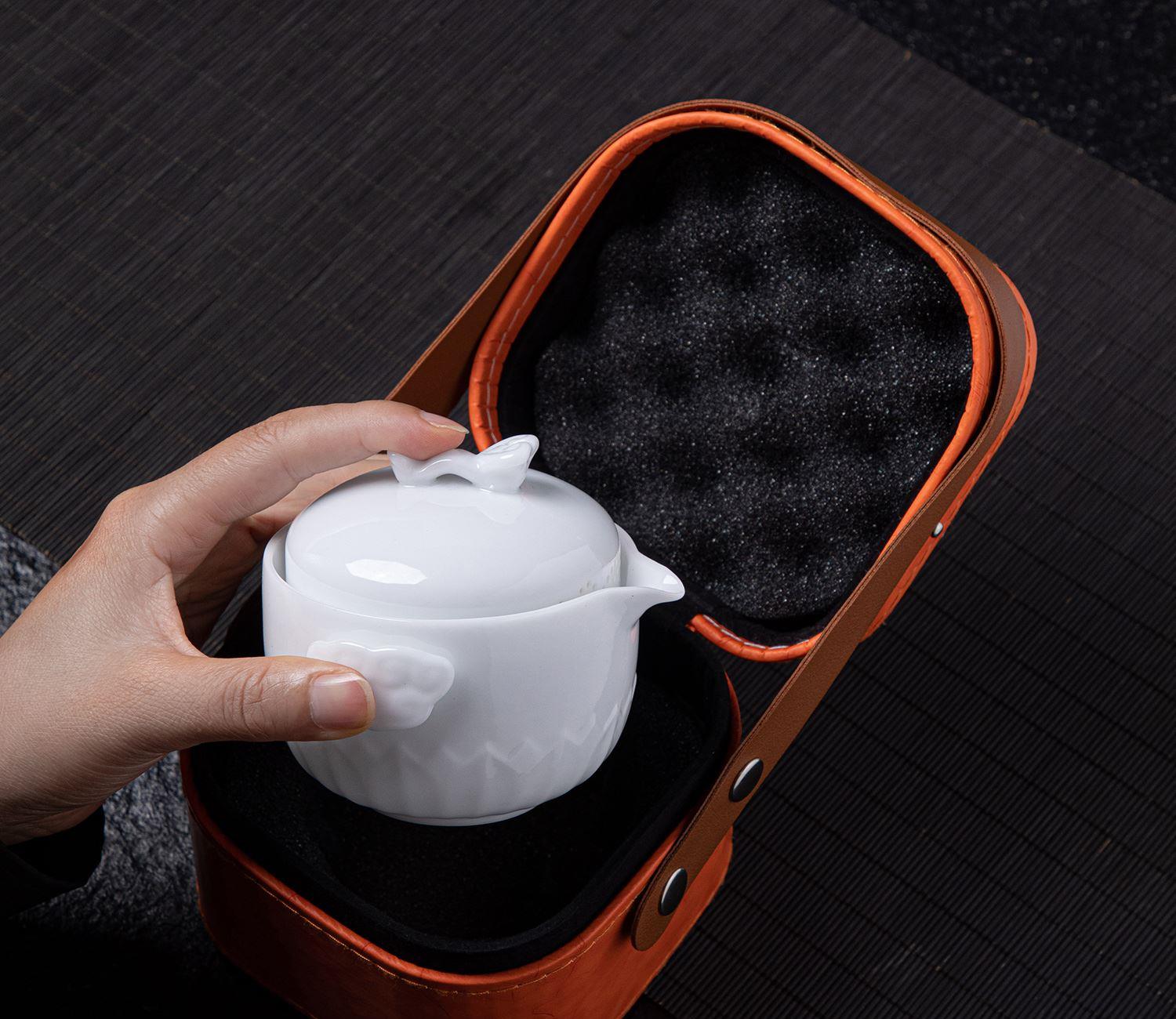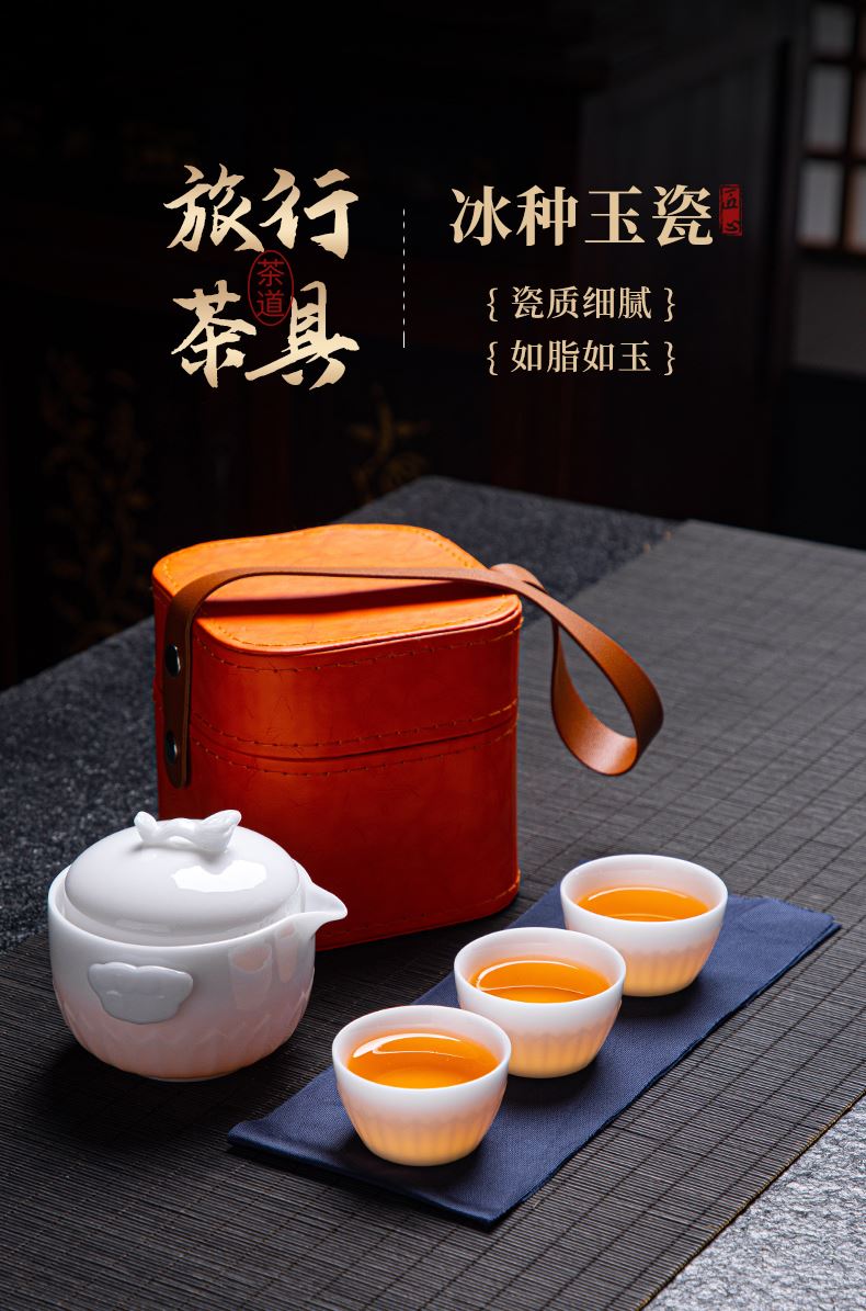 手抓壶1:10cm*8.5cm 容量170ml 茶杯3:5.5cm*3.3cm 容量41ml 旅行包1:11.5cm*11.5cm11.5cm 原矿瓷土,高温烧制,瓷化程度好,声音清脆,吸水率小 冰种玉瓷,如脂似玉,通透见影,细腻润滑,洁白如雪。 匠心设计:如意盖钮,祥云防烫抓手,协调、美观吉祥。 手抓壶盖科学设计,茶壶、茶漏、分茶器,一步到位。 精致包装,便捷收纳。居家、旅行、自用、送礼皆相宜。