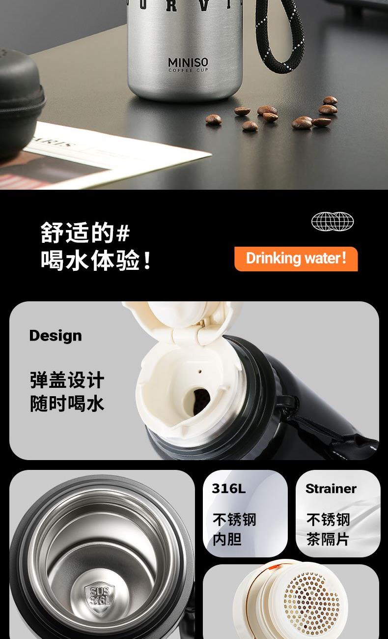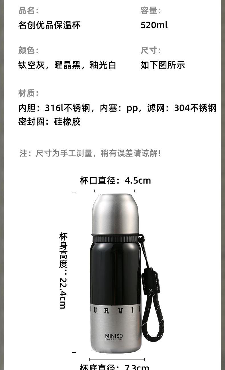 名创优品316L车载子弹头全钢杯盖保温杯520ml
