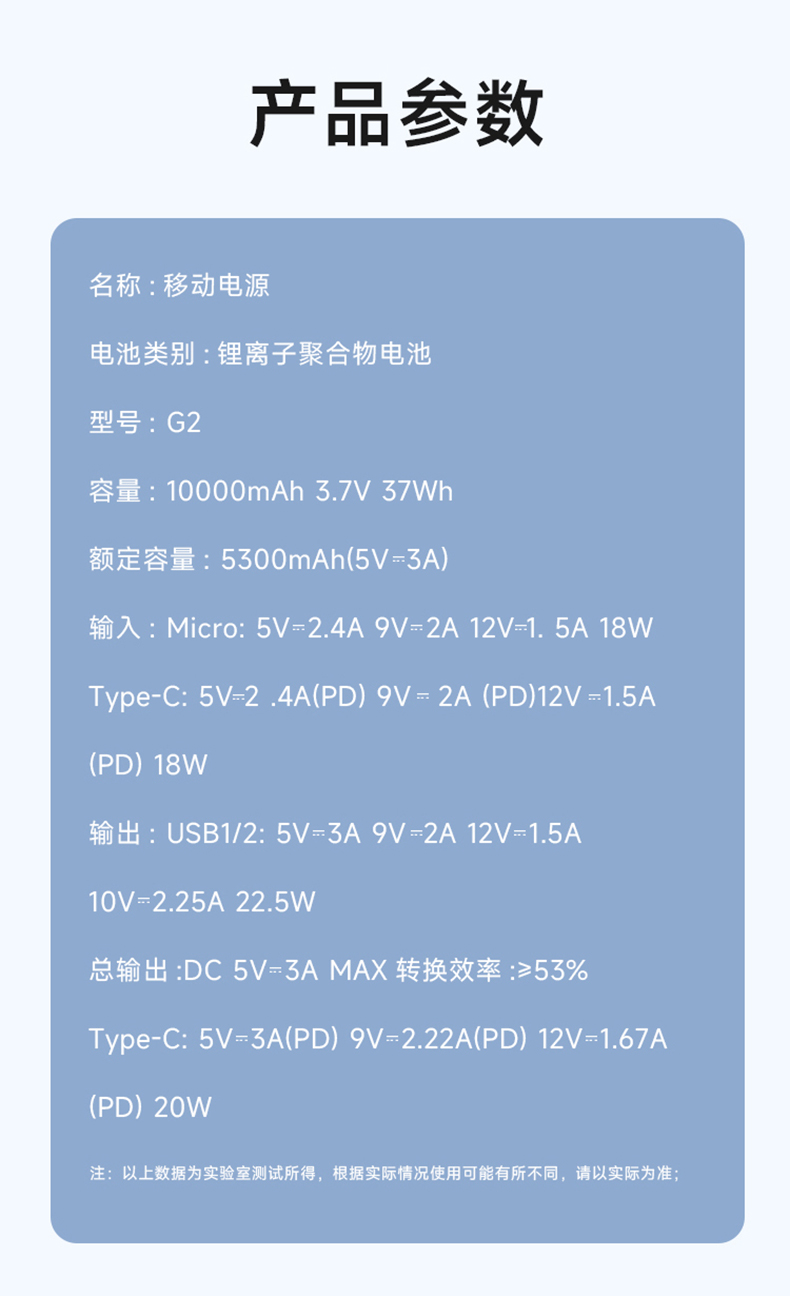 2、大容量.不虚标、10000mAh出行不断电,电量没烦恼