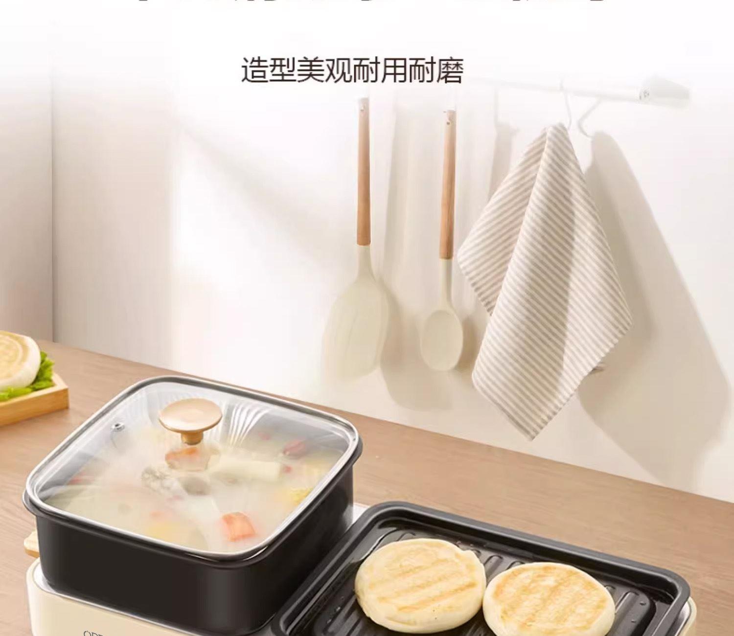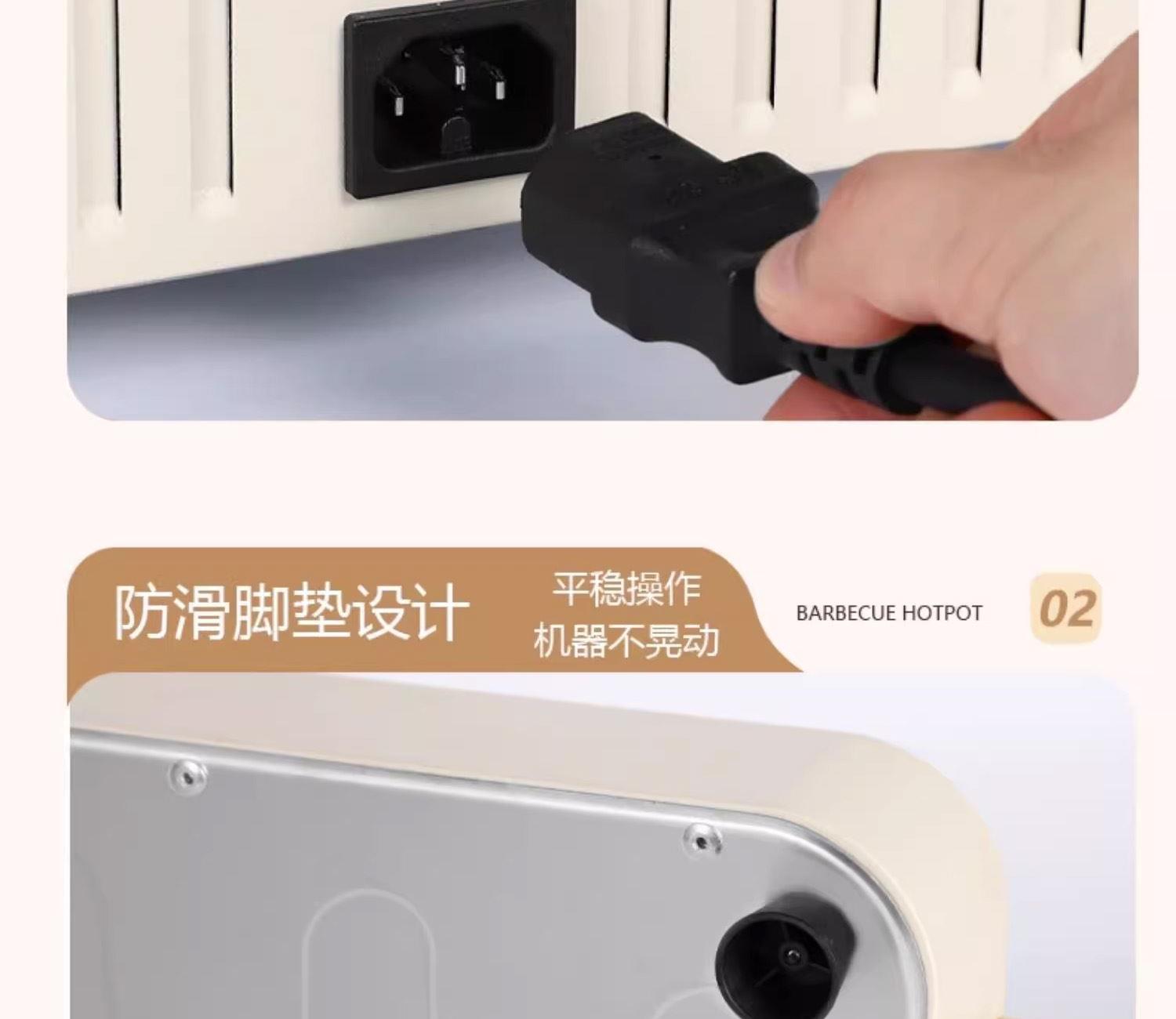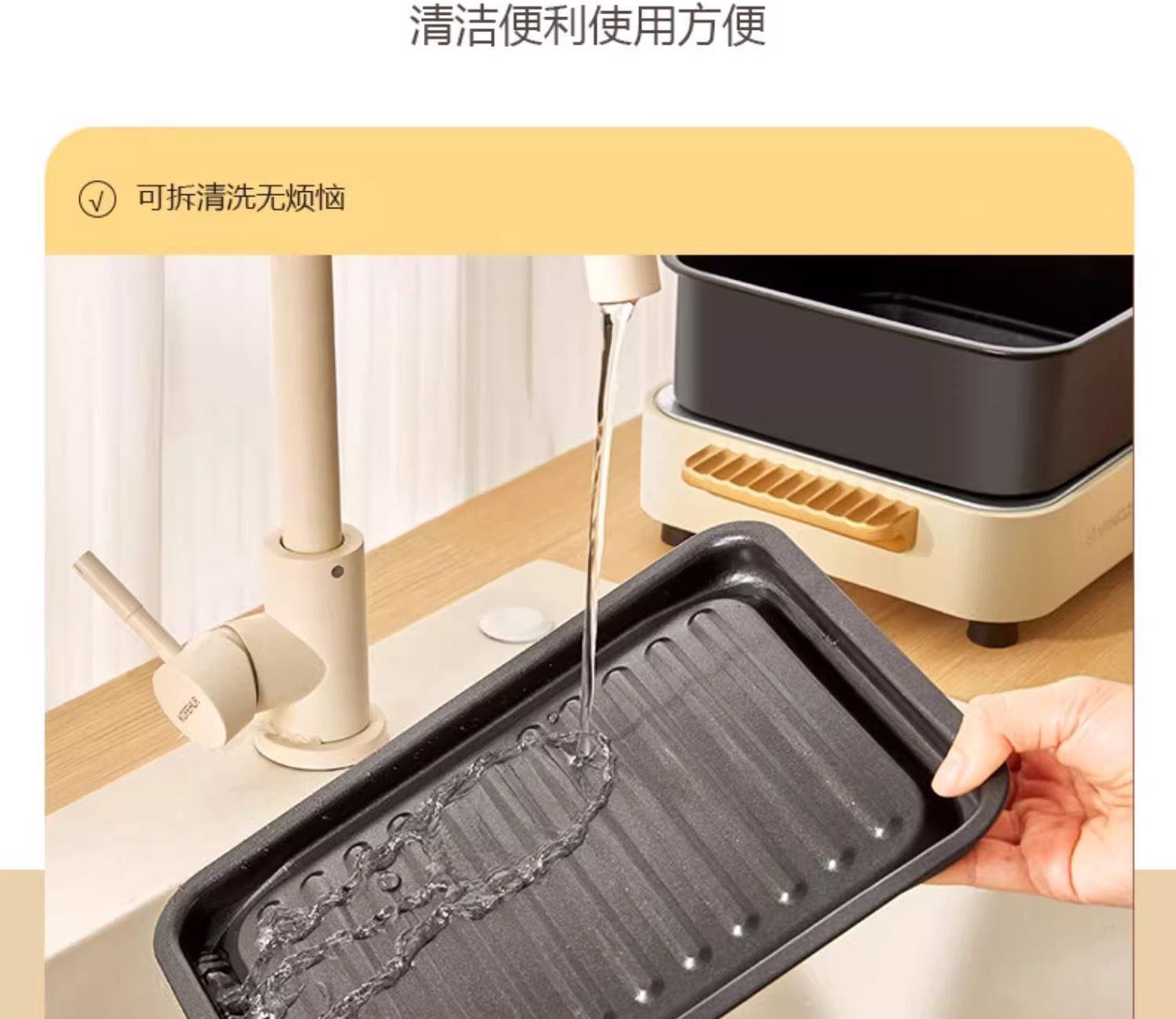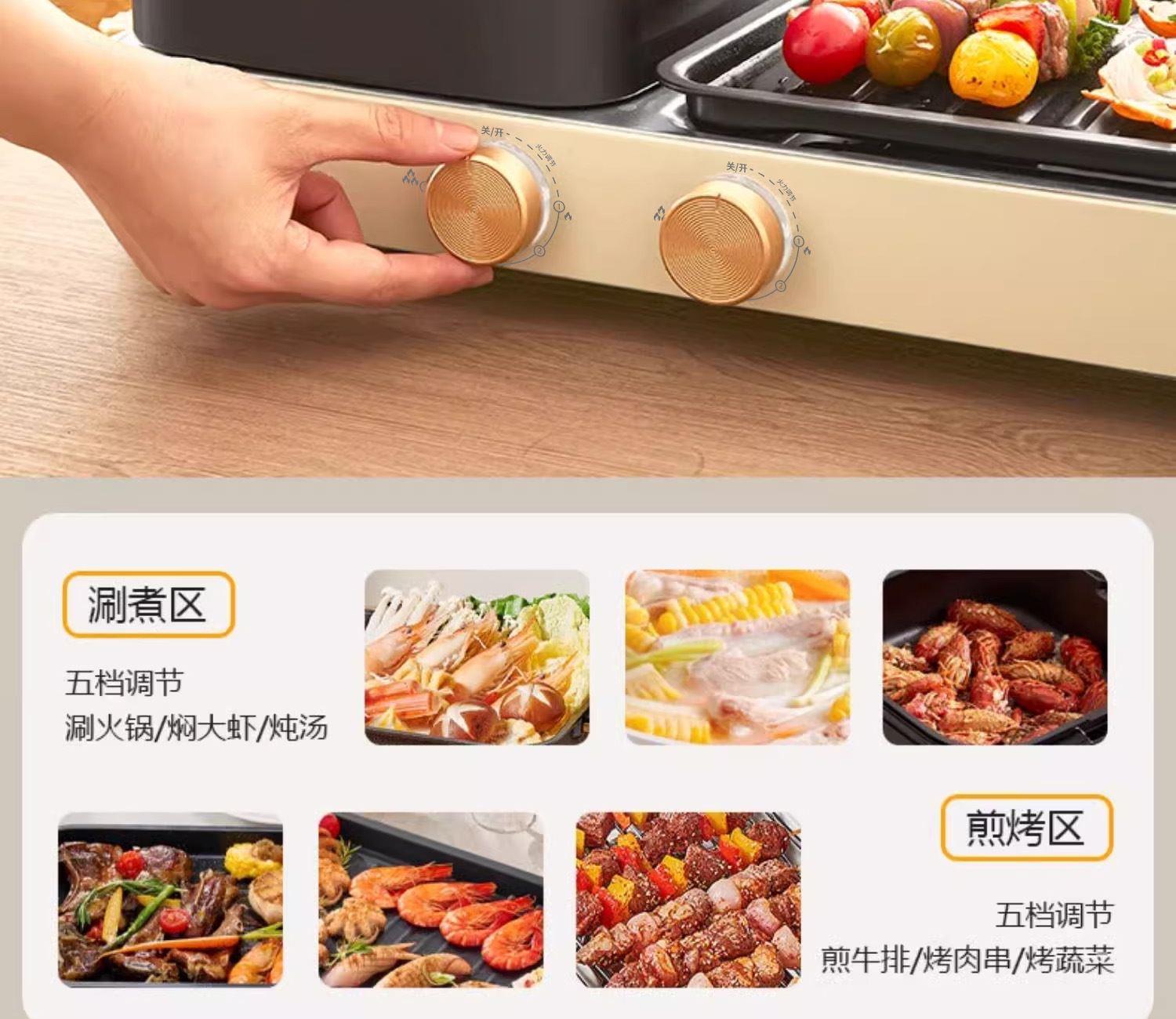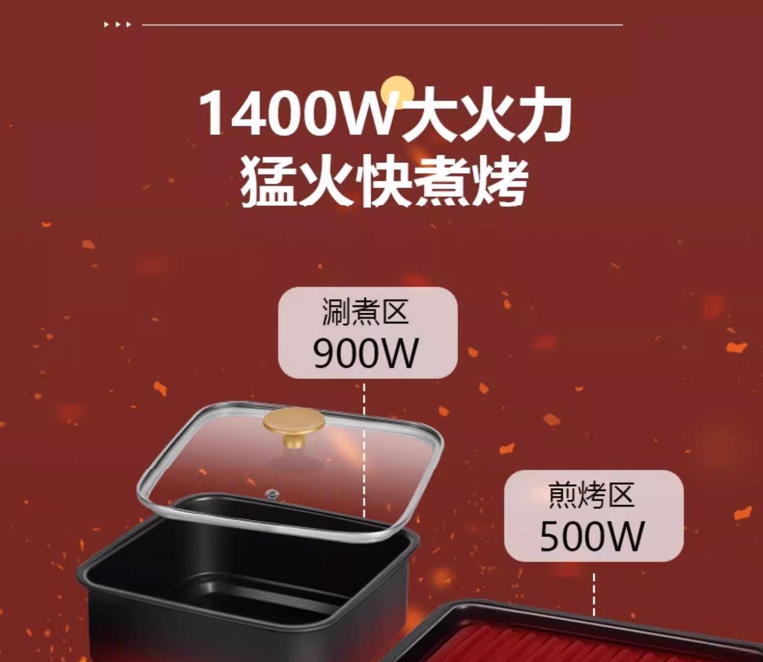 1400W大火力猛火快煮烤,涮煮区900W,煎烤区500W