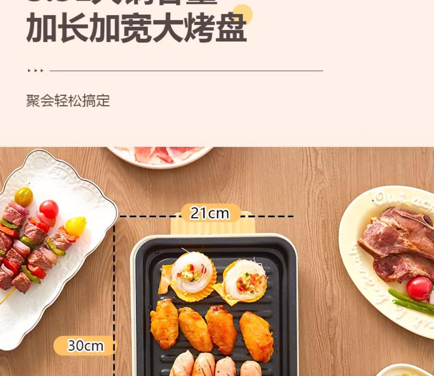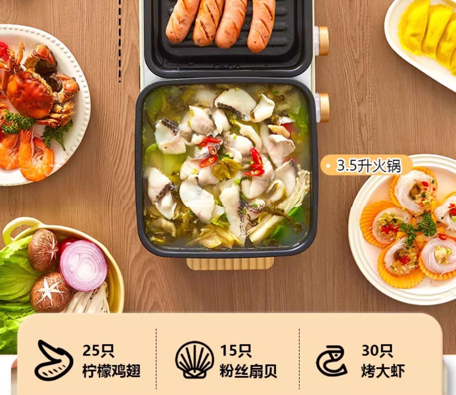 3.5L火锅容量加长加宽大烤盘,朋友聚会轻松搞定