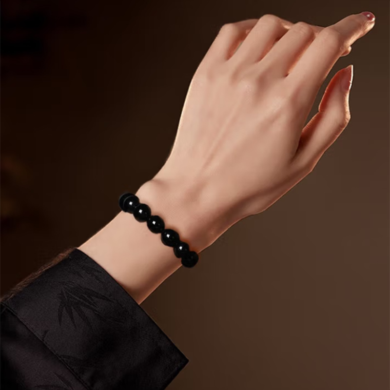 极强辟邪化煞: 黑曜石是公认的护身石,佩戴它寓意着吸收并阻挡负能量、病气、浊气,以及防止小人的侵扰。 稳定与扎根: 盘玩黑曜石手串使人静心,稳定情绪从而变得稳重务实,不浮躁。