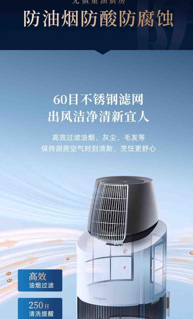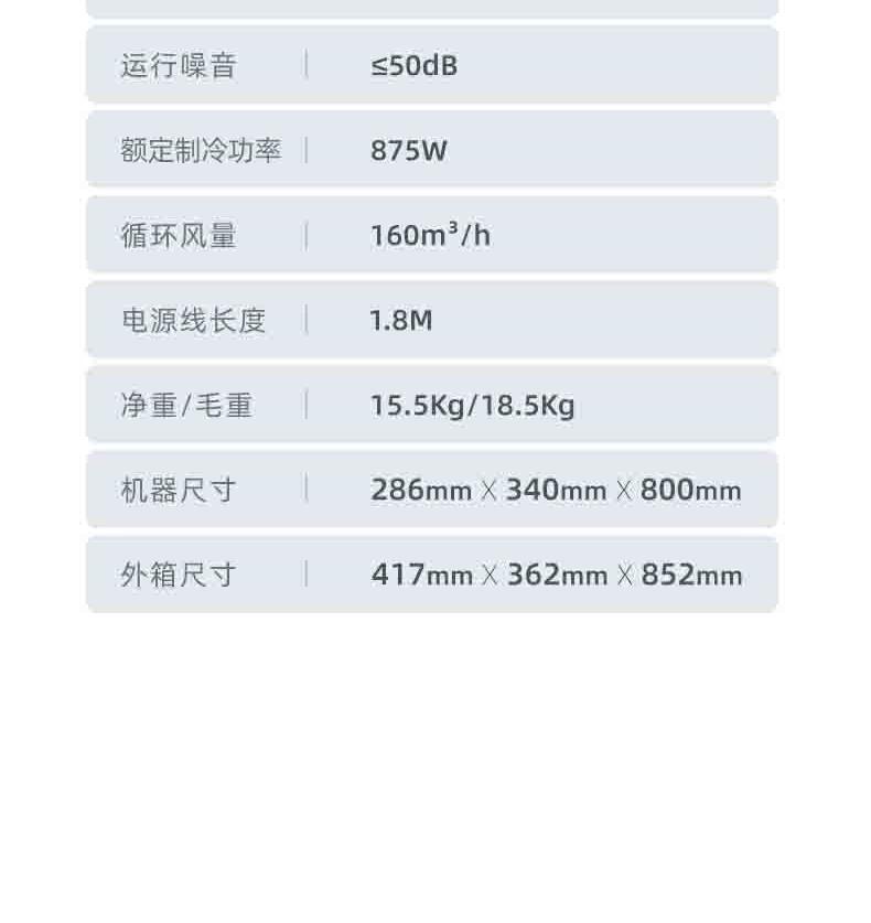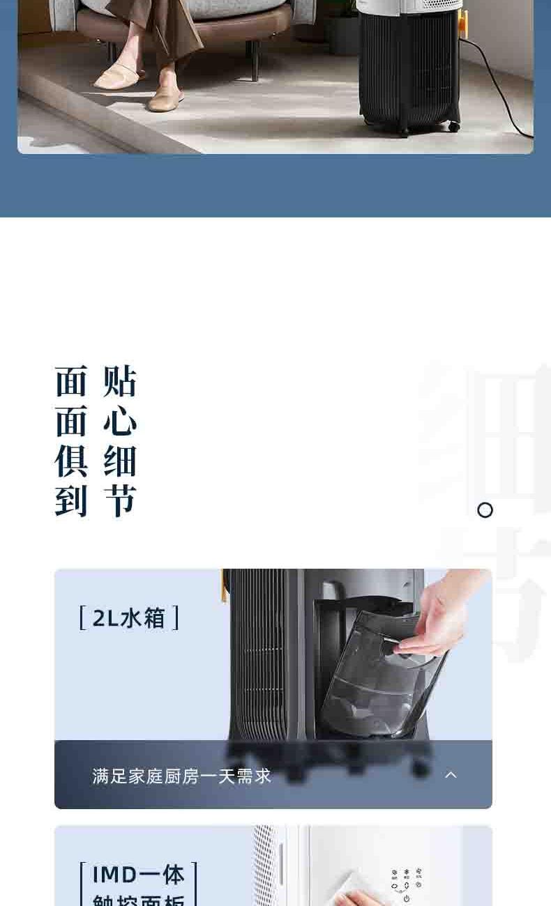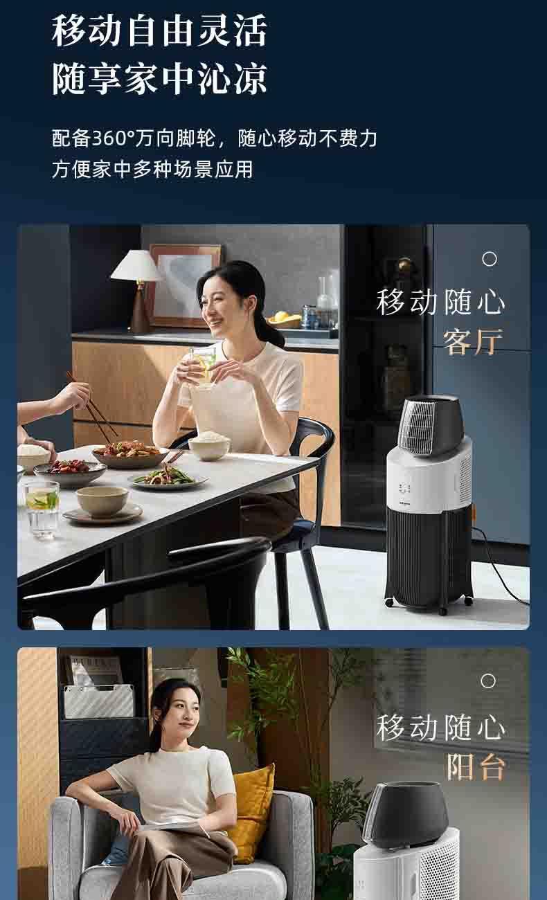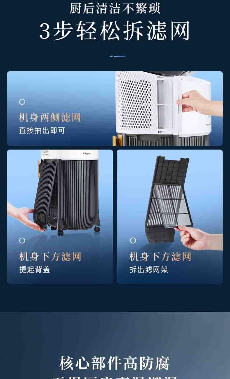 一体机身免安装,加水插电即享清凉 AI语音+智能触控,厨间清爽随叫随享 上下左右广角送风,3档风量全 方位凉爽 60目不锈钢滤网,高效过滤油烟/灰尘/毛发