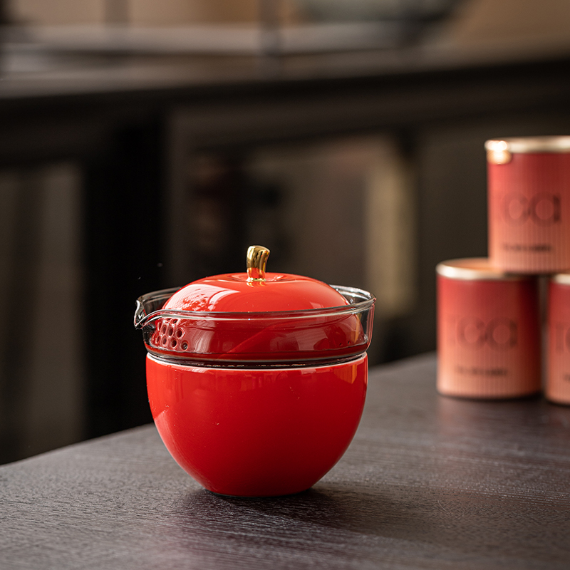 设计理念:本设计以“平安”为核,以“苹果”为形,将一份朴素而深切的祝福融入日常茶事之中。 礼盒的核心是一套苹果造型的快客茶具。我们摒弃繁复,萃取苹果圆润饱满的轮廓,以现代简约的线条重塑一壶两杯。壶钮处以一抹金色小叶点缀,成为点晴之笔。这不仅是对“苹”安祝福的直接呼应更让使用者在捧握之间,感受到一份被具象化的安稳与喜乐。暖白或苹果红的哑光釉面,赋予器物以温润的肌肤感,寓意岁月静好,温暖相伴。 产品配置:旅行茶具一套、小罐装茶*4罐(赠)、对联*1、红包*6、设计理念卡片*1、礼盒