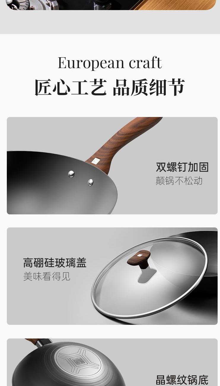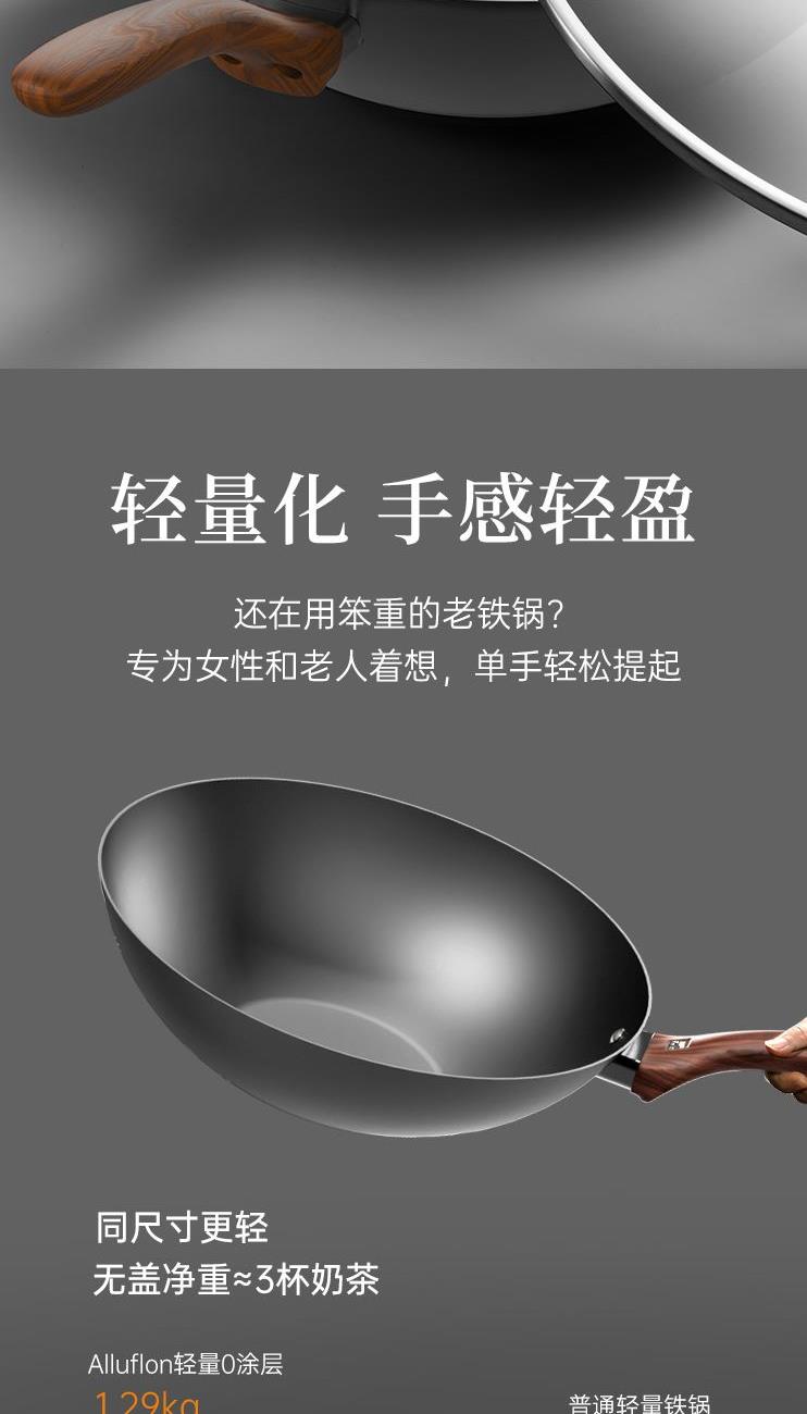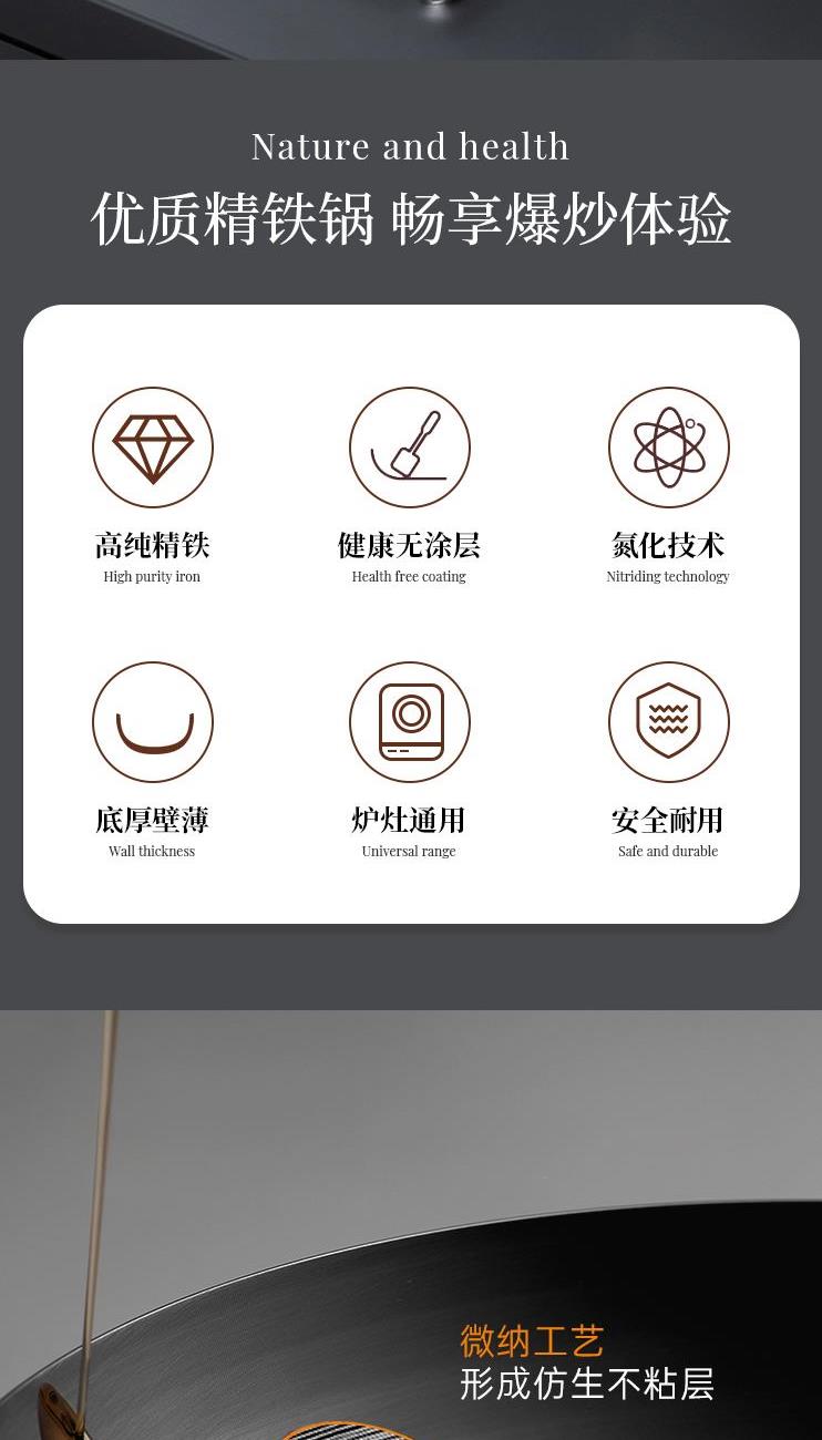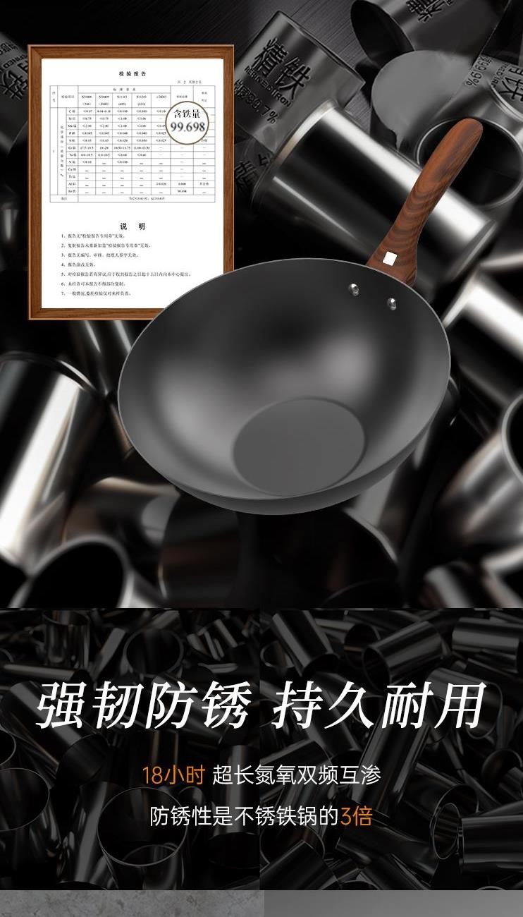 规格:32cm 材质:精铁 入箱:1个 单个尺寸:522*375*138 1、含铁量99.6%,无涂层更健康 2、精工氮化工艺、不易锈 3、双重高温炽炼、坚硬耐磨、锈不了 4、螺纹锅底防滑聚火节能。