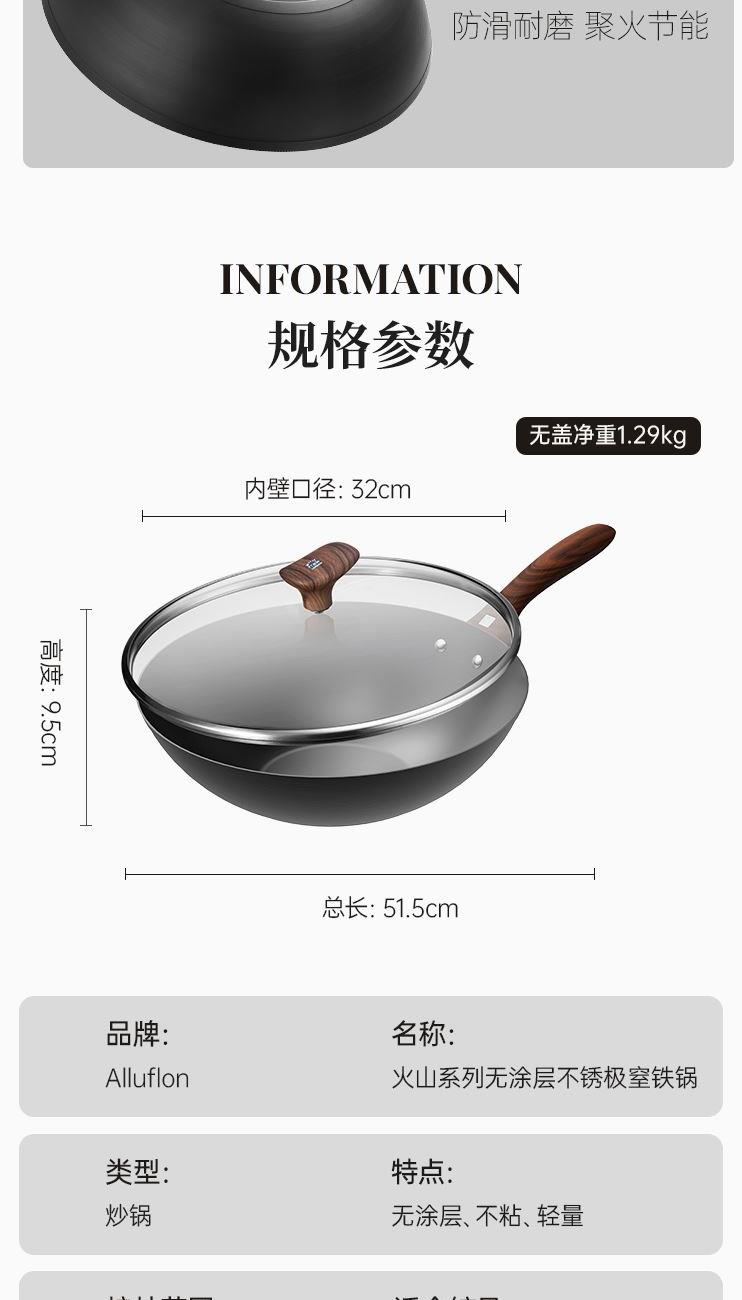 Alluflon阿路弗仑火山系列无涂层极窒铁锅32cm