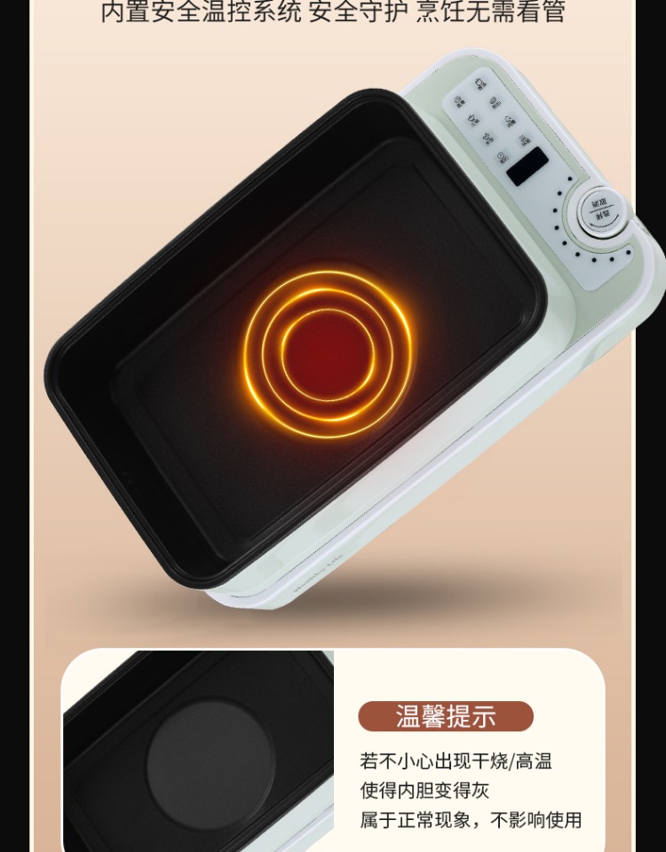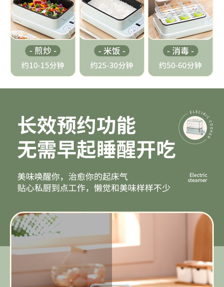 5、支持10小时预约和8小时保温;360°整圈发热,受热均匀不易焦;
