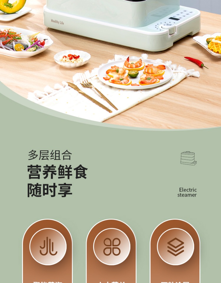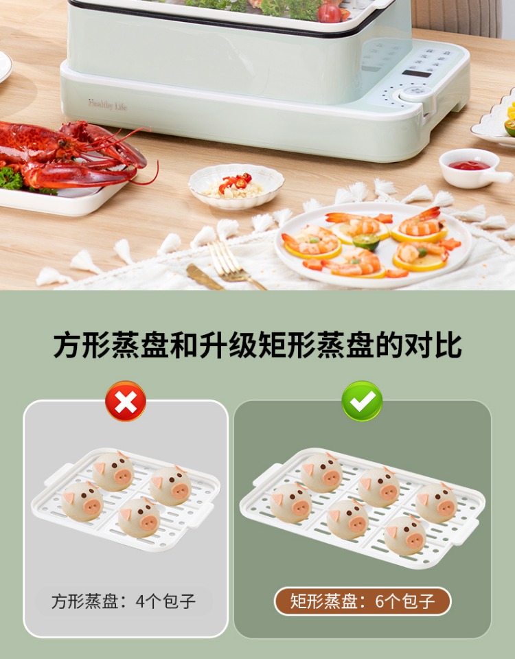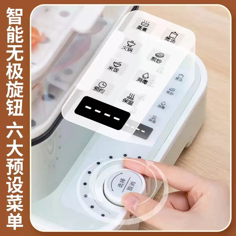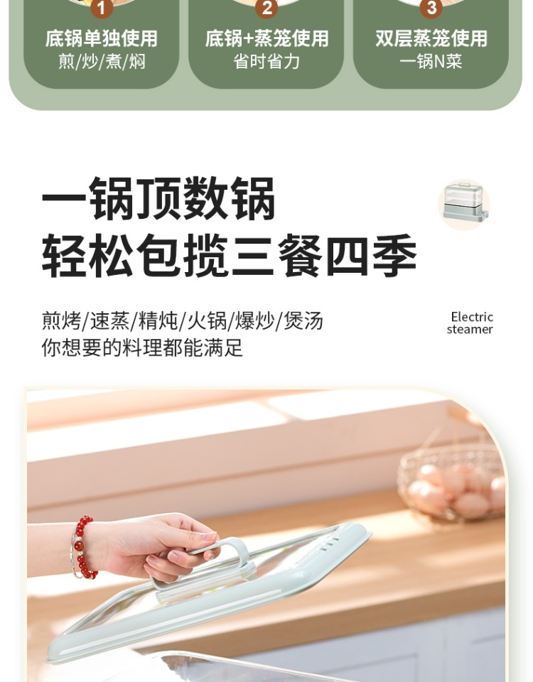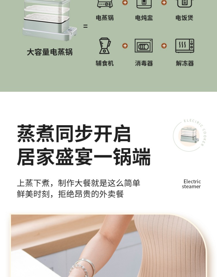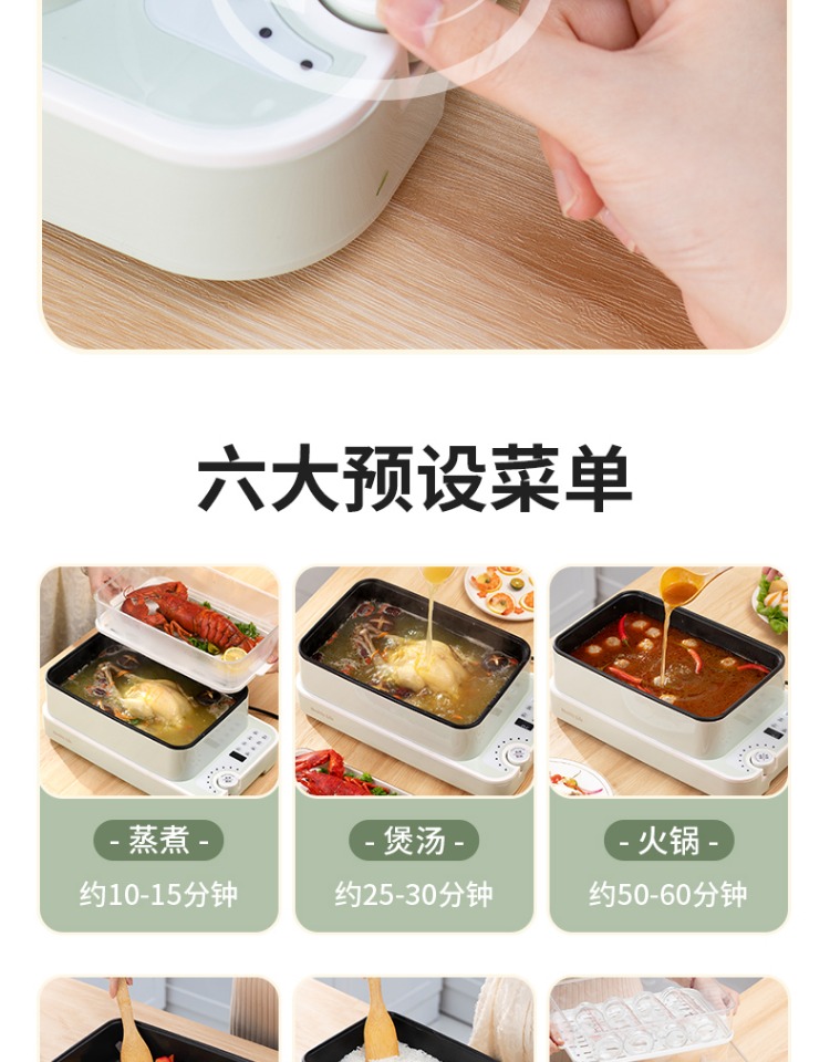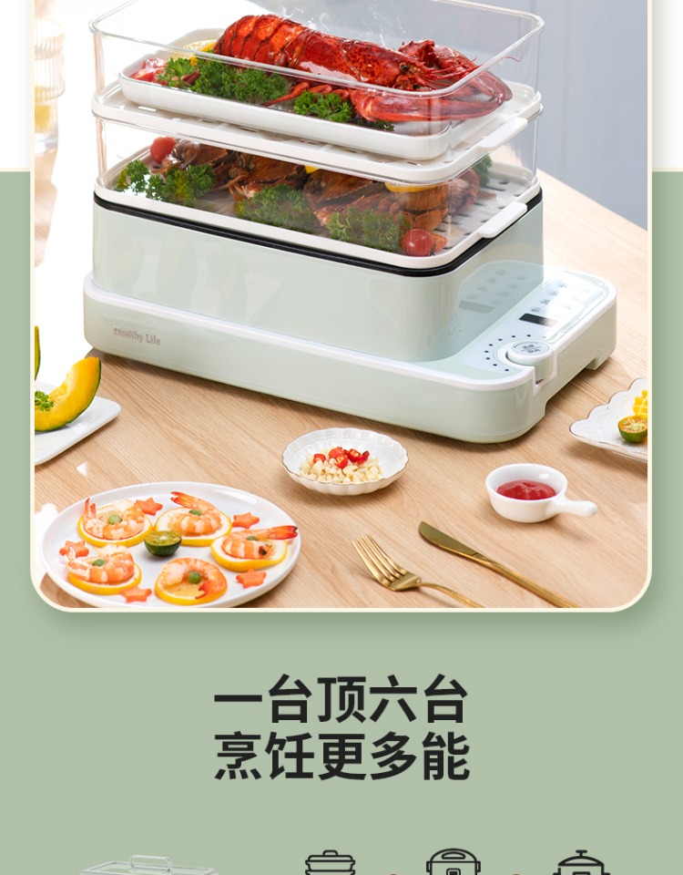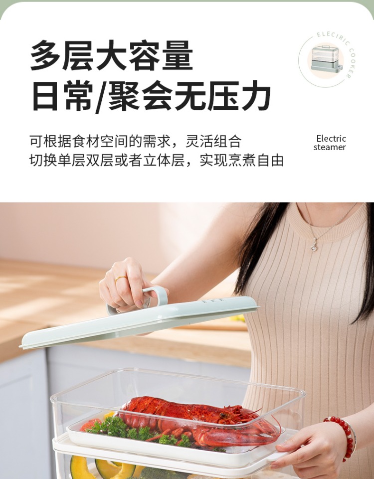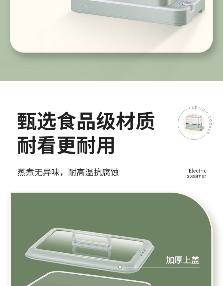 3、可分离电线,清洗方便,安全使用;主机容量4L,蒸笼自有组合;