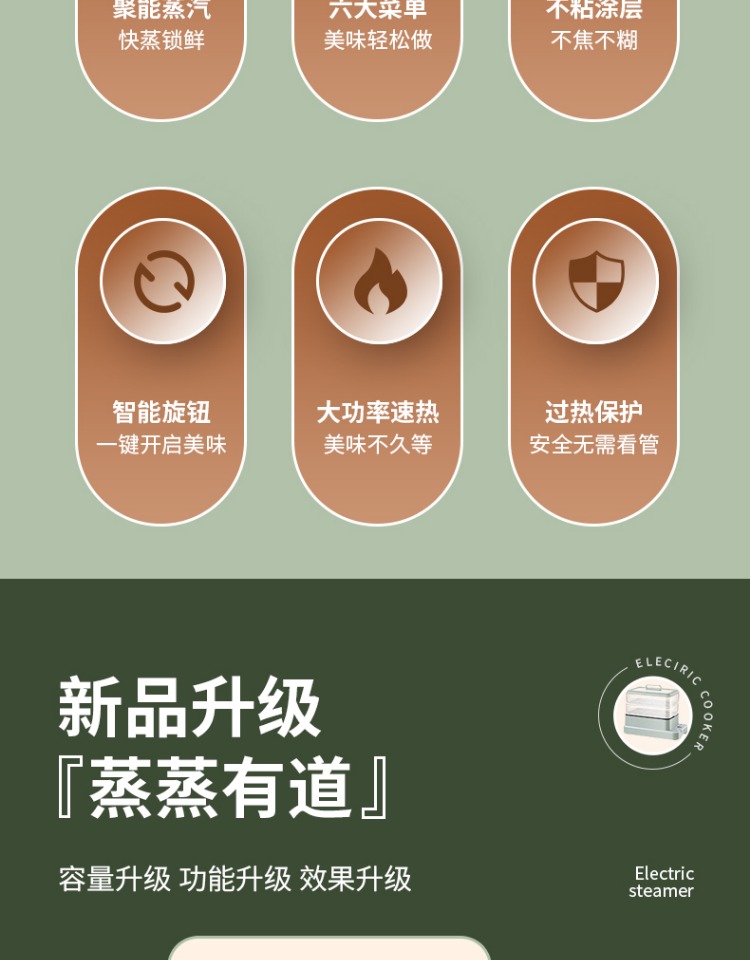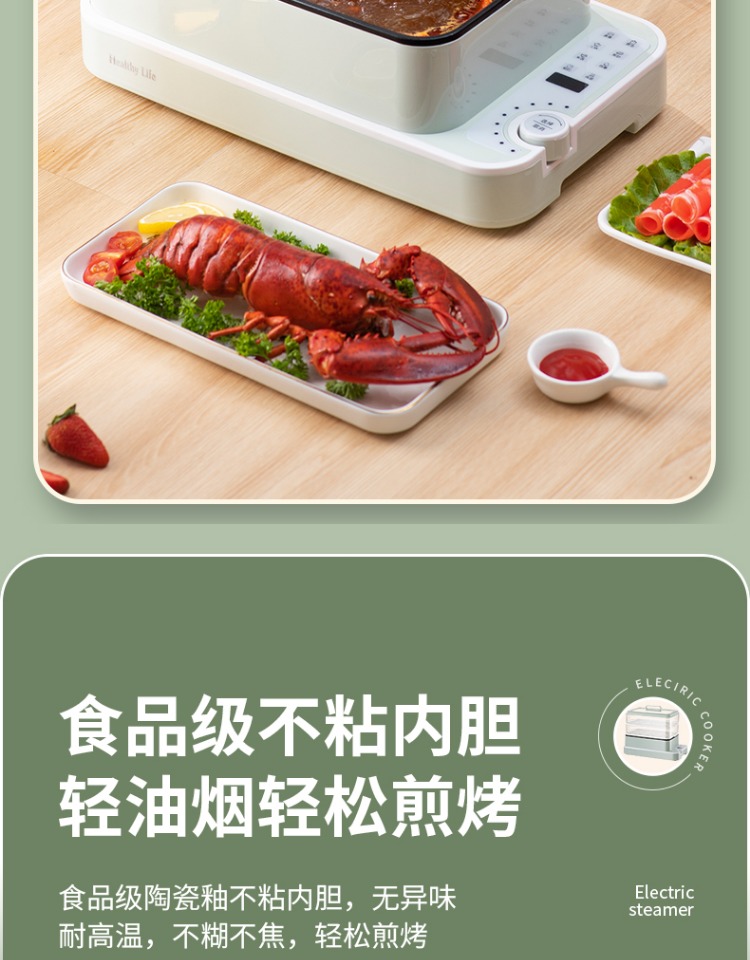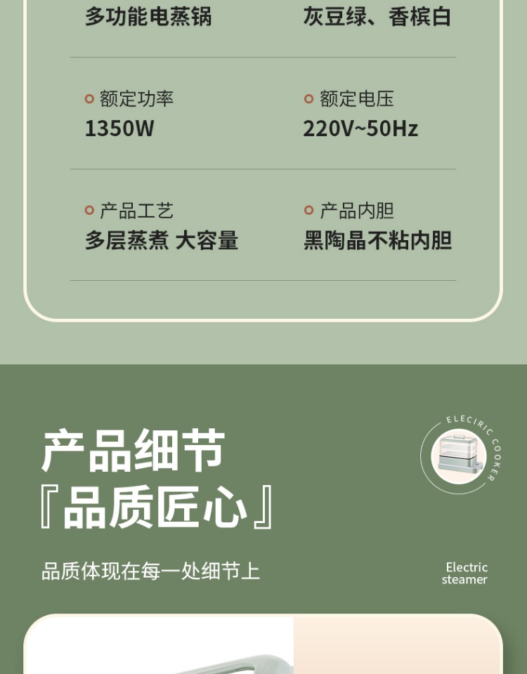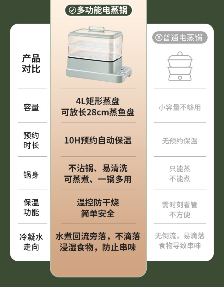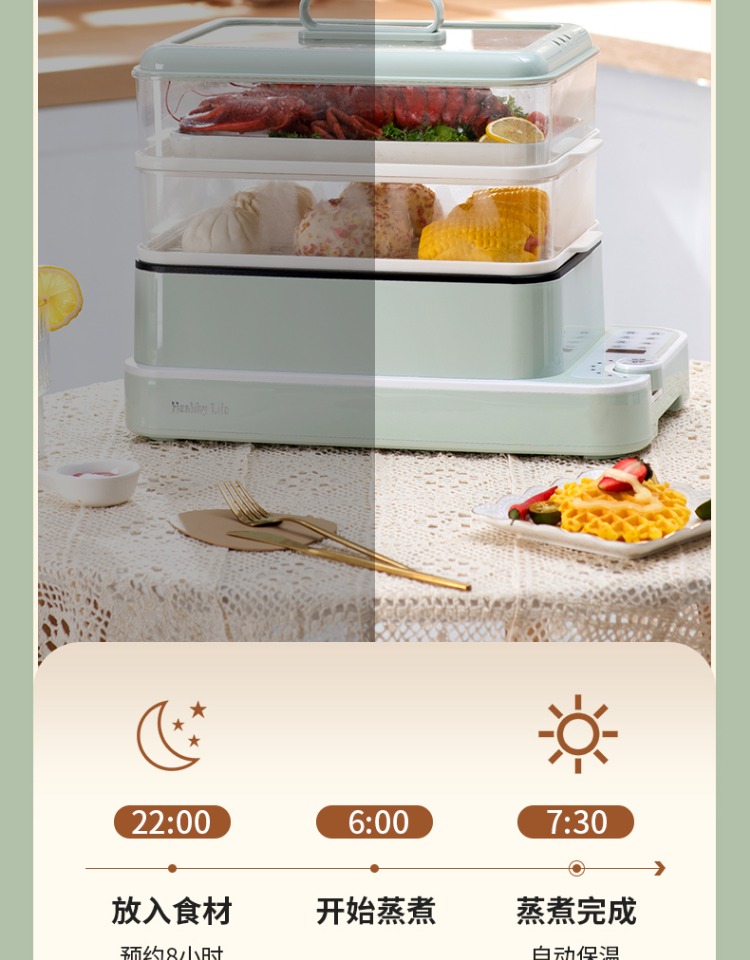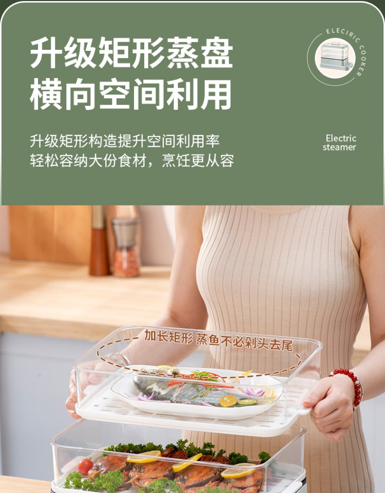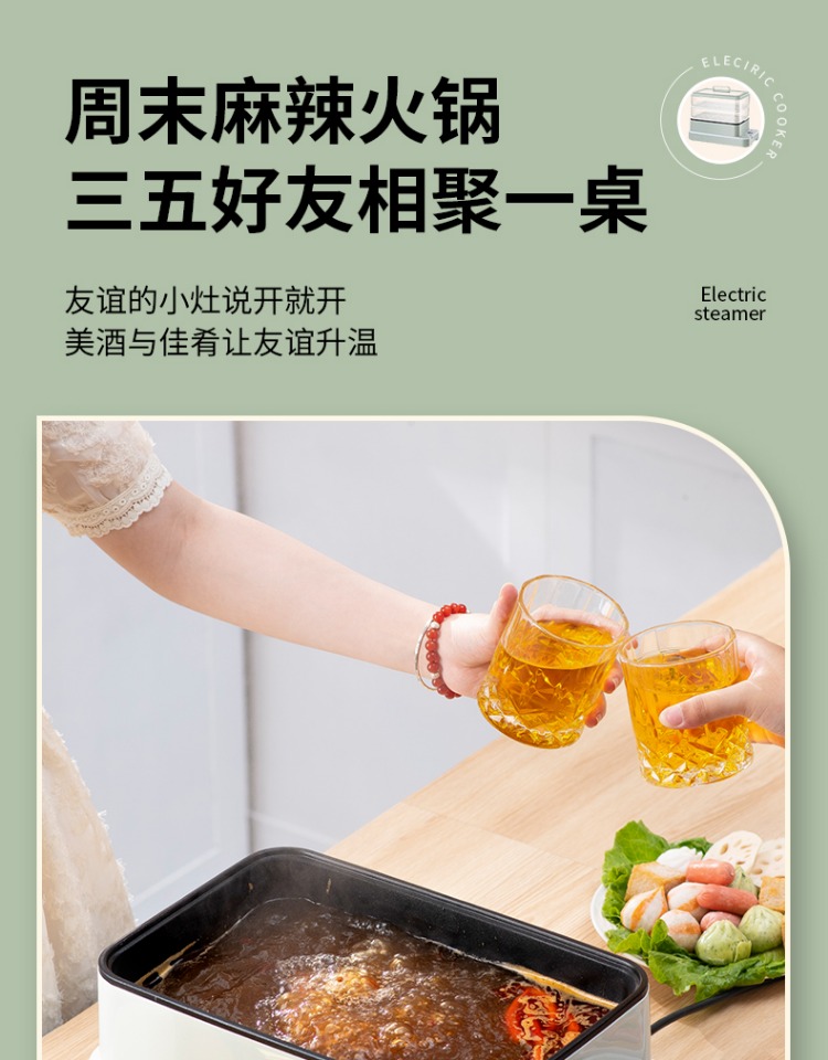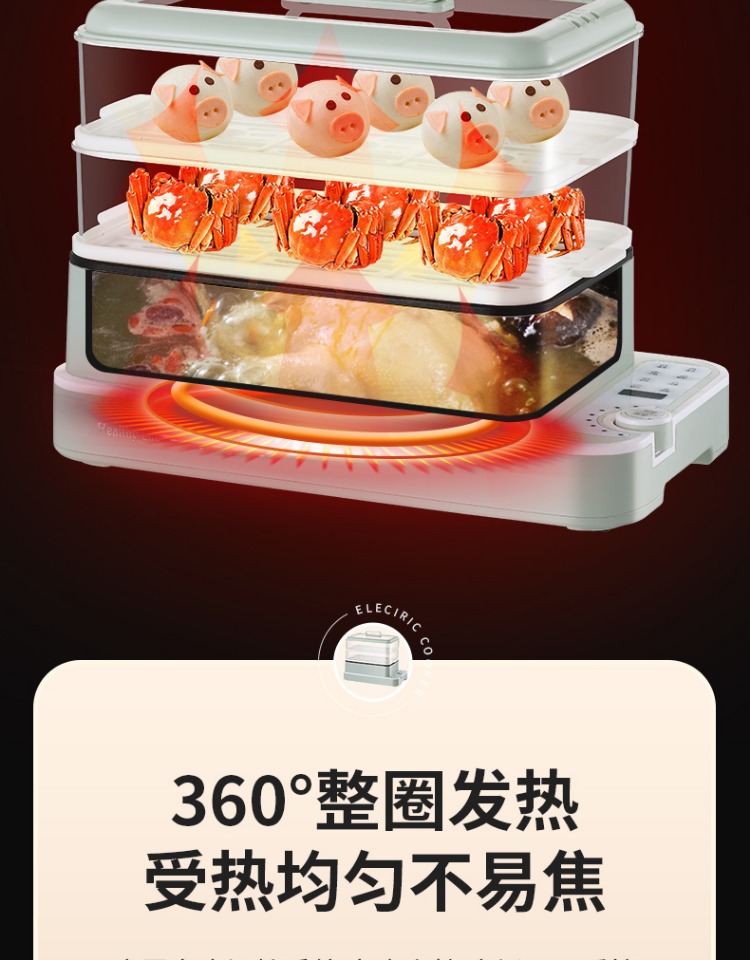 3、可分离电线,清洗方便,安全使用;主机容量4L,蒸笼自有组合;