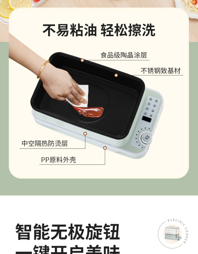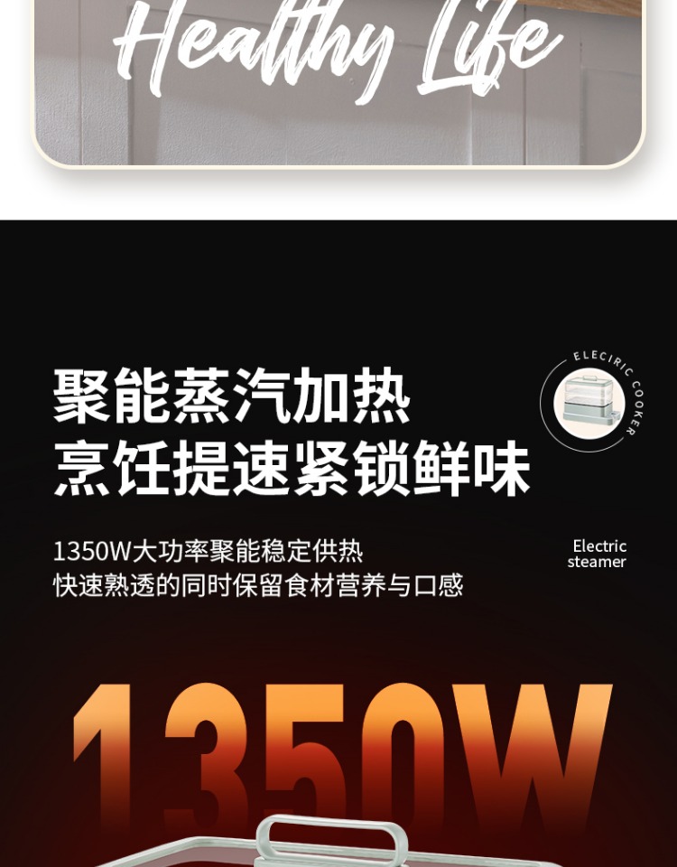 4、1350W大功率,烹饪无需等待;食品级PP材质,耐高温不易变形,耐酸,耐磨不易碎;