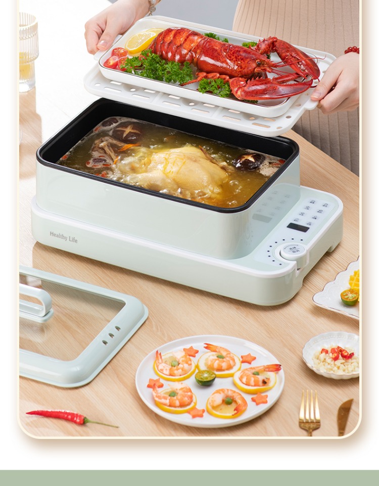 泉尔思多功能料理锅莫代尔绿12L三层LLG-1350A