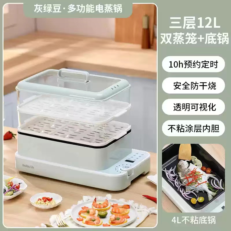 产品容量:底锅4L+两层蒸笼8L,总12L