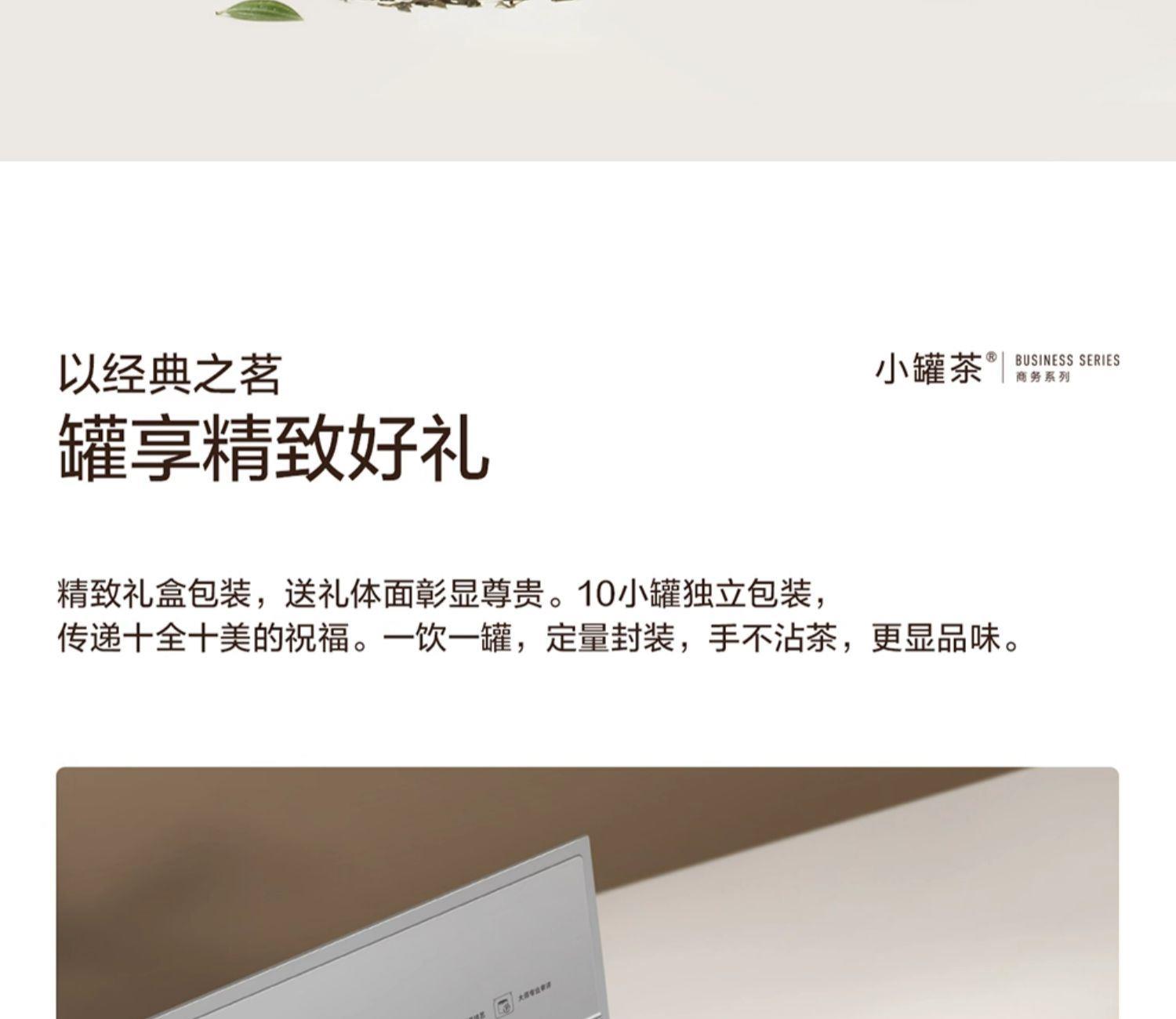 精致礼盒包装,送礼体面彰显尊贵。10罐独立包装,传递十全十美的祝福。一饮一罐,定量封装,手不沾茶,更显品位。小可社交,大可外交,适用多种社交场景