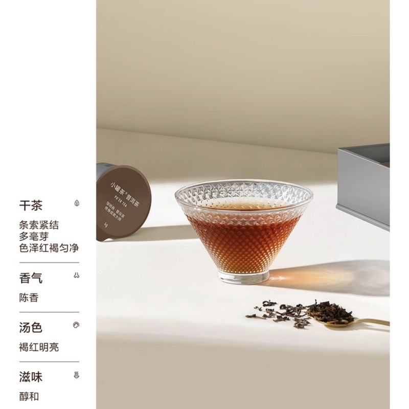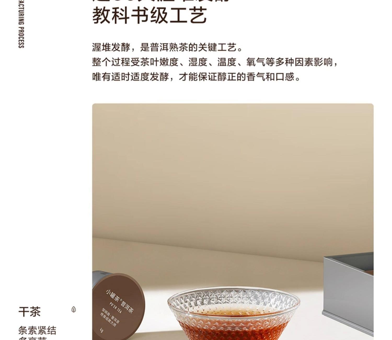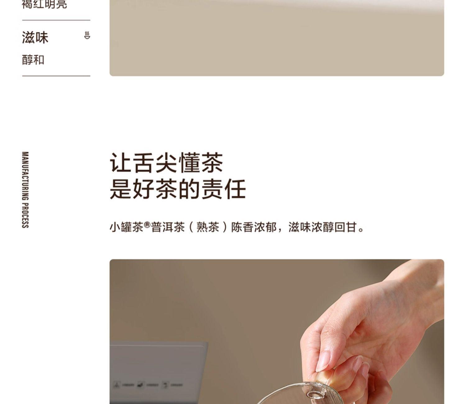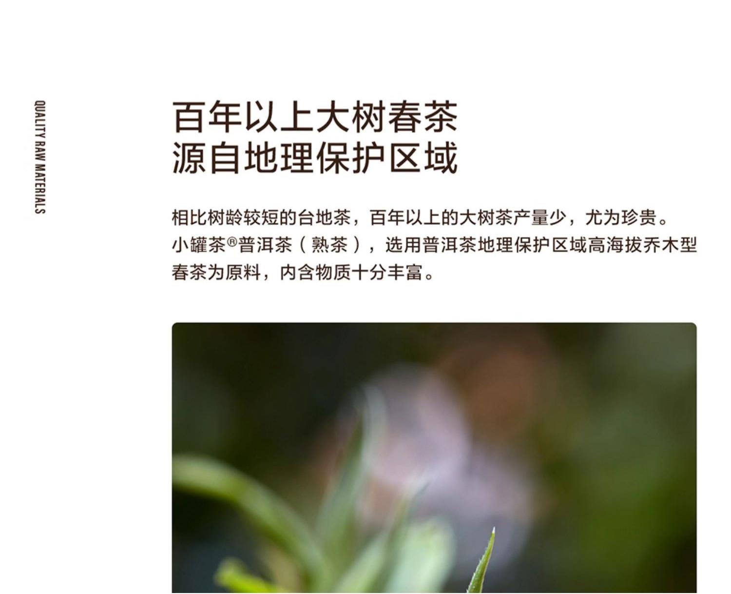 古树春茶原料细嫩,果胶质更多,需要更长的发酵时间。小罐茶"普洱茶(熟茶)渥堆发酵时间达50天,茶汤更醇厚顺滑。