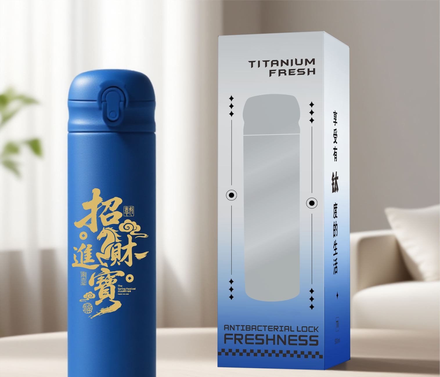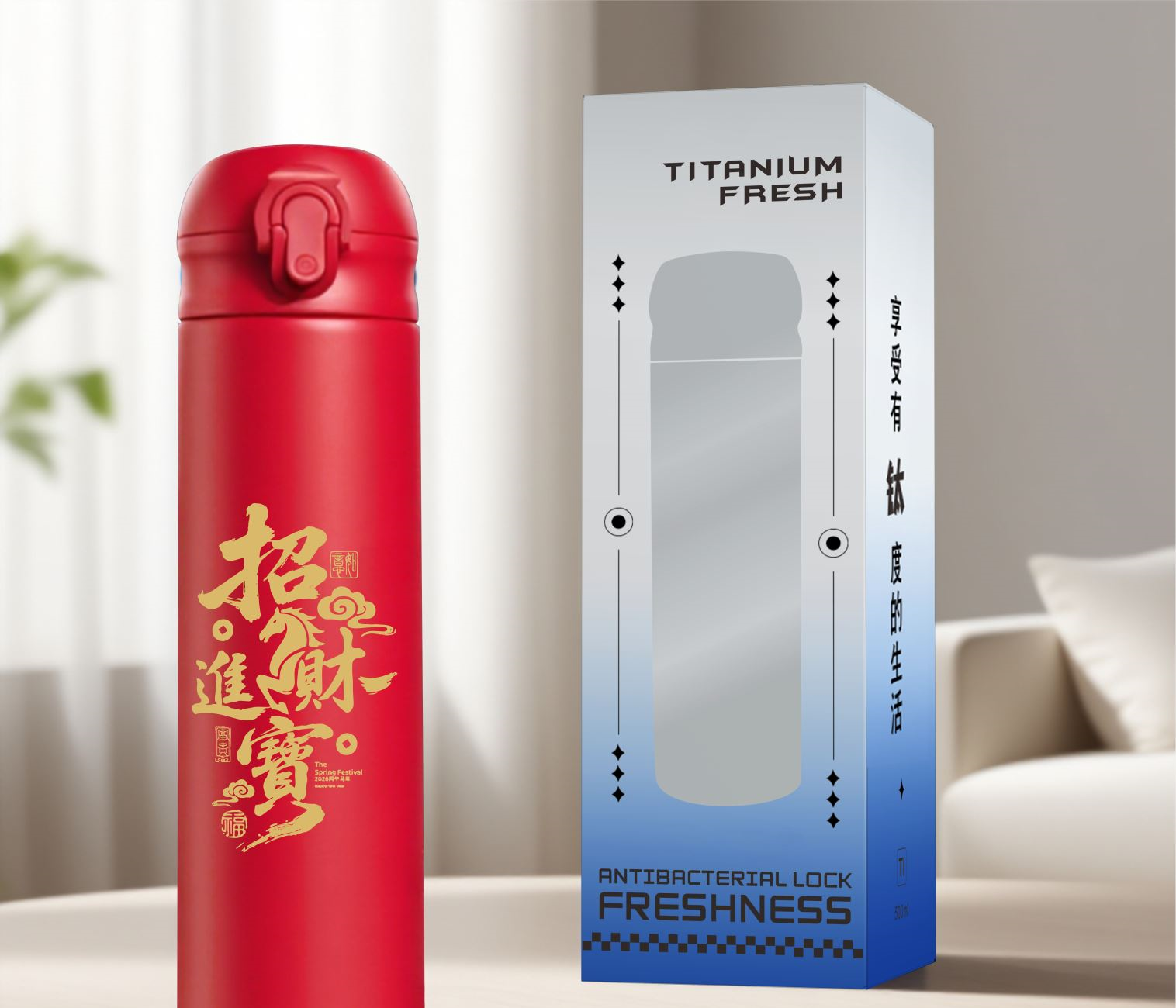 产品参数 材质:覆钛不锈钢 +PP+食品级硅胶圈 颜色:红色、蓝色、白色 专属能量数码2726,蕴含“双火伴马年,能量无穷”的设计理念,为产品赋予独特的文化能量属性,让你在使用过程中仿佛时刻被积极能量环绕,为工作、生活注入满满动力。