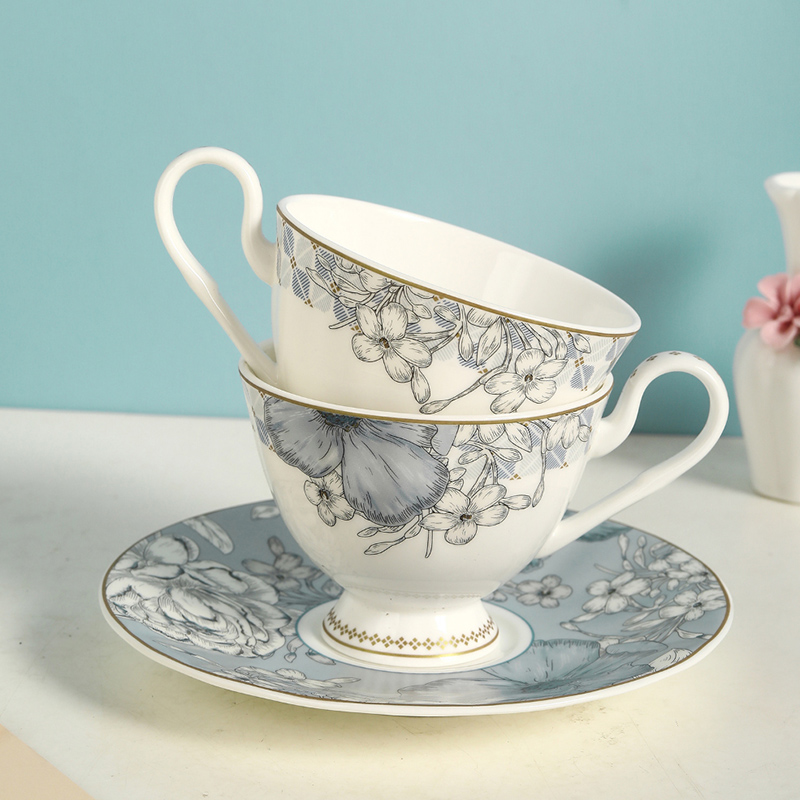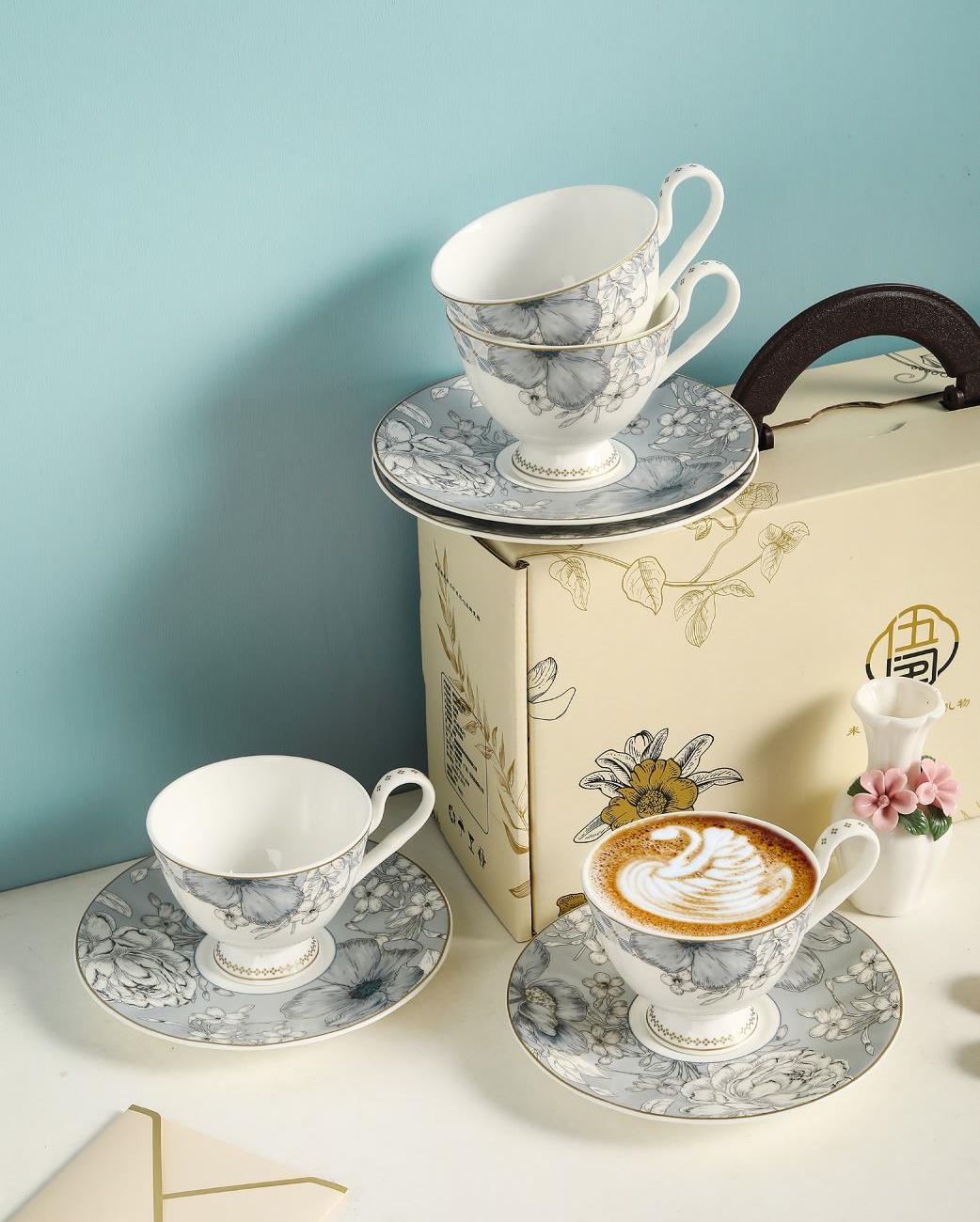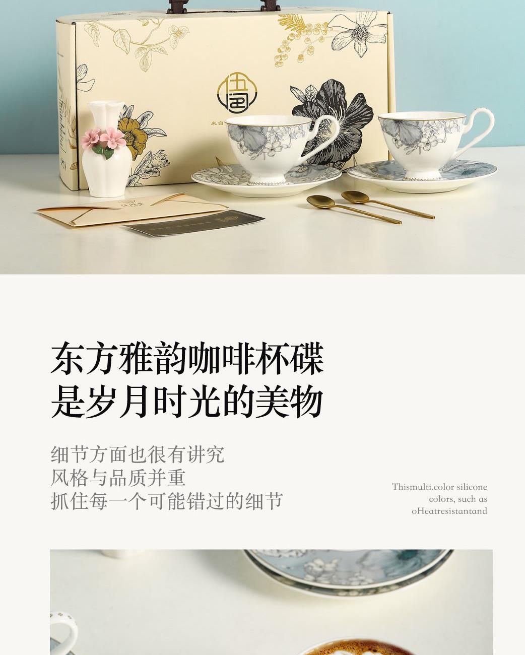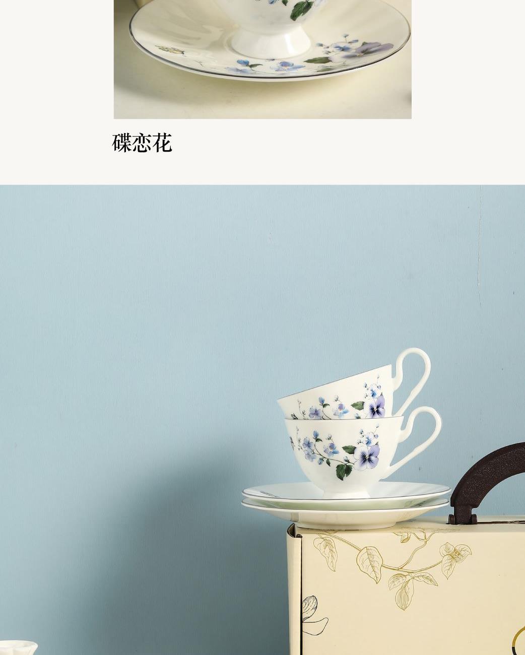 产品组成:茶咖杯2、碟子2、花瓶1、勺子2 产品材质:高骨瓷 产品工艺:贴花+描金 包装尺寸:37.5*18.2*11.5cm 外箱尺寸:39*36*40.5cm