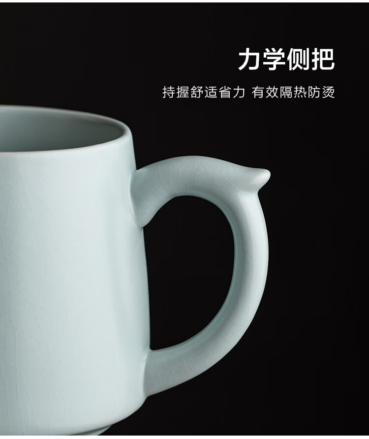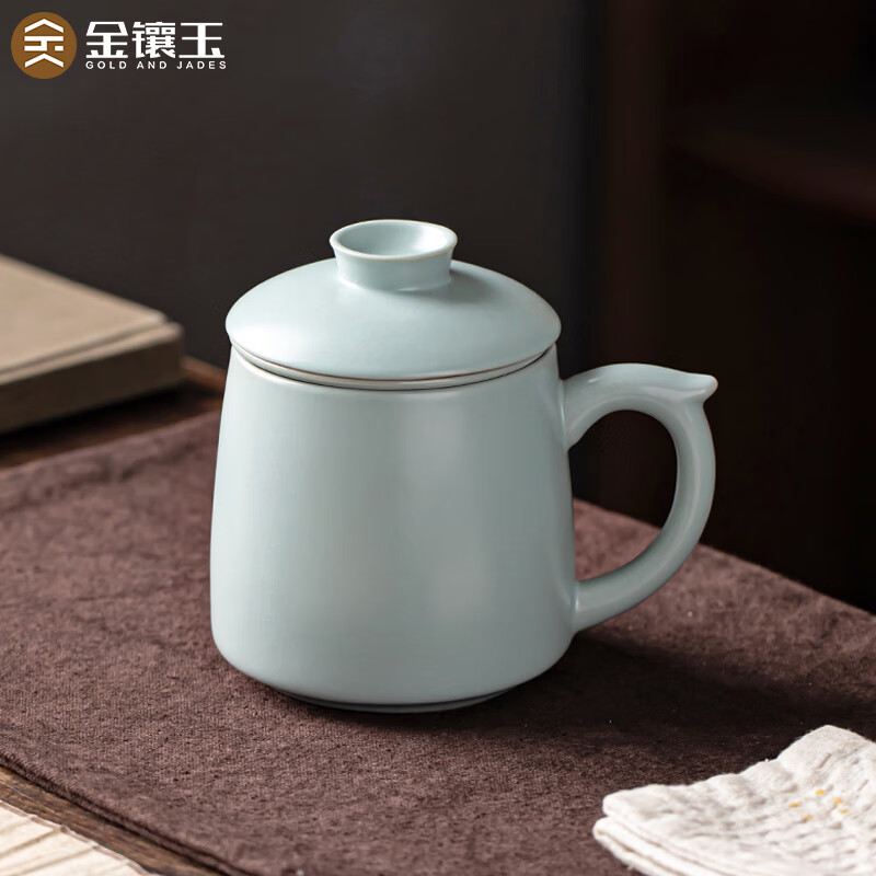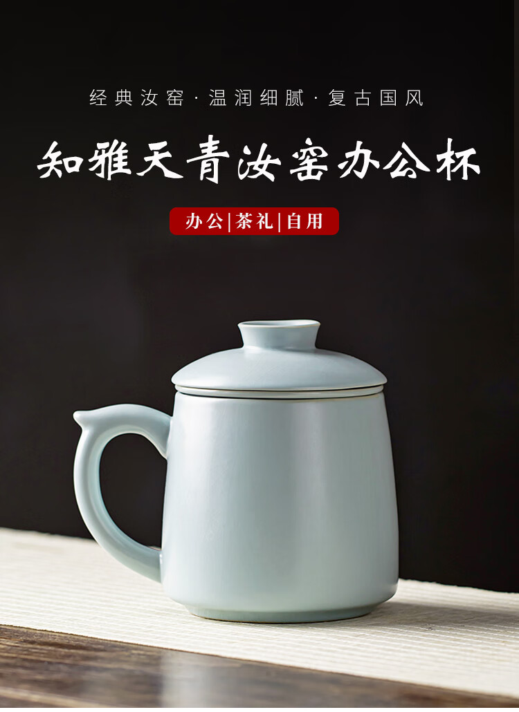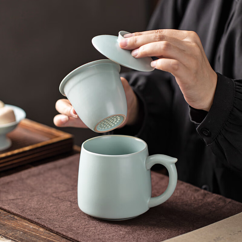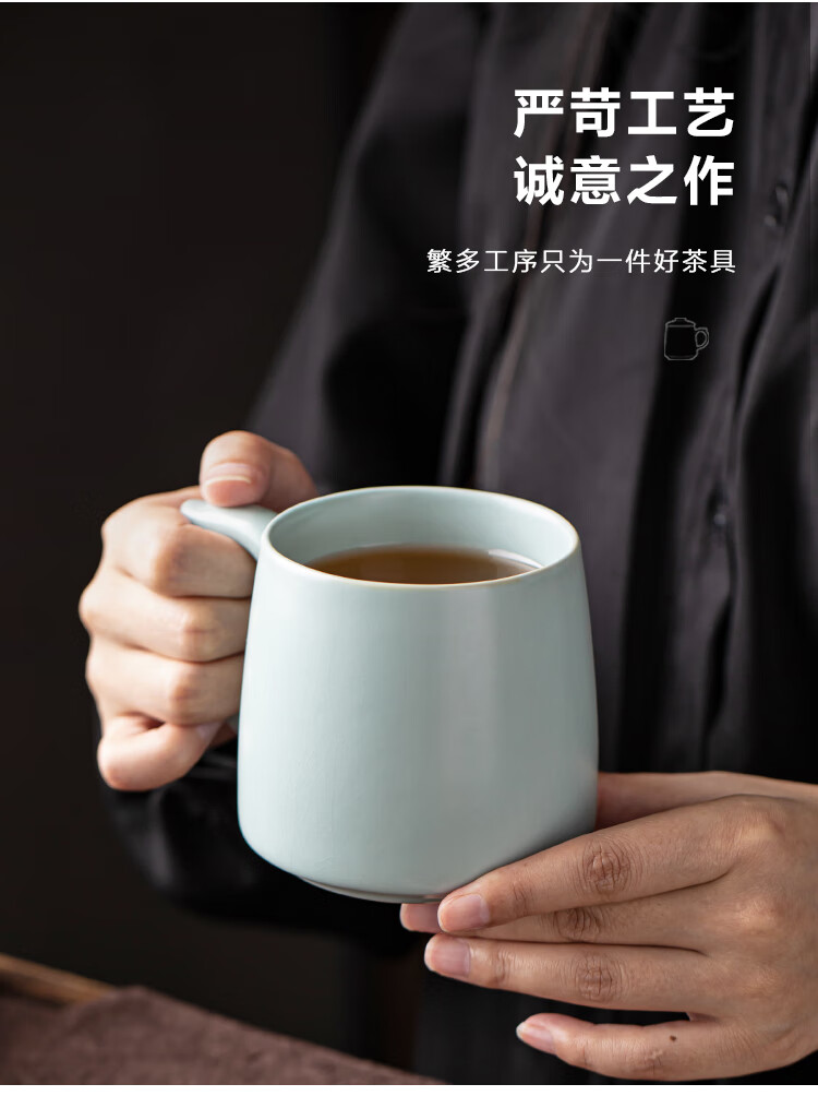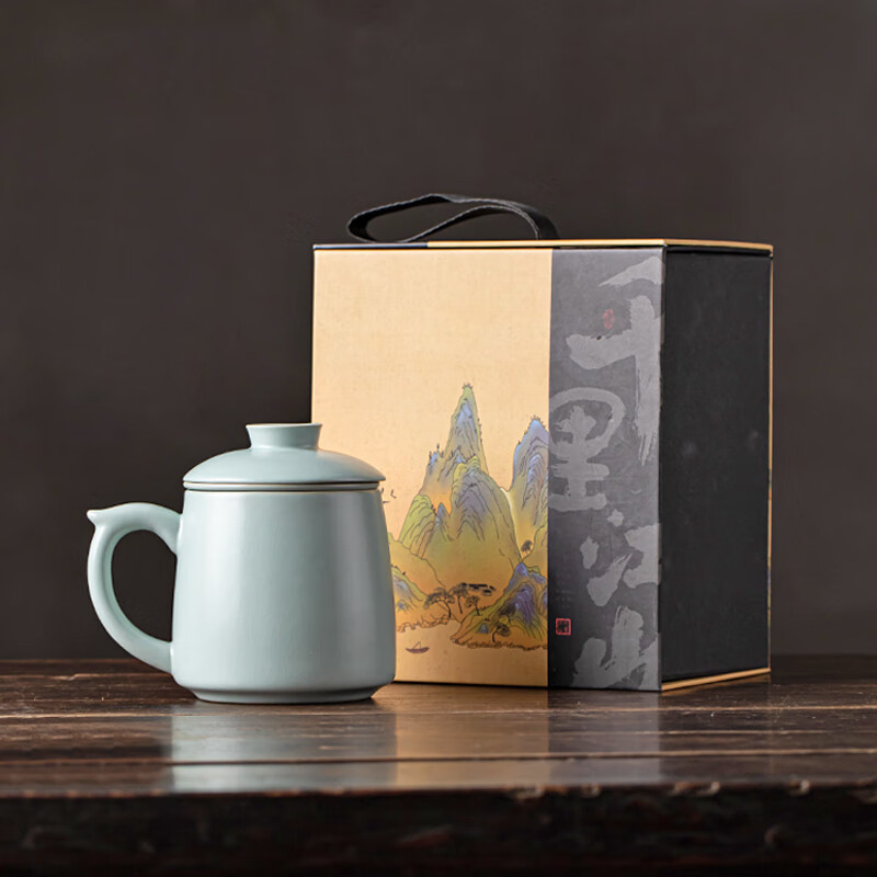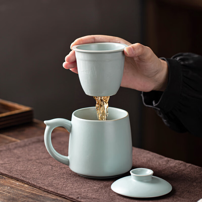 经典汝窑 温润细腻 复古国风 自带同材质过滤 滤茶干净 轻松喝茶 颜色雅致 诚意之礼 产品配置:杯子*1 内胆*1 杯盖*1 礼盒*1